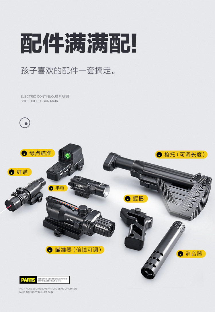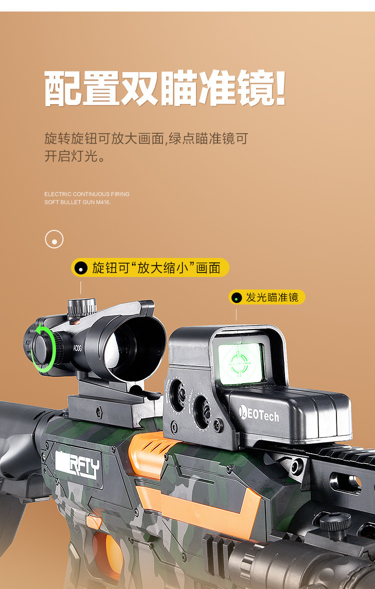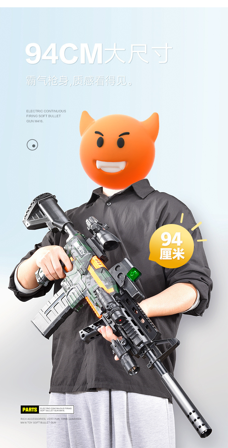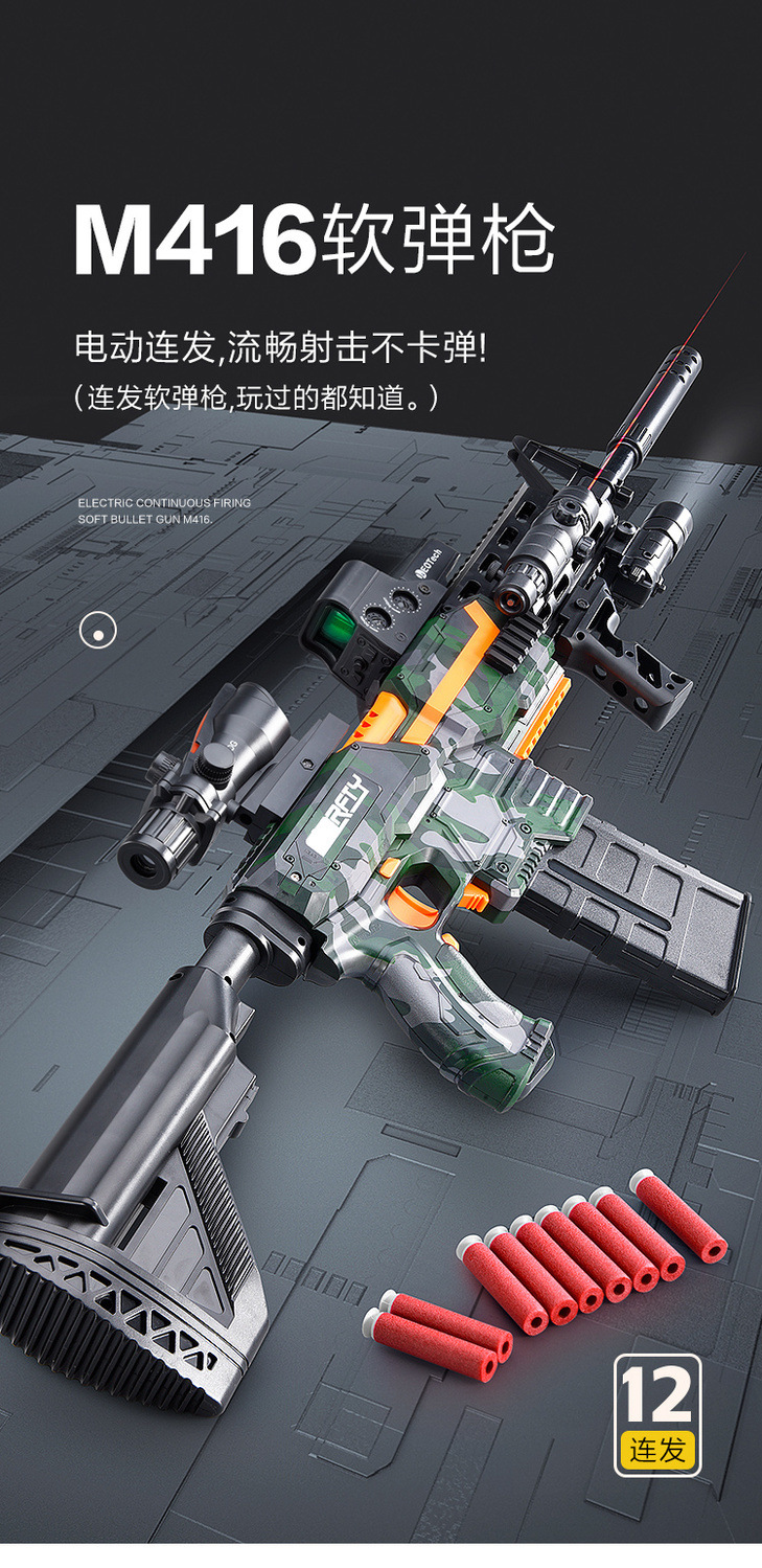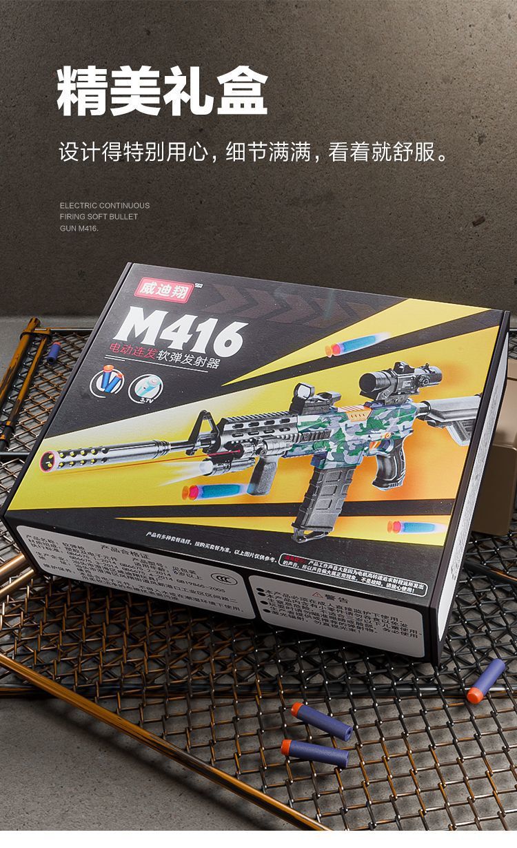 M416 Lembut elastis mainan anak laki-laki simulasi listrik peluru penembakan terus menerus anak laki-laki agen pengisian pasokan grosir