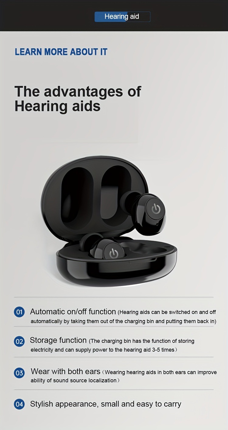 Alat bantu dengar binaural pengisi daya magnetik in-ear terlaris lintas batas penguat suara Alat bantu dengar untuk orang tua