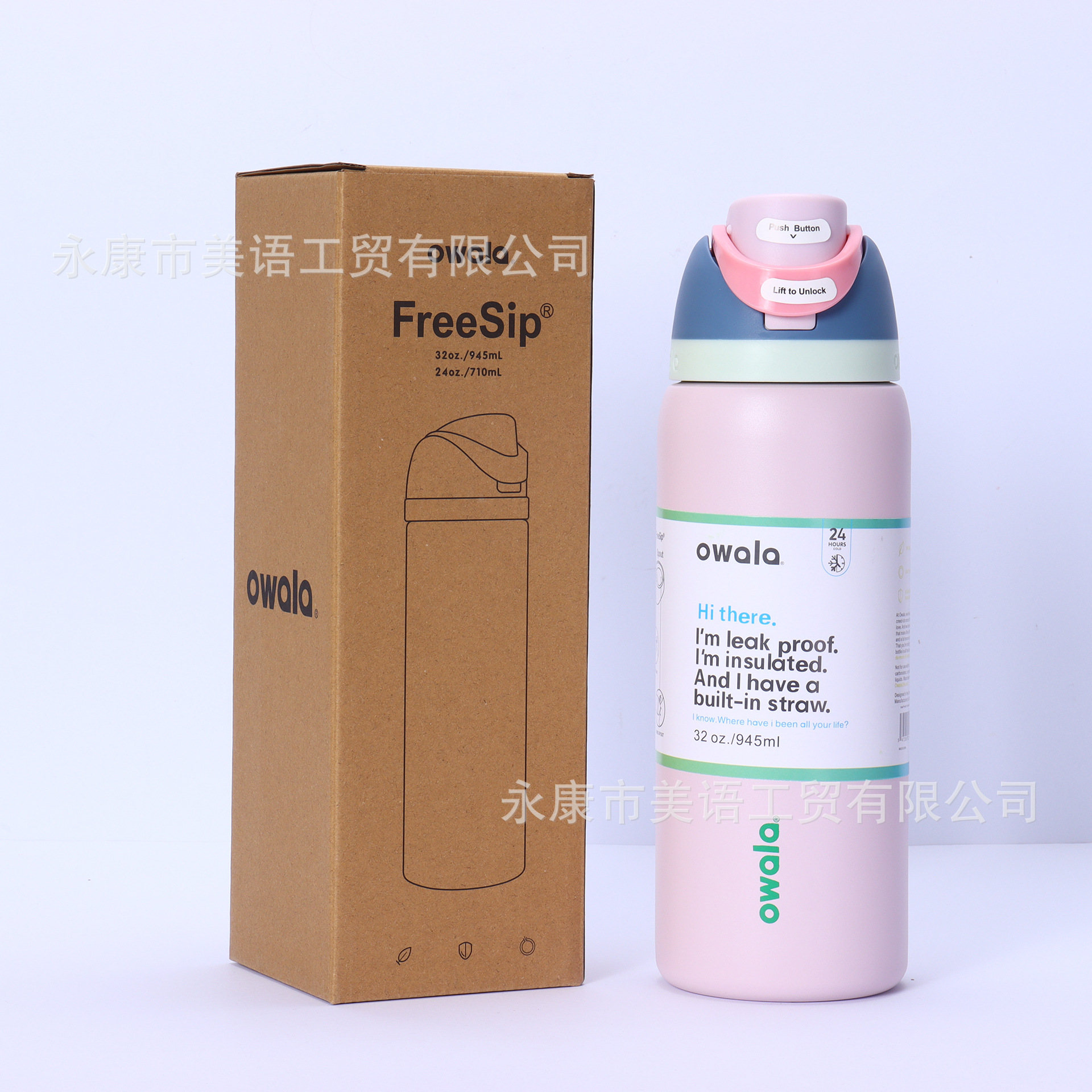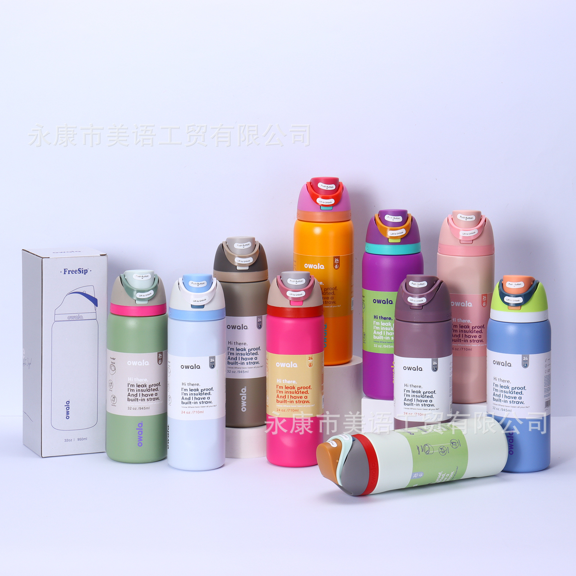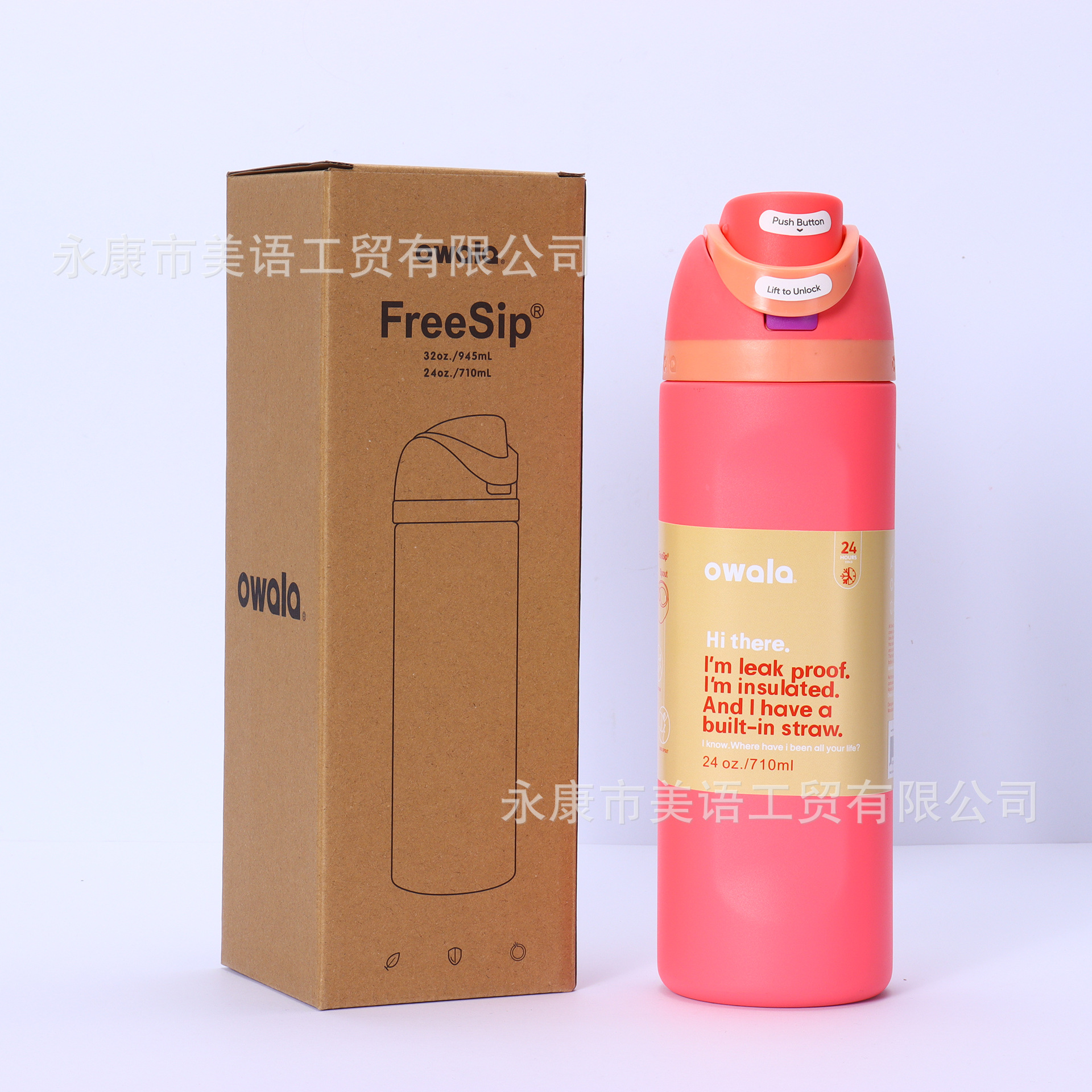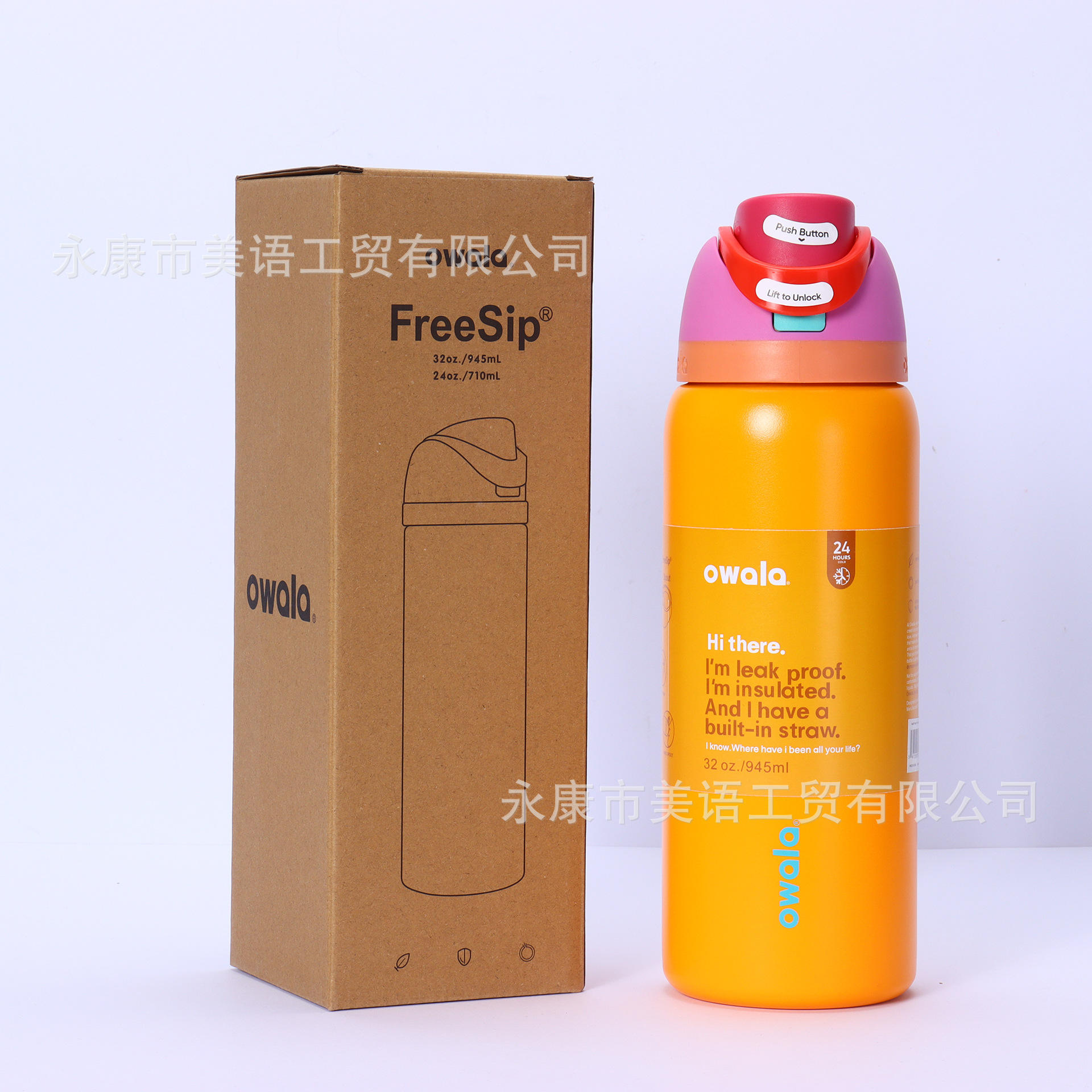亚马逊批发Owala水果杯户外便携手提吸管杯双饮盖保温杯水壶