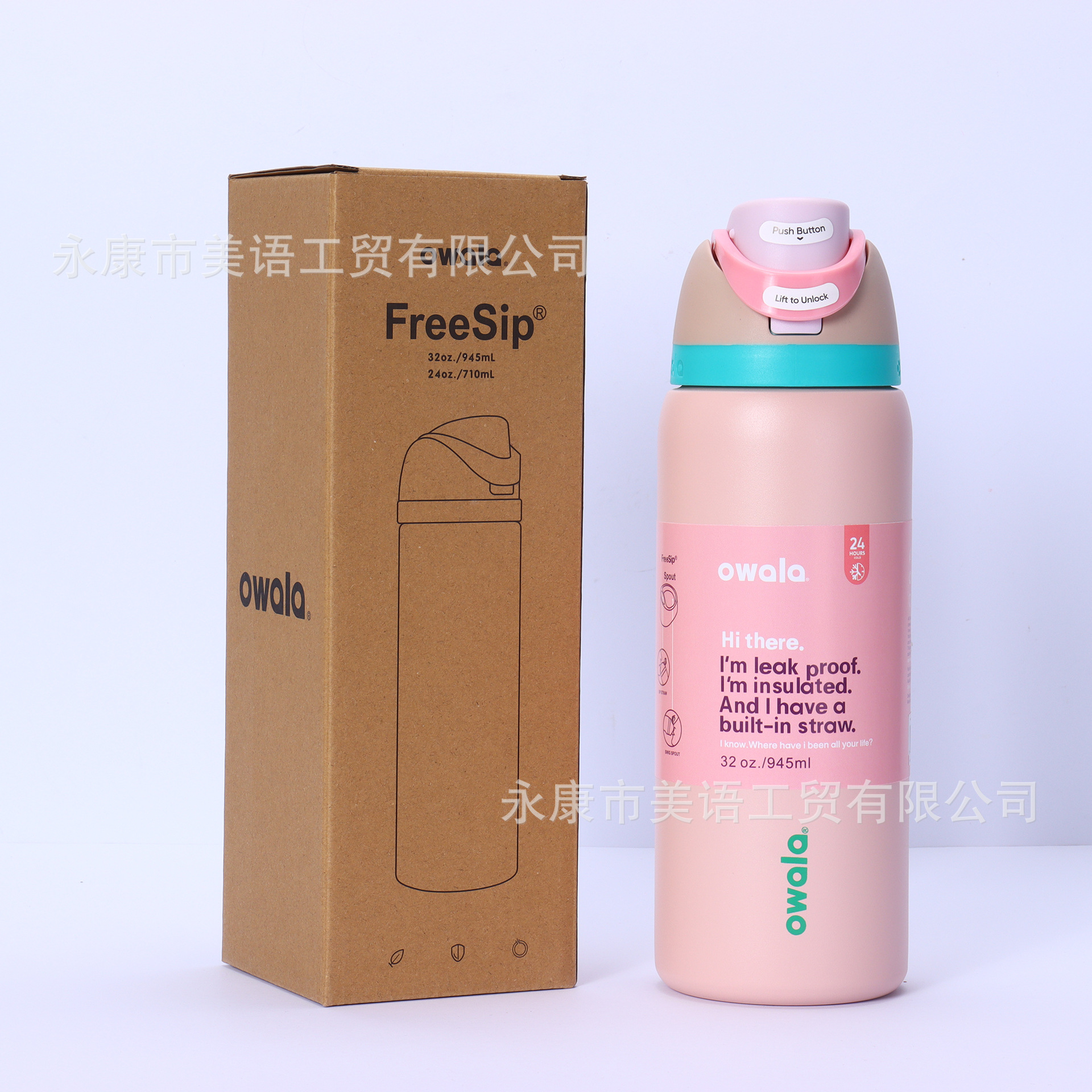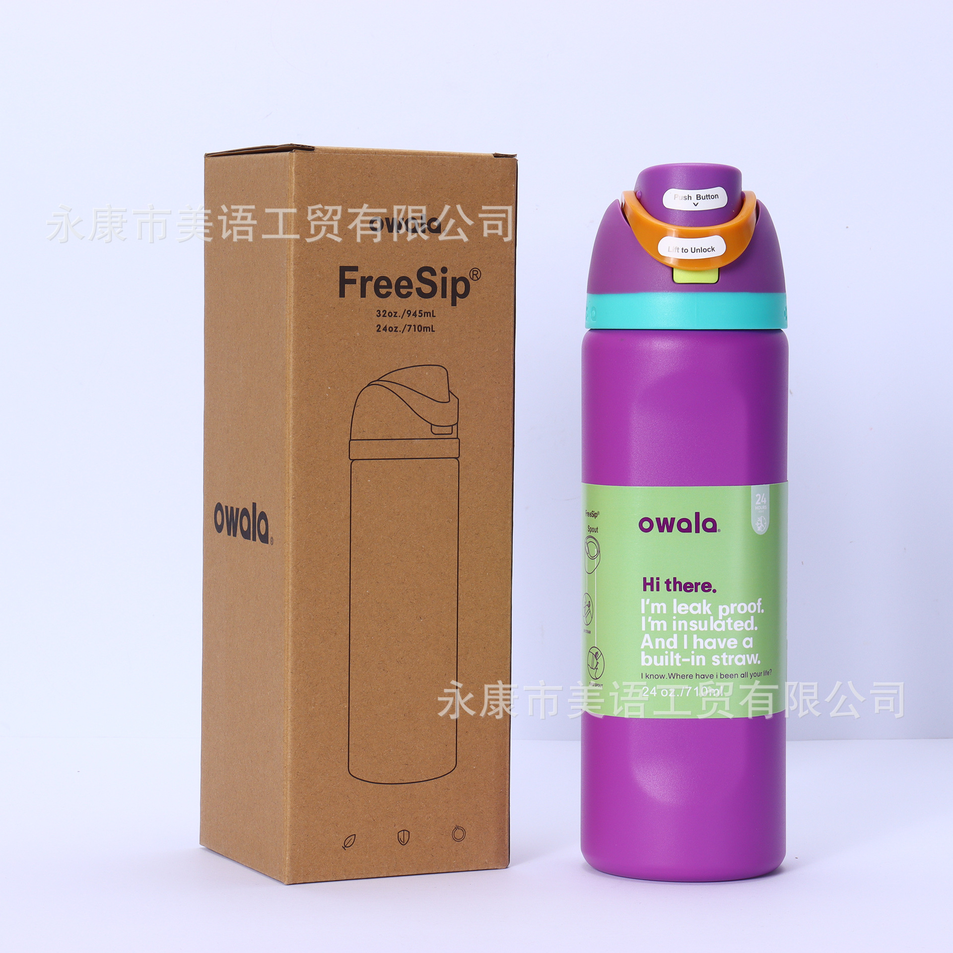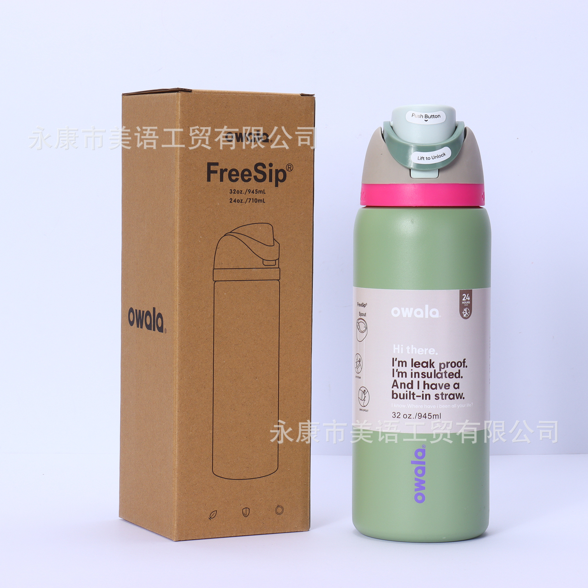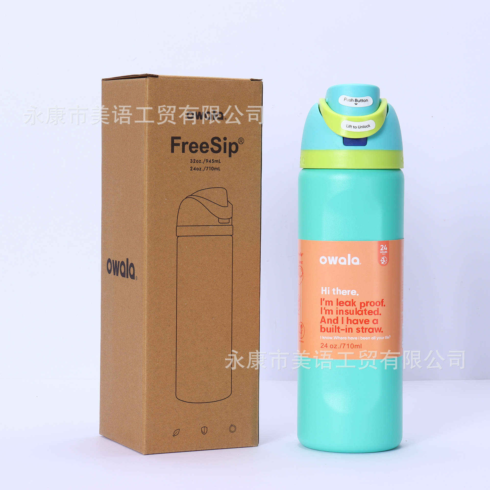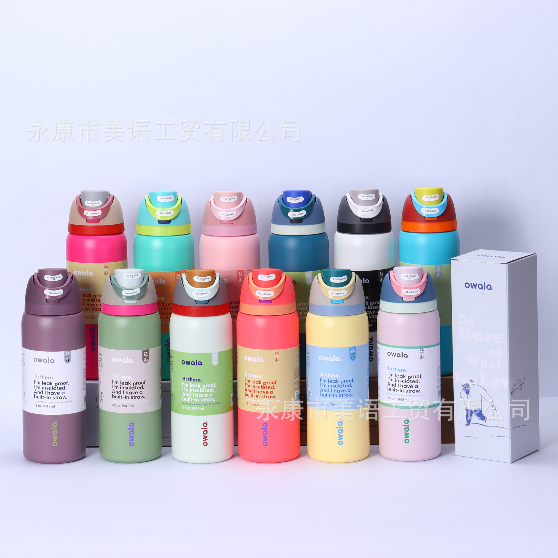 亚马逊批发Owala水果杯户外便携手提吸管杯双饮盖保温杯水壶