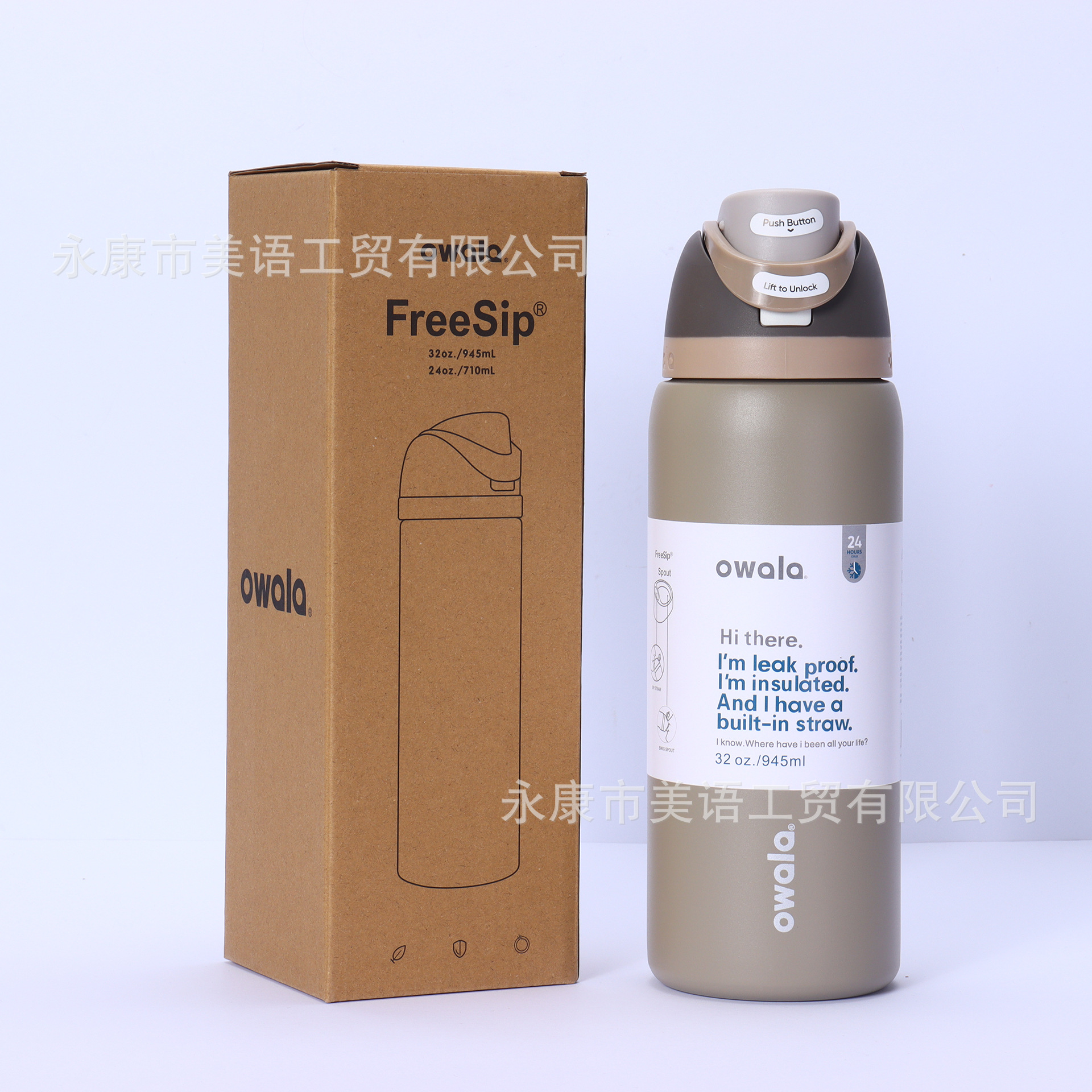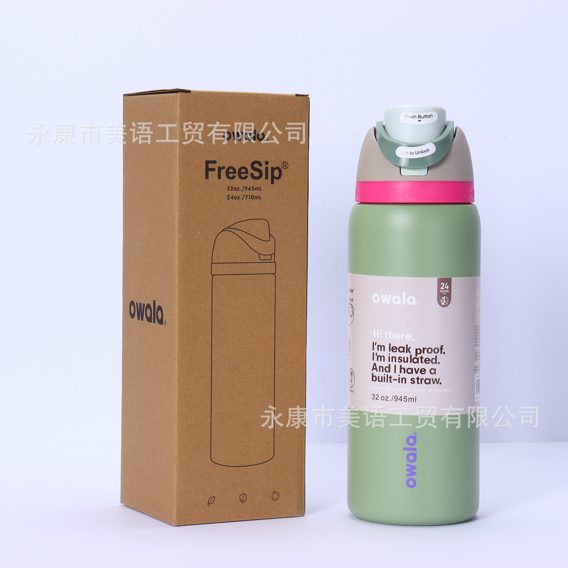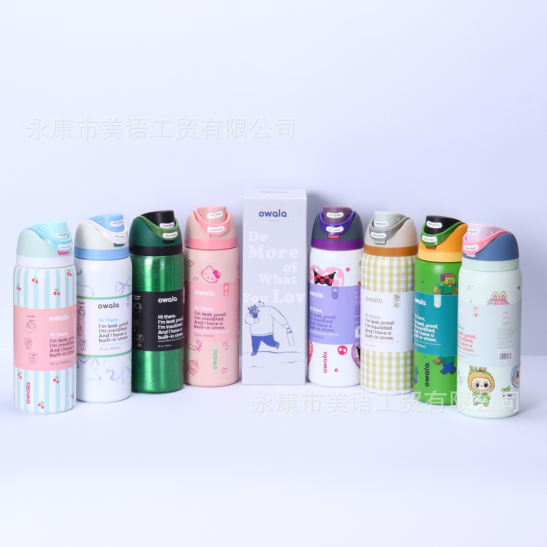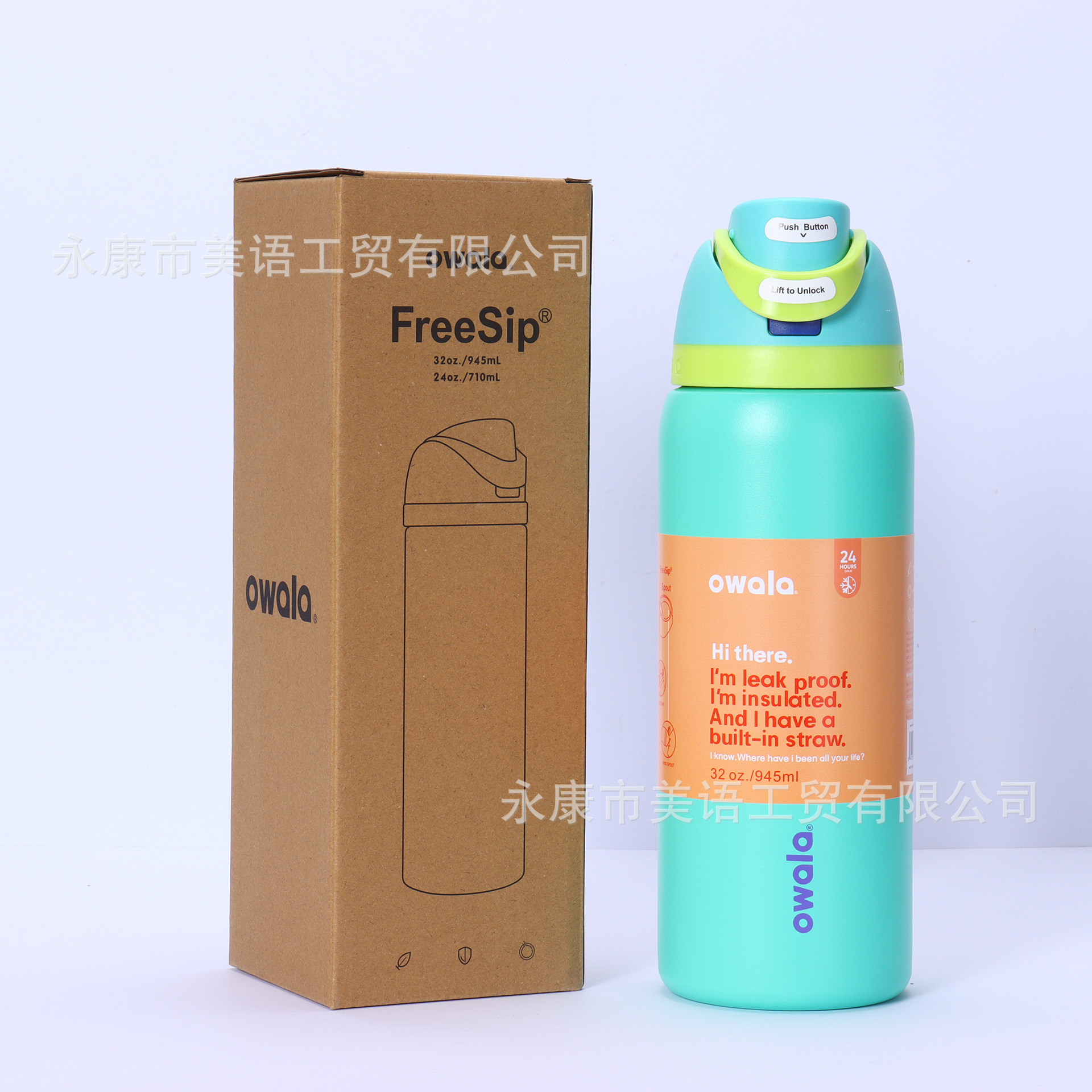 亚马逊批发Owala水果杯户外便携手提吸管杯双饮盖保温杯水壶