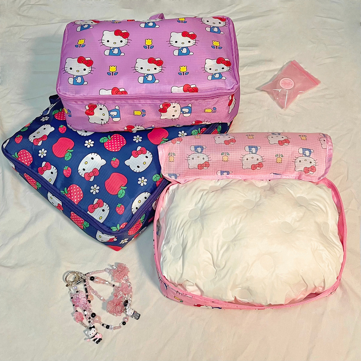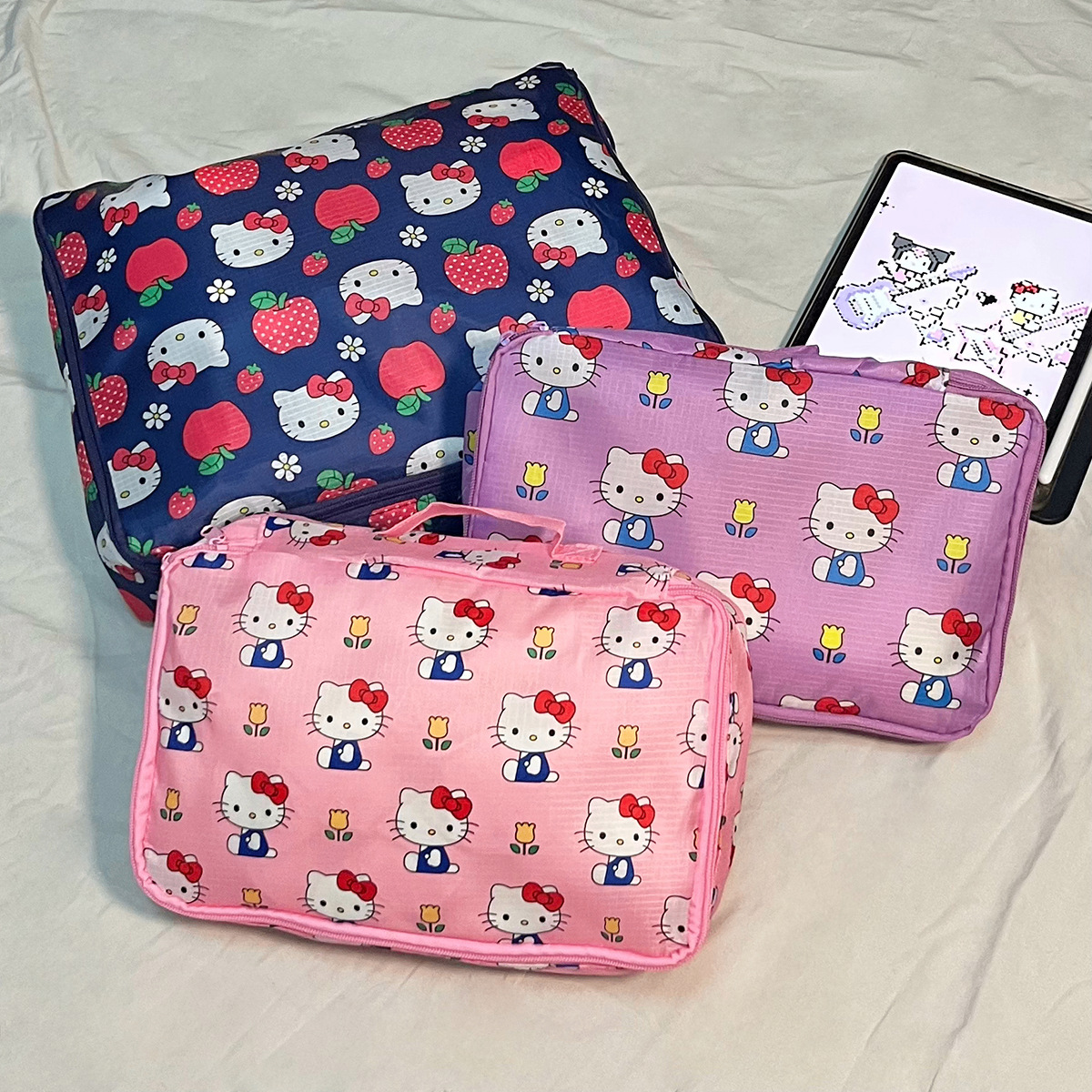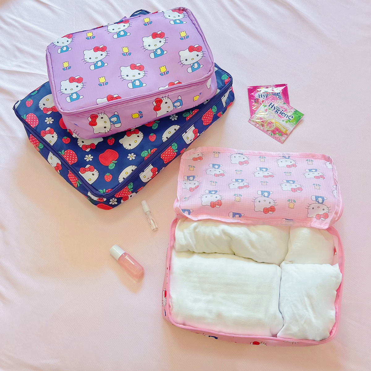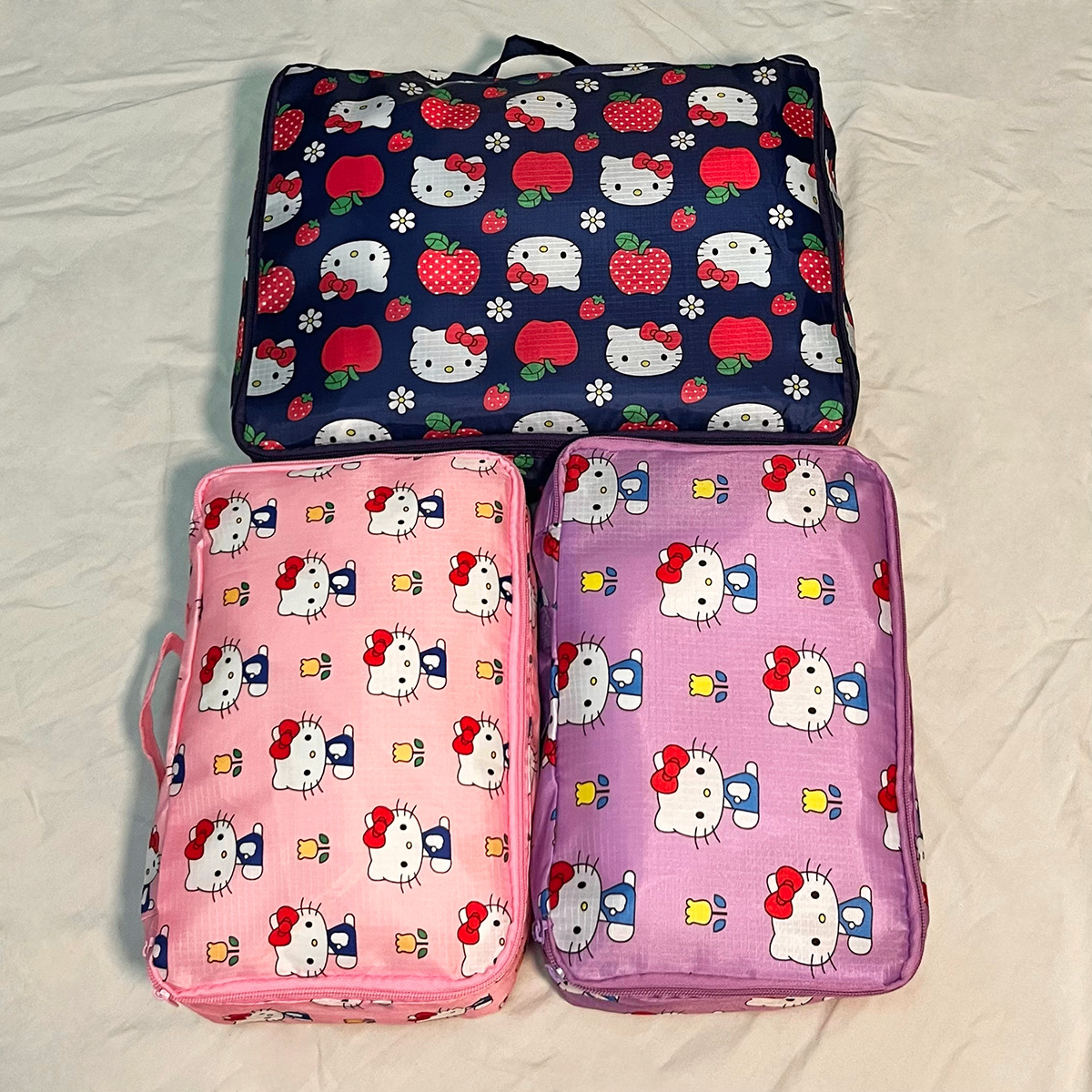 现货日系kt猫卡通可折叠收纳包旅行行李衣服鞋子分装收纳袋三件套