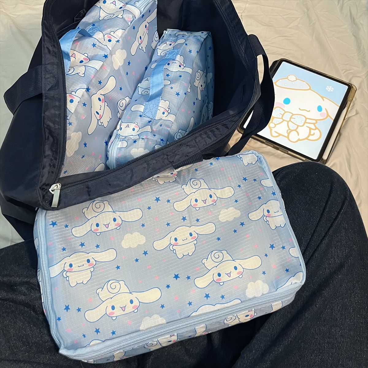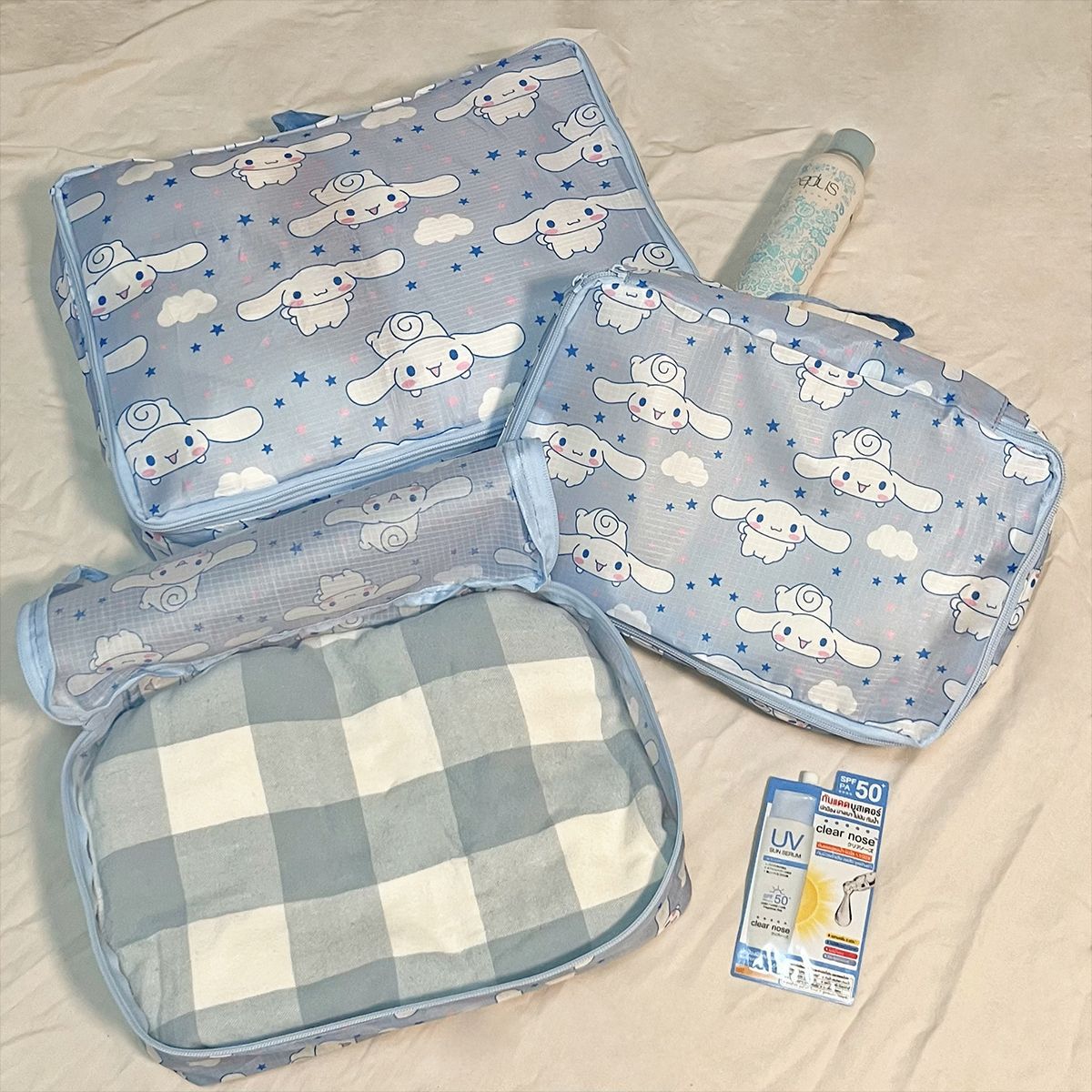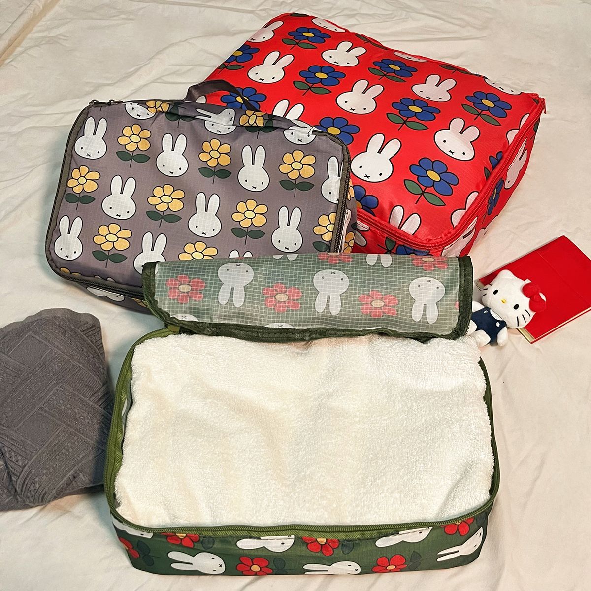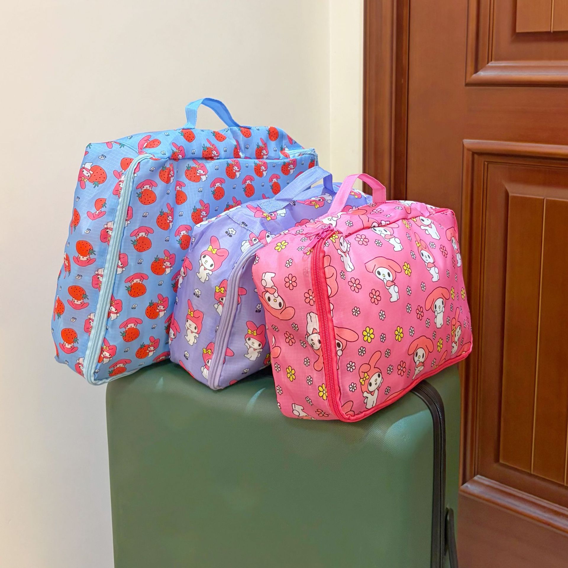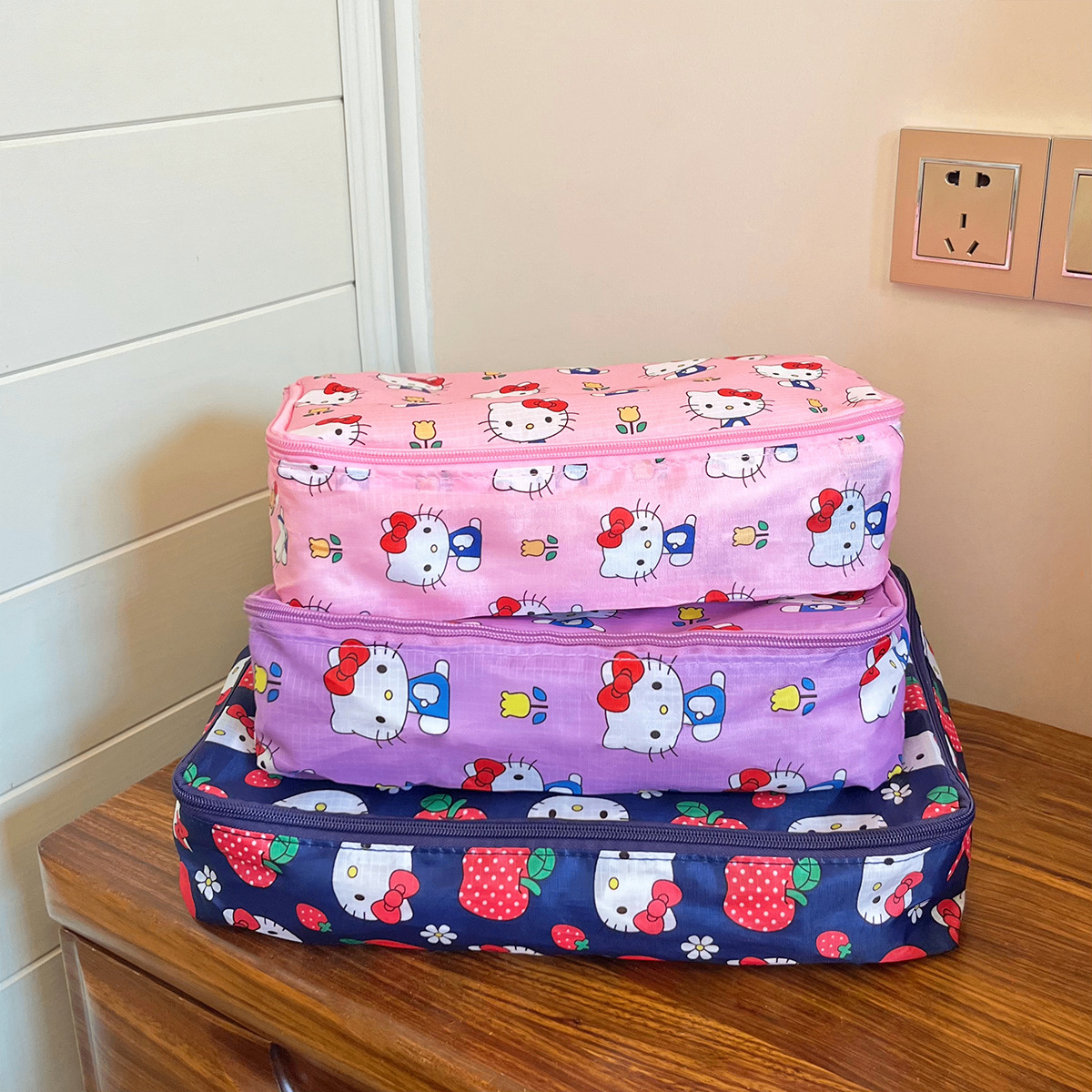 现货日系kt猫卡通可折叠收纳包旅行行李衣服鞋子分装收纳袋三件套