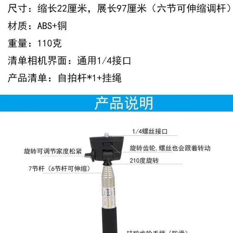 Batang teleskopik genggam kamera, alat penstabil genggam kamera olahraga berselancar menyelam apung stik selfie paduan aluminium