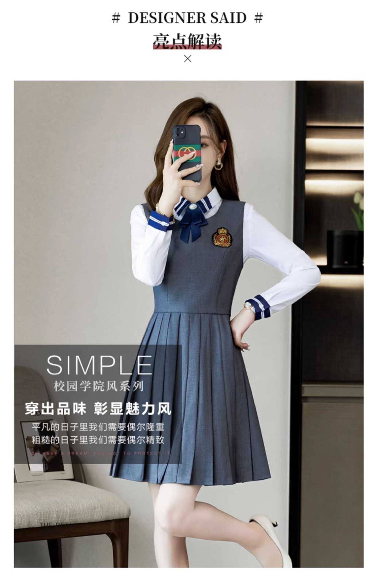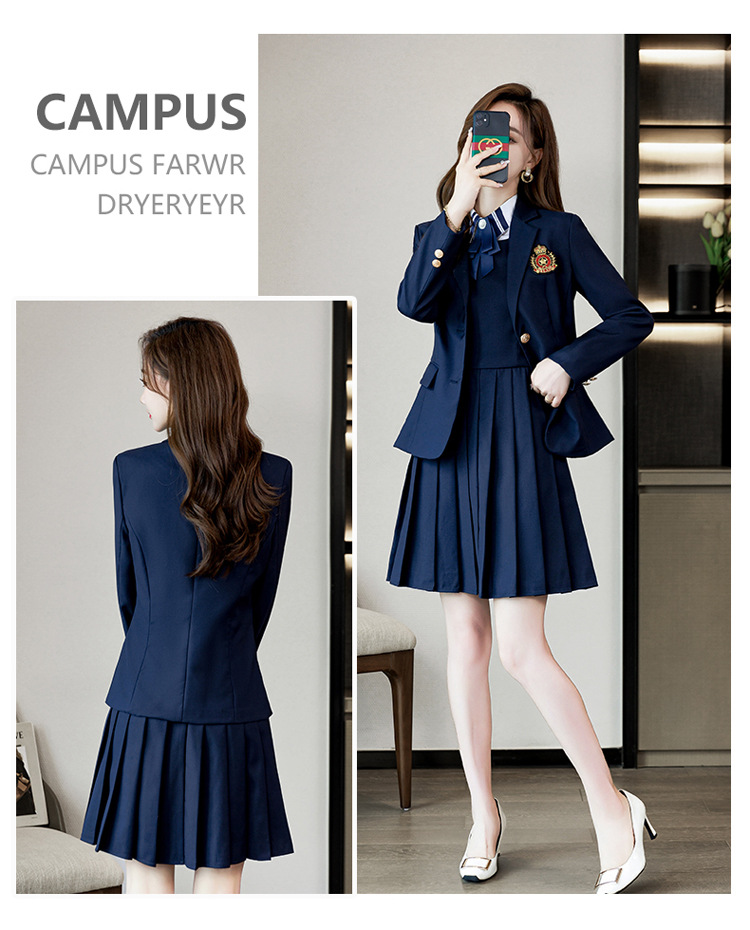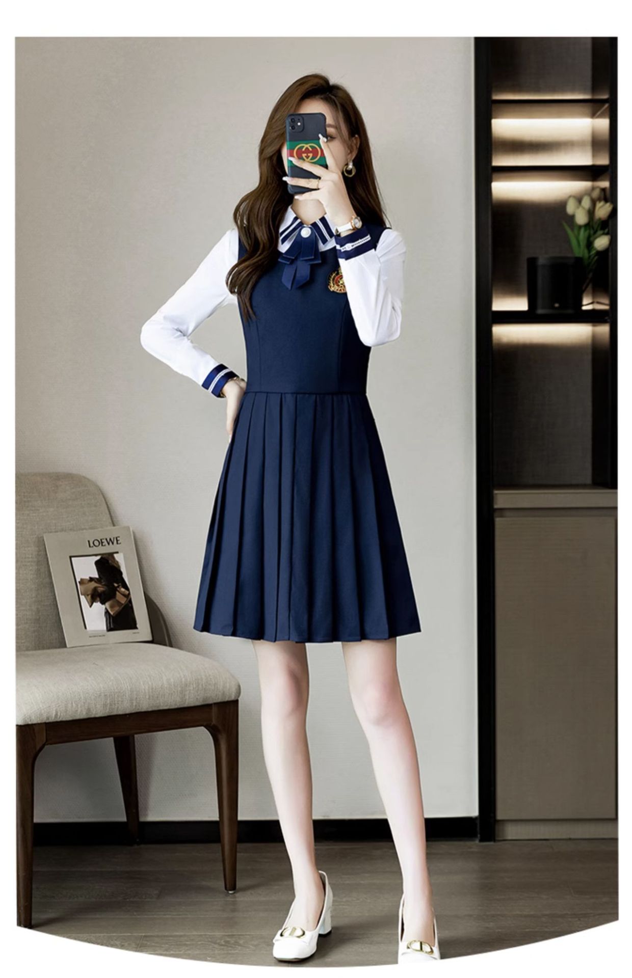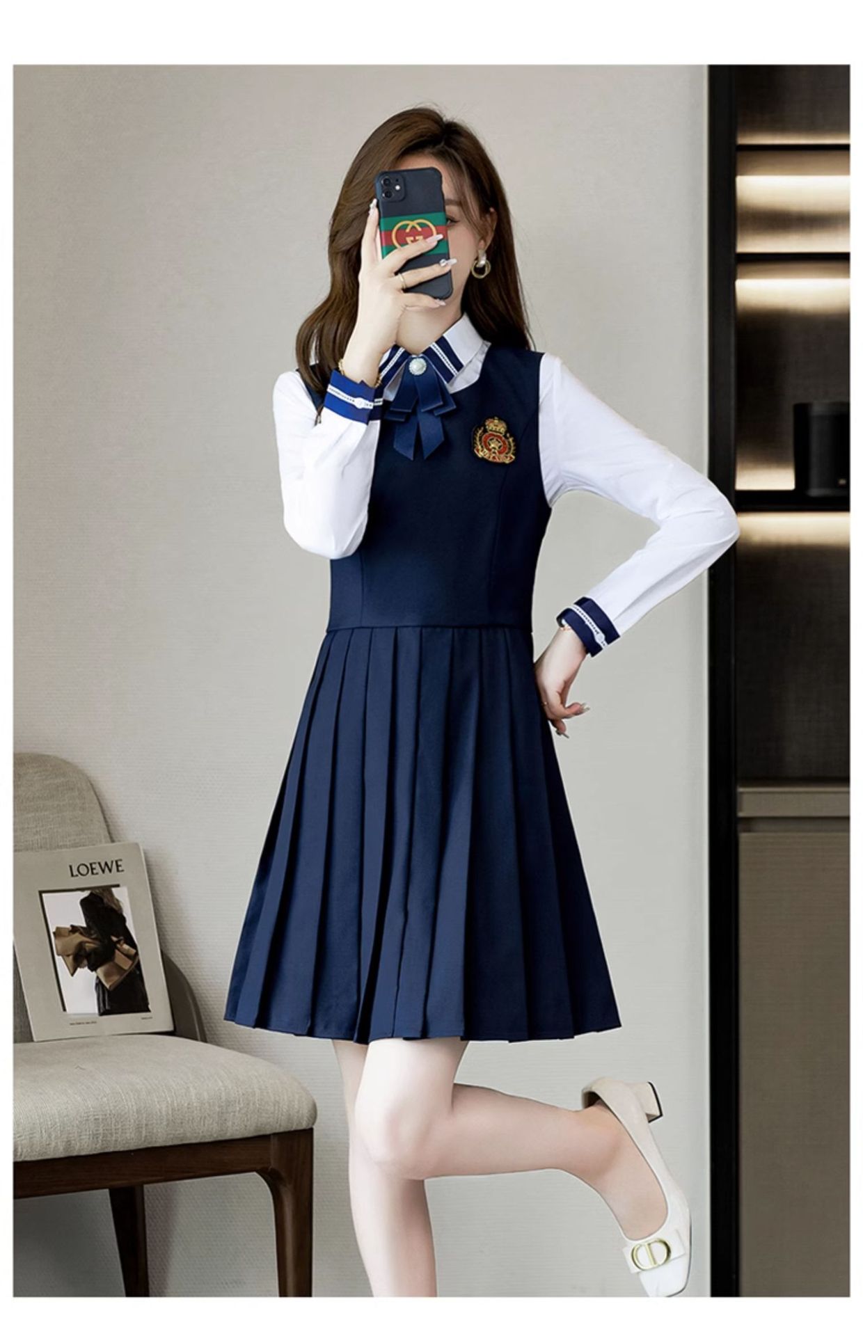 Gaun gaya kuliah wanita, setelan seragam jaket gaya Inggris baru 2023, rok rompi wanita