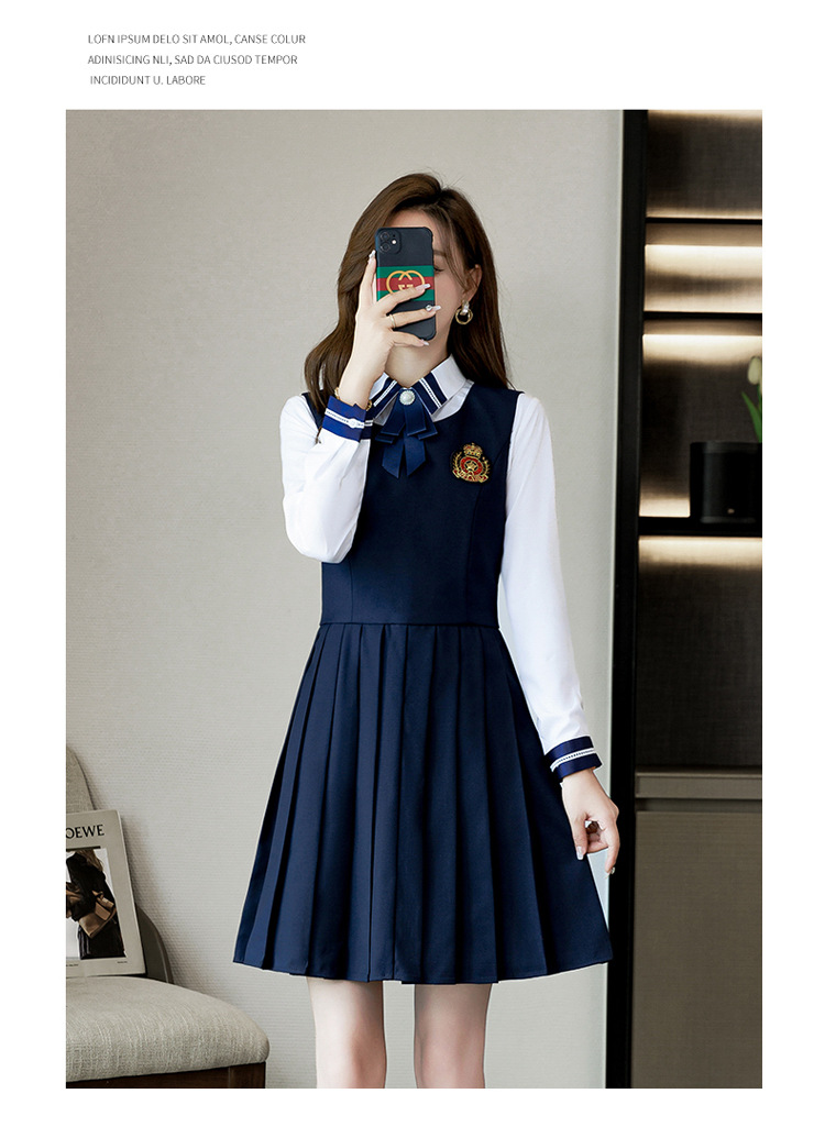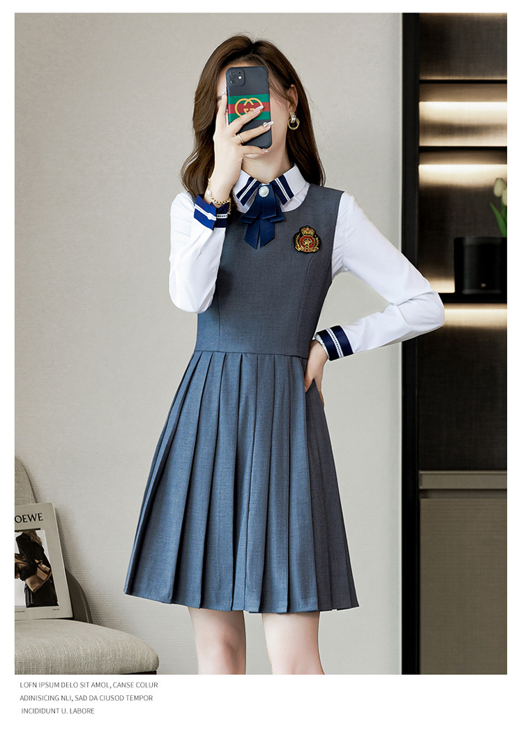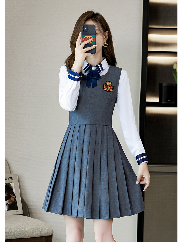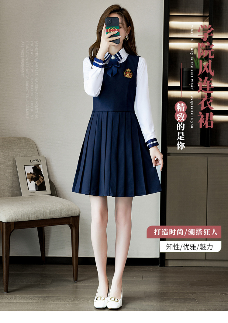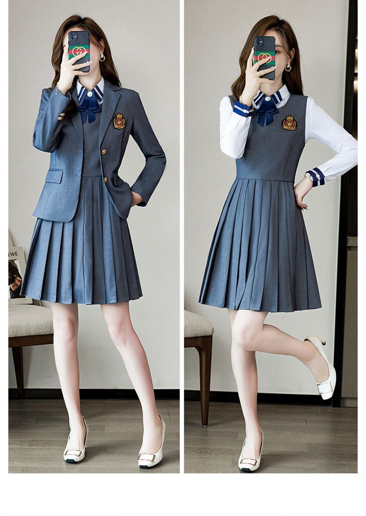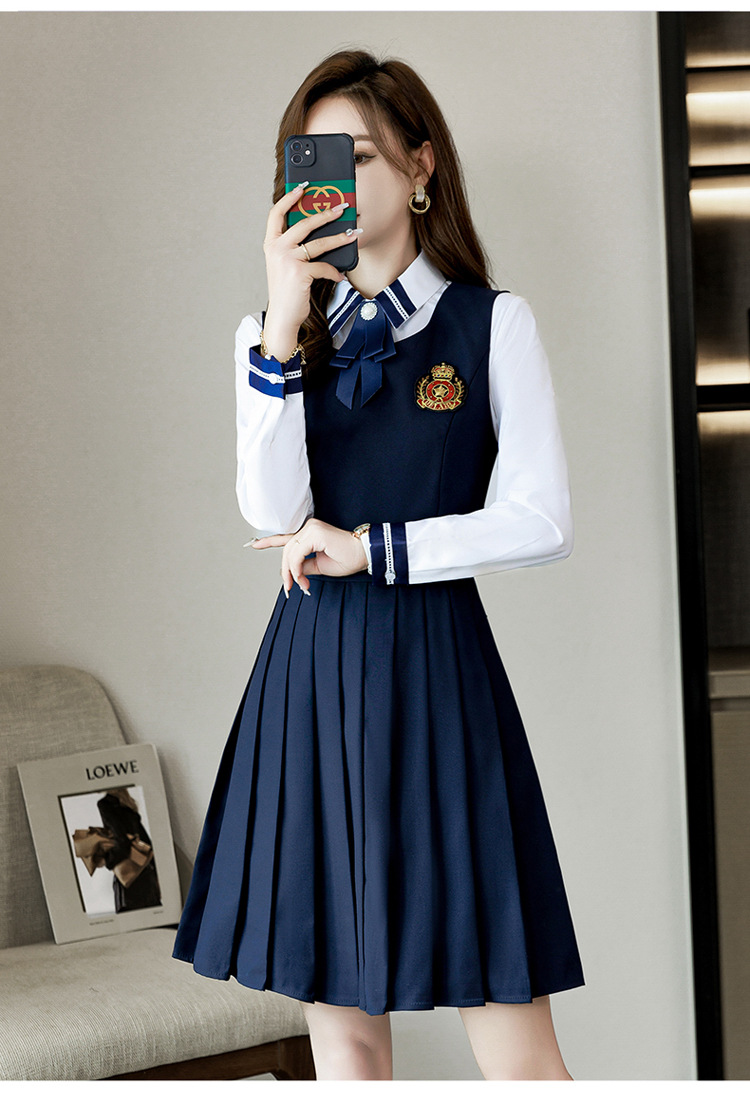 Gaun gaya kuliah wanita, setelan seragam jaket gaya Inggris baru 2023, rok rompi wanita