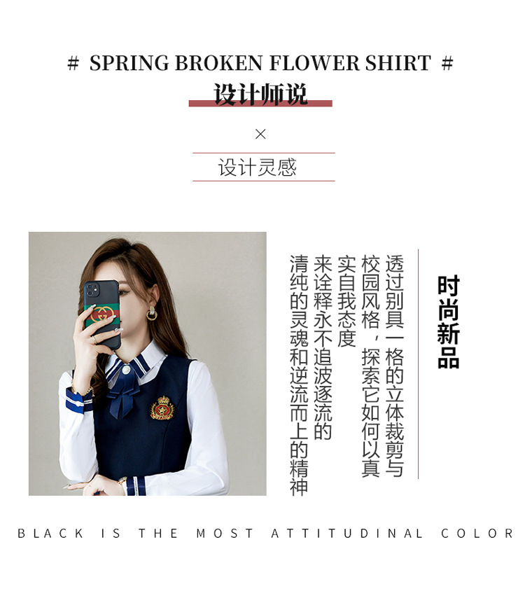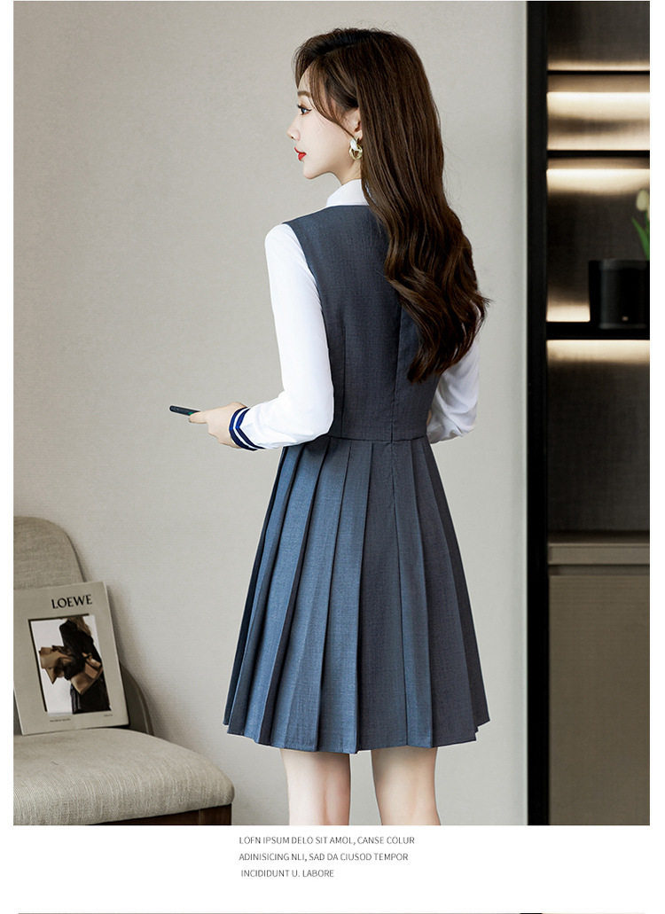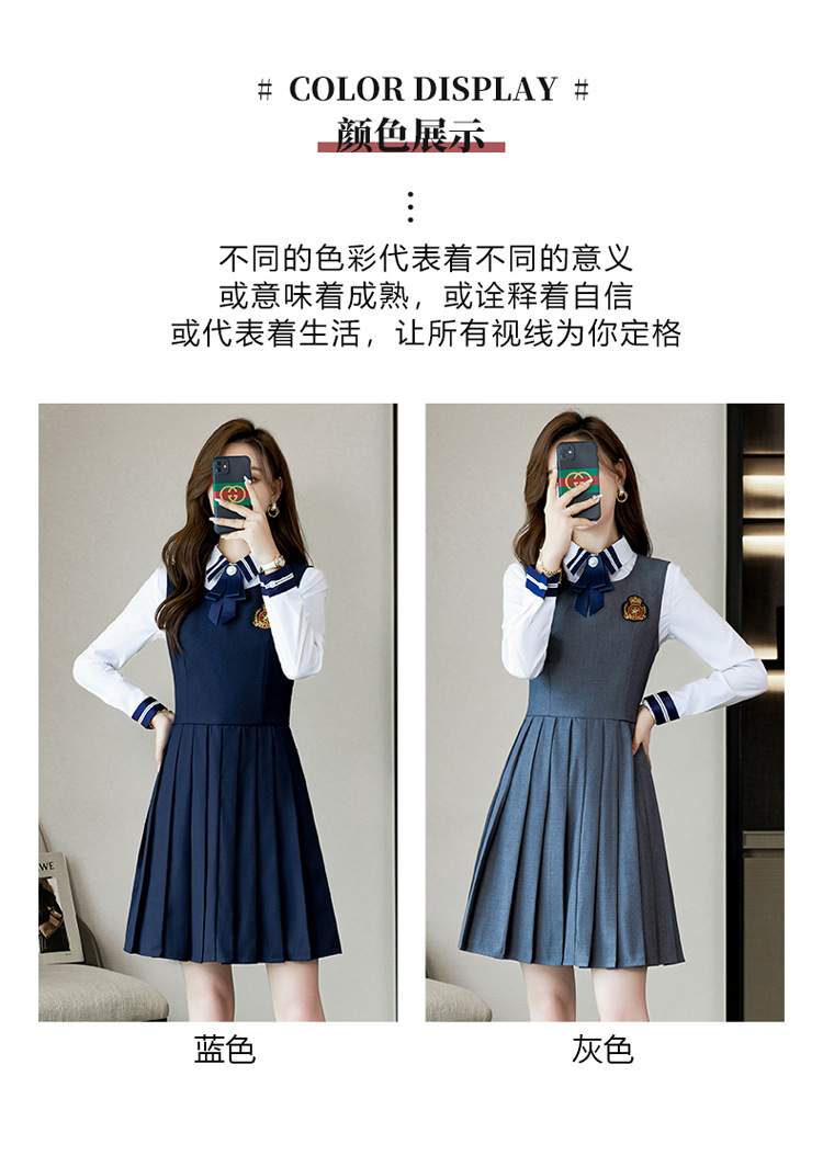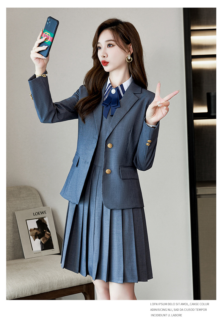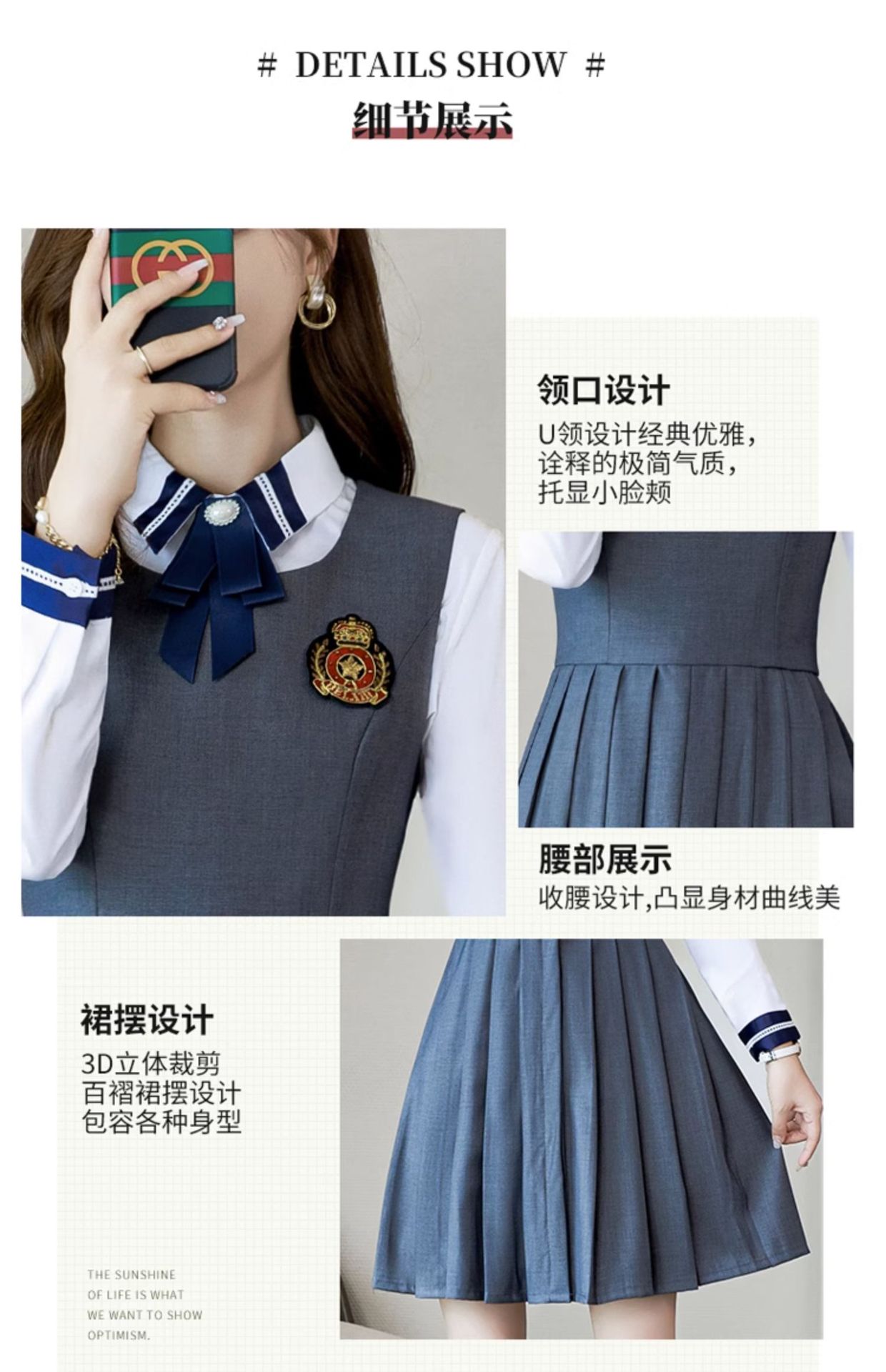 Gaun gaya kuliah wanita, setelan seragam jaket gaya Inggris baru 2023, rok rompi wanita