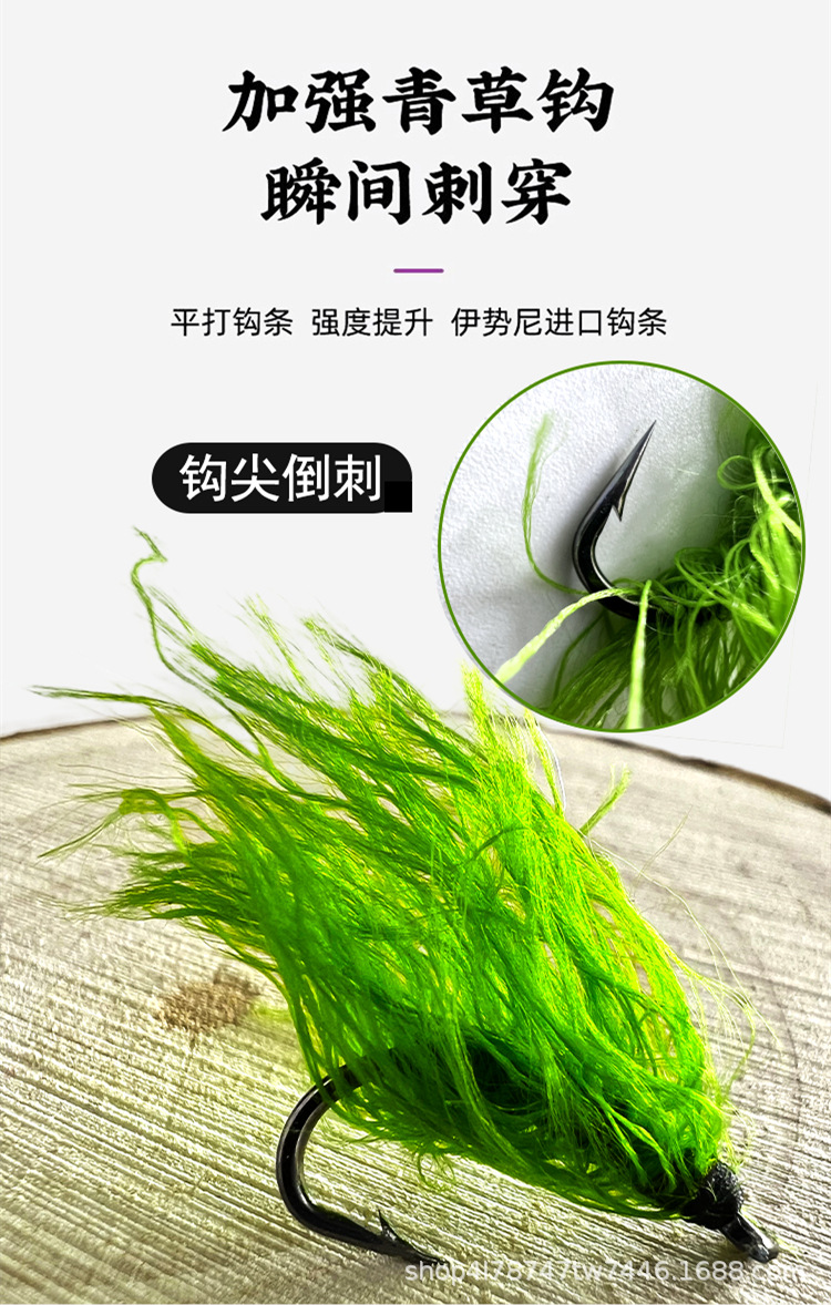 Luya umpan palsu simulasi kait rumput bionik lumut umpan rumput air ikan mas karper omnivora halus mengikat kait ikan