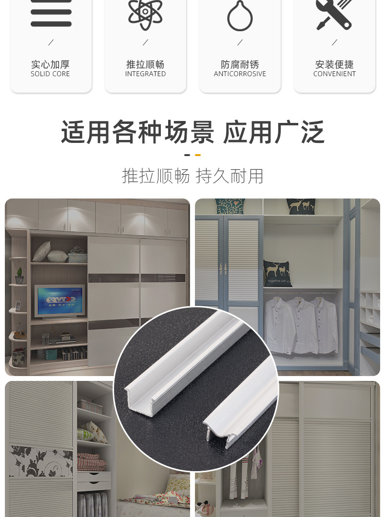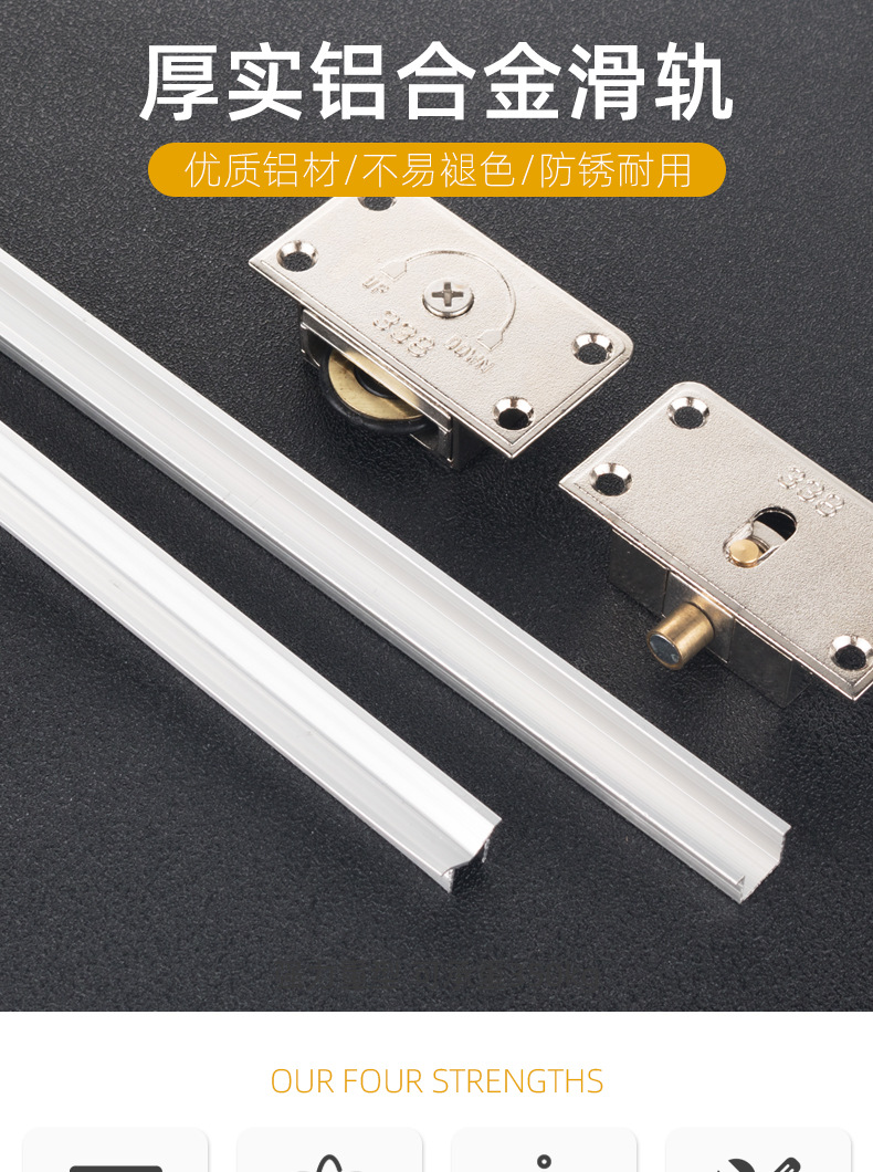 Rel pintu geser tebal, rel panduan pintu geser, lemari pakaian, pintu geser tebal, katrol kabinet sunyi, paduan aluminium, alur geser UV