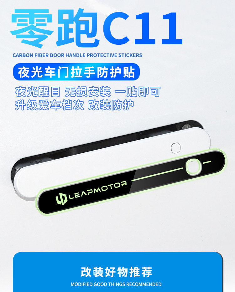 Cocok untuk zero running C11 stiker pintu mobil, stiker bercahaya, lapisan pelindung gagang pintu, bahan epoksi transparan, stiker bodi mobil modifikasi