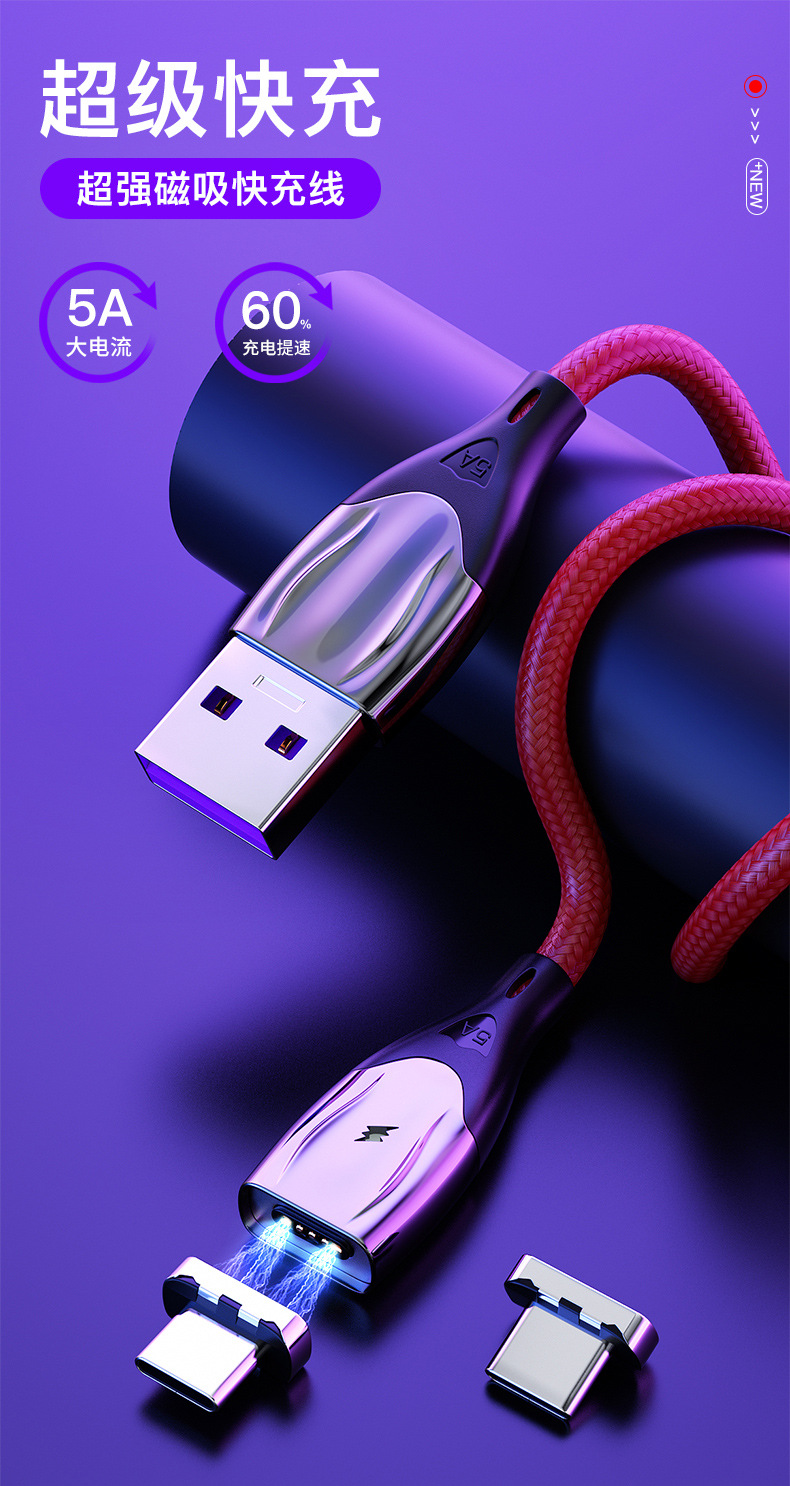 Pabrik kabel data magnetik tiga-dalam-satu 5A pengisian daya cepat untuk Huawei ponsel mobil Apple kabel pengisi daya grosir