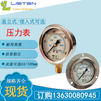 Pengukur tekanan vertikal pengukur tekanan oli ZG1/4 aksesoris rakitan stasiun hidrolik tertanam TZLI pengukur gliserin tekanan tinggi