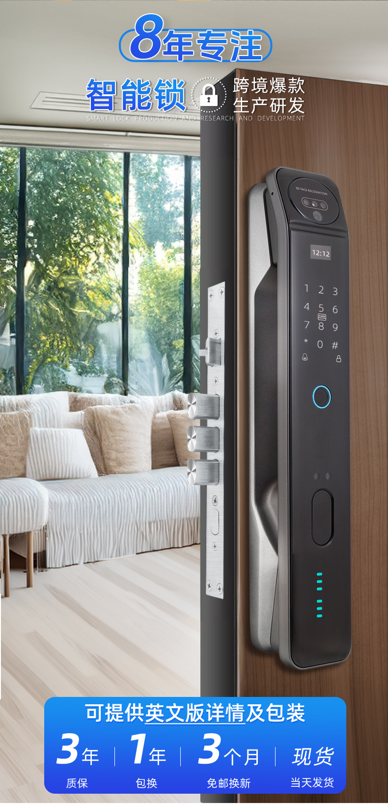 Produsen kunci pintu pintar lintas batas, kunci pintu pintar dengan grafiti Arab, kunci sidik jari, pengenalan wajah, dan kata sandi.