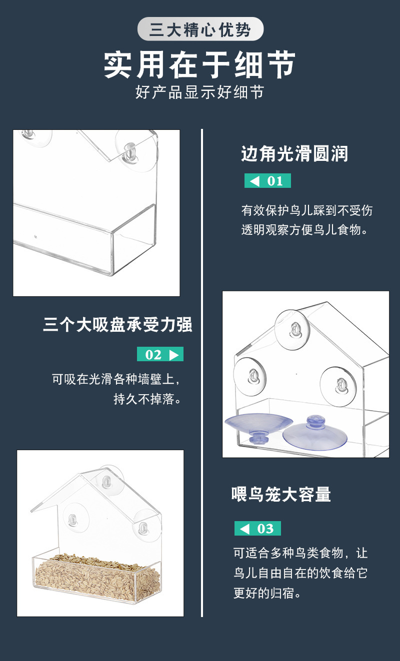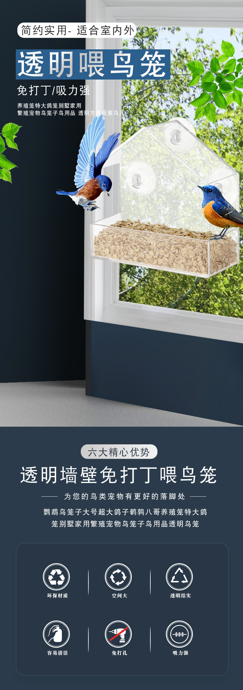 Kandang burung akrilik lintas batas pemberi makan burung adsorpsi perlengkapan hewan peliharaan kandang burung pasang dinding transparan