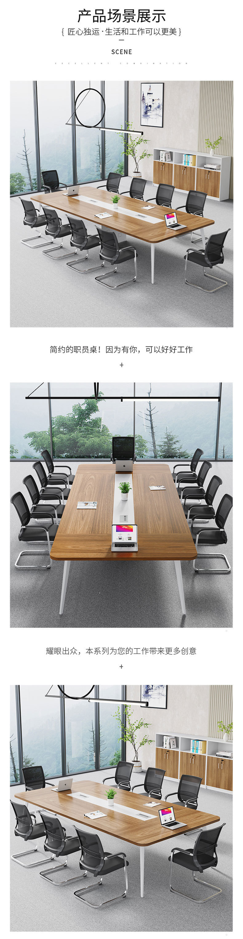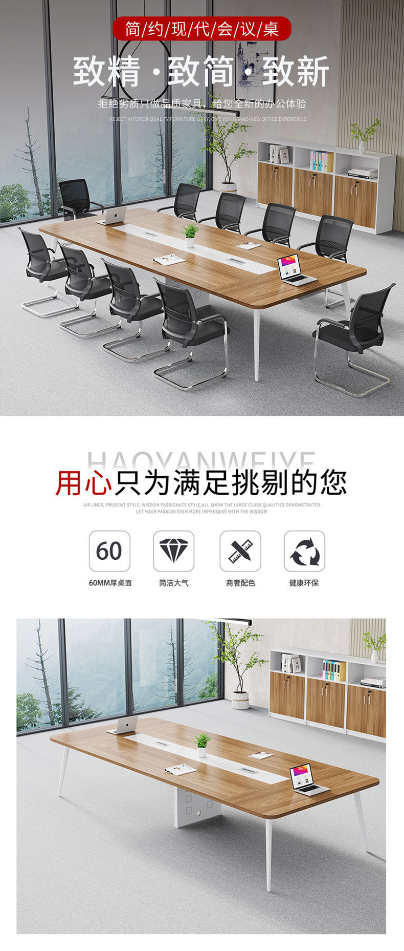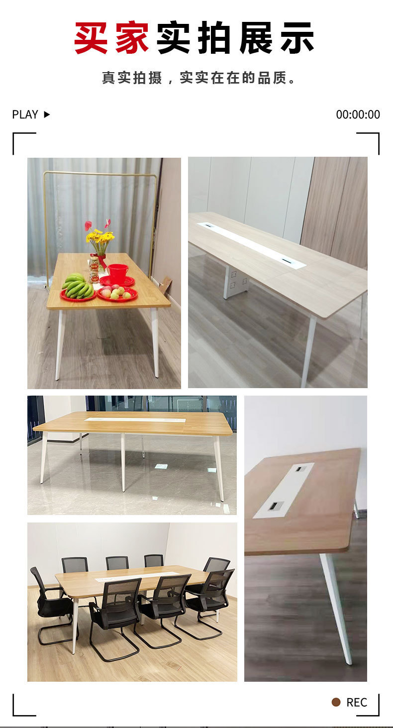 Pabrik Foshan grosir furnitur kantor bingkai baja meja konferensi meja panjang sederhana modern ruang konferensi pelatihan meja dan kursi kombinasi