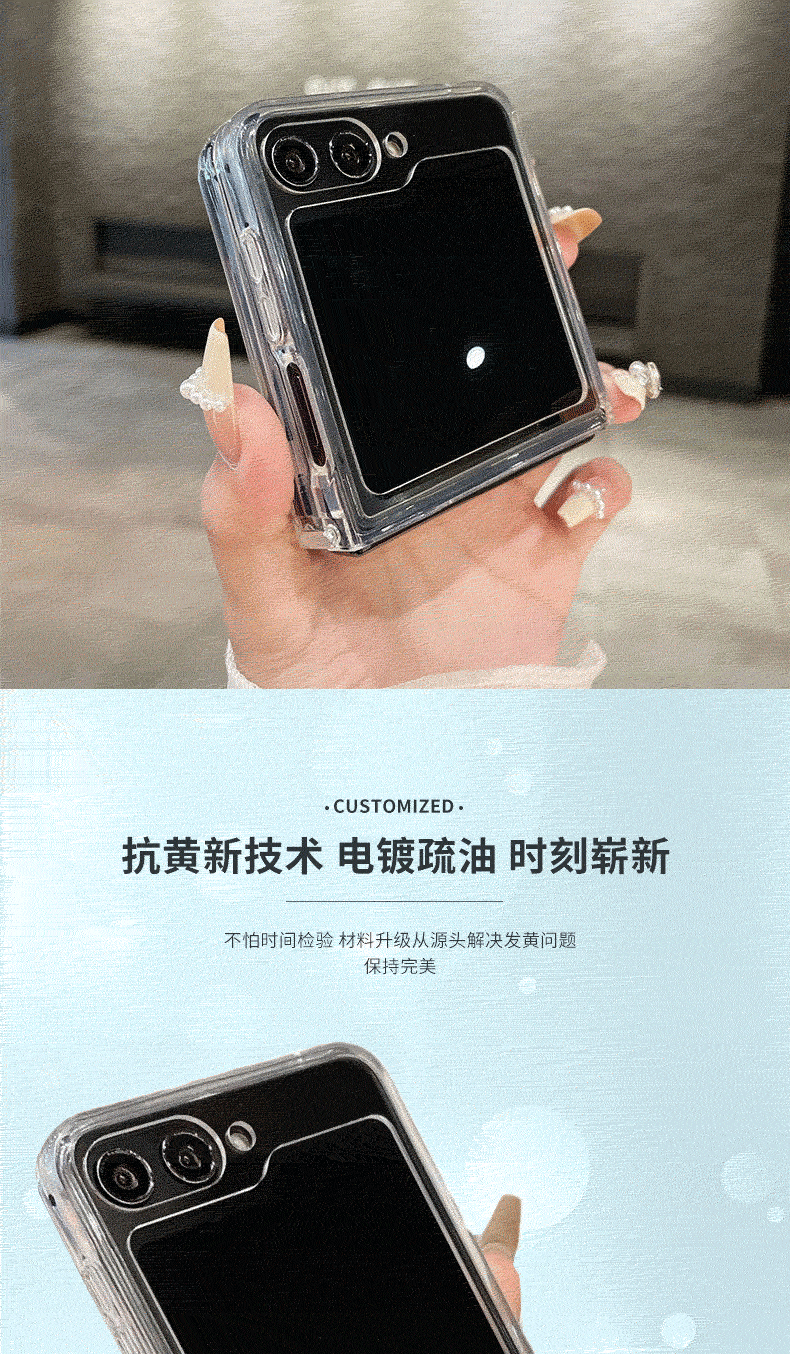 Cocok untuk casing ponsel Samsung Flip6, Z Flip5, dan Flip7; terbuat dari PC keras transparan, anti jatuh, dan dilengkapi cermin.