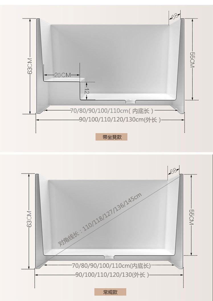 MAXSUNNY bak mandi akrilik gaya Jepang, bak berendam dipertebal untuk anak-anak dan dewasa