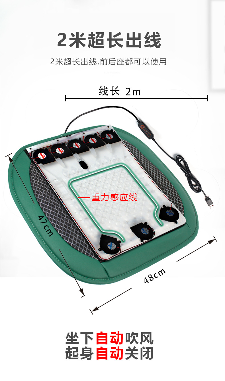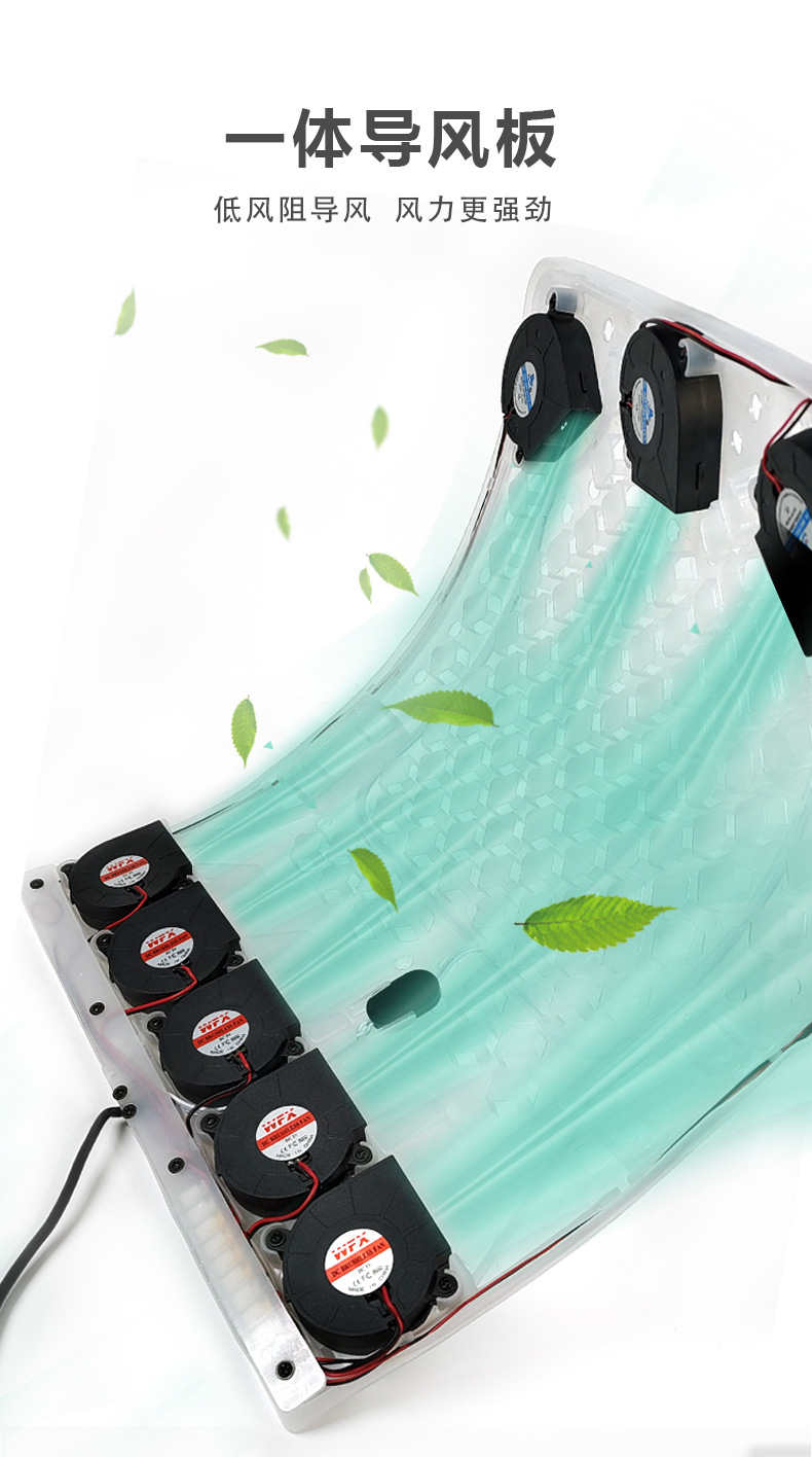 功能:8个风机,USB插头,家车多用,重力感应自动启停,智能手控,5000转高速静音