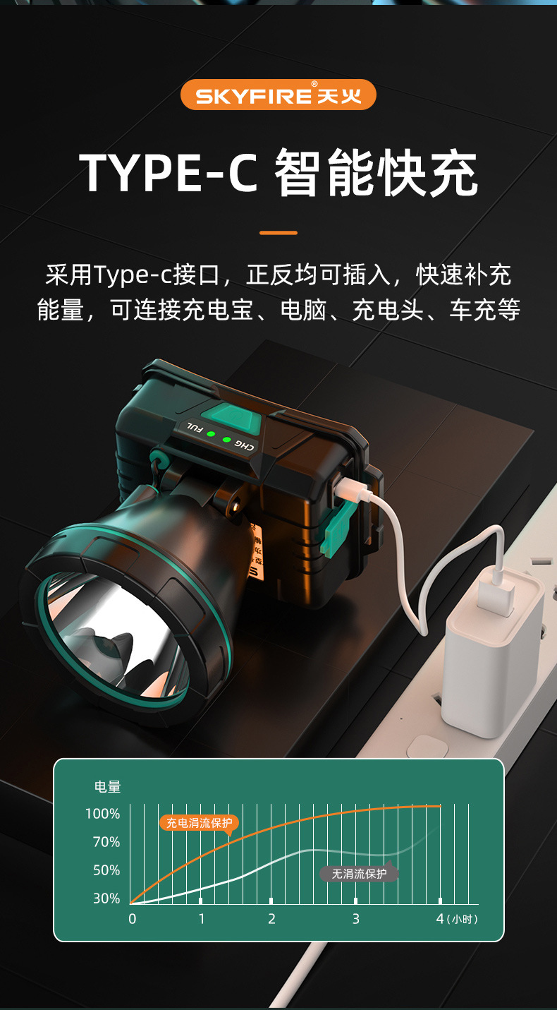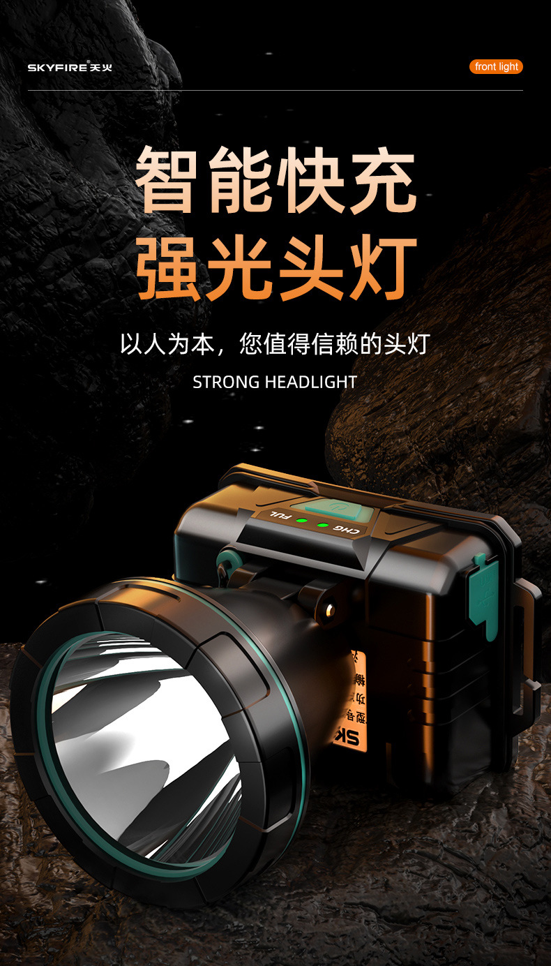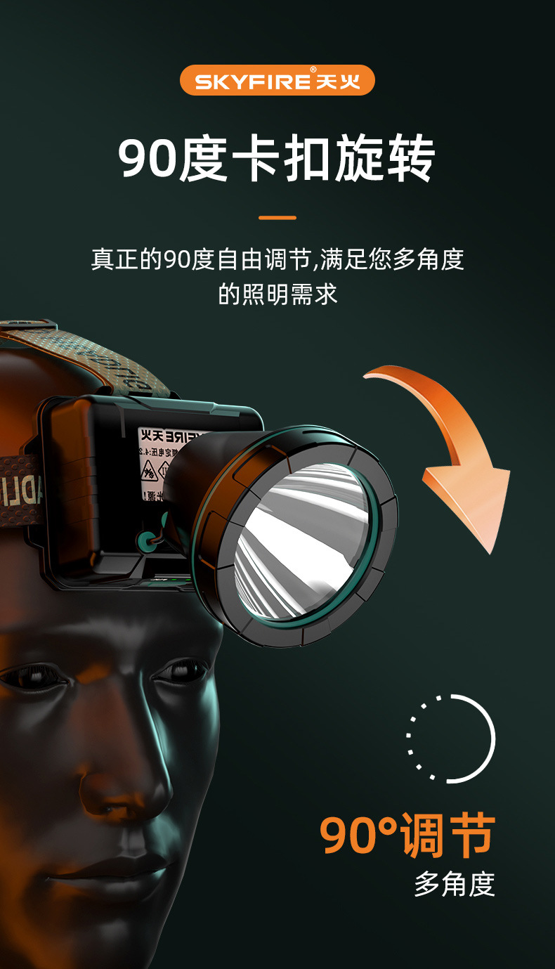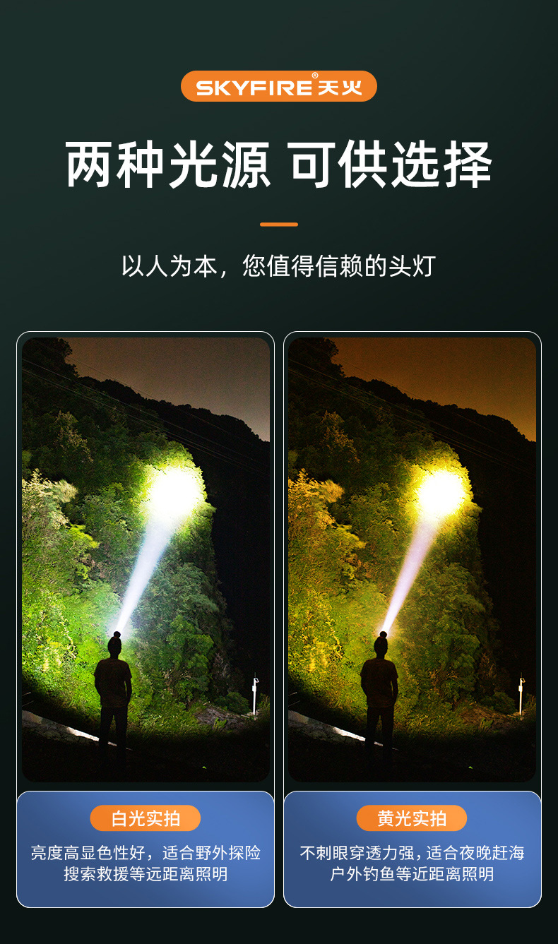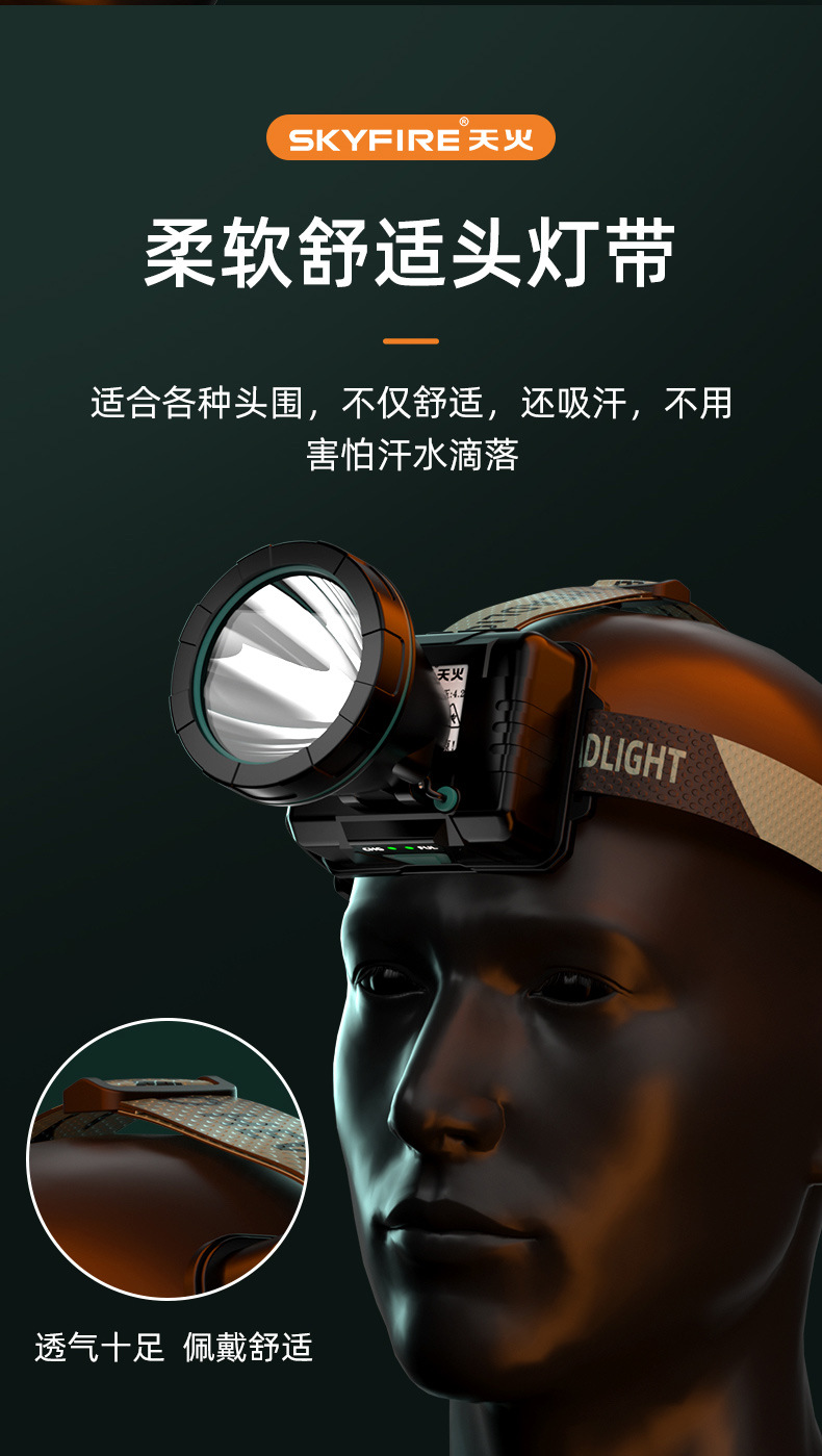 Sky fire lampu utama API, senter super terang dapat diisi ulang dipasang di kepala luar ruangan lampu malam khusus daya tahan lama