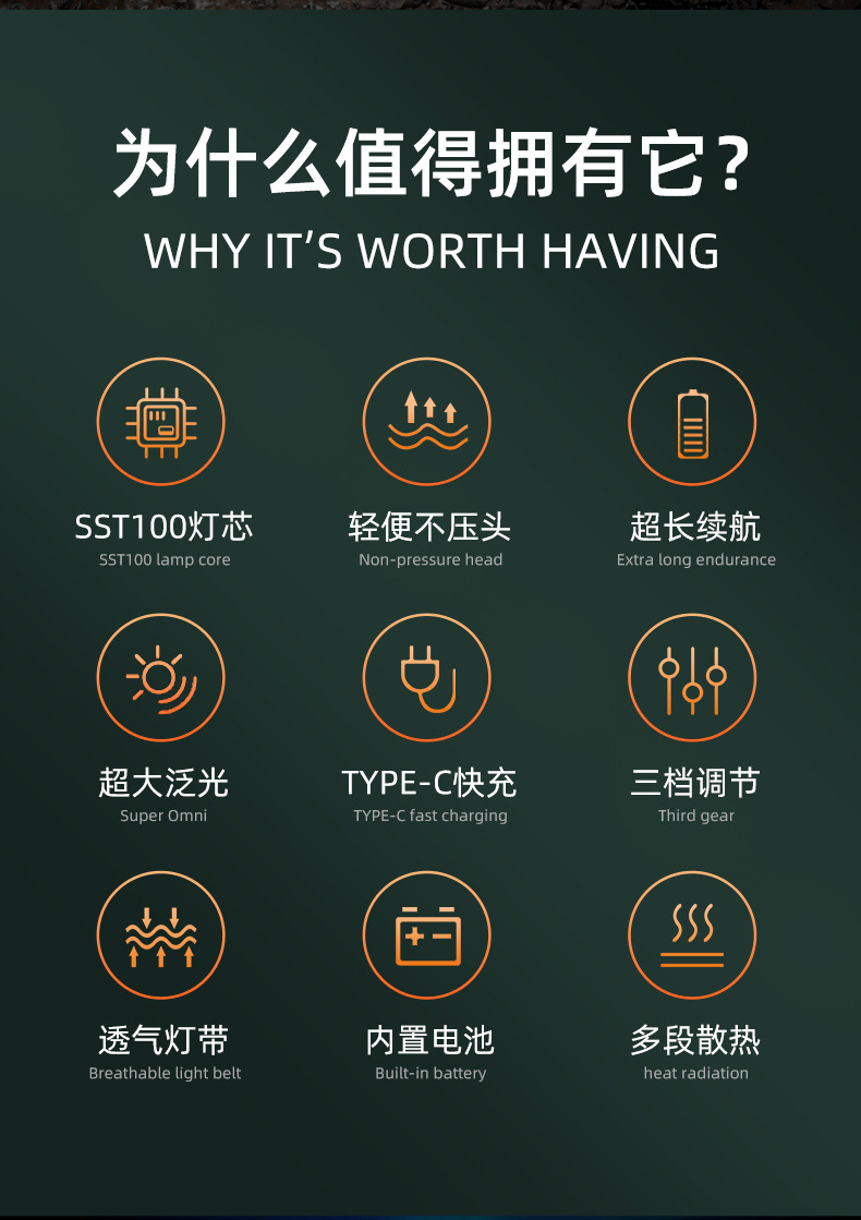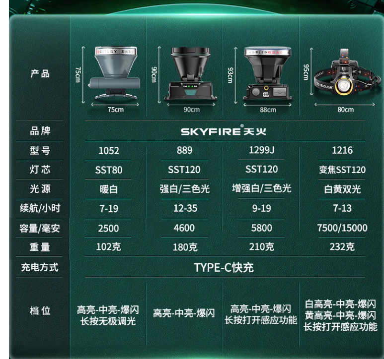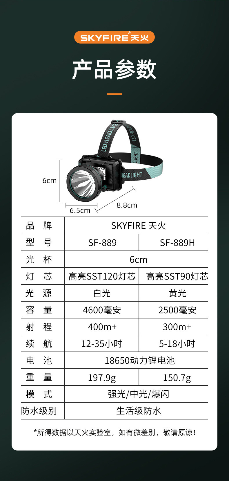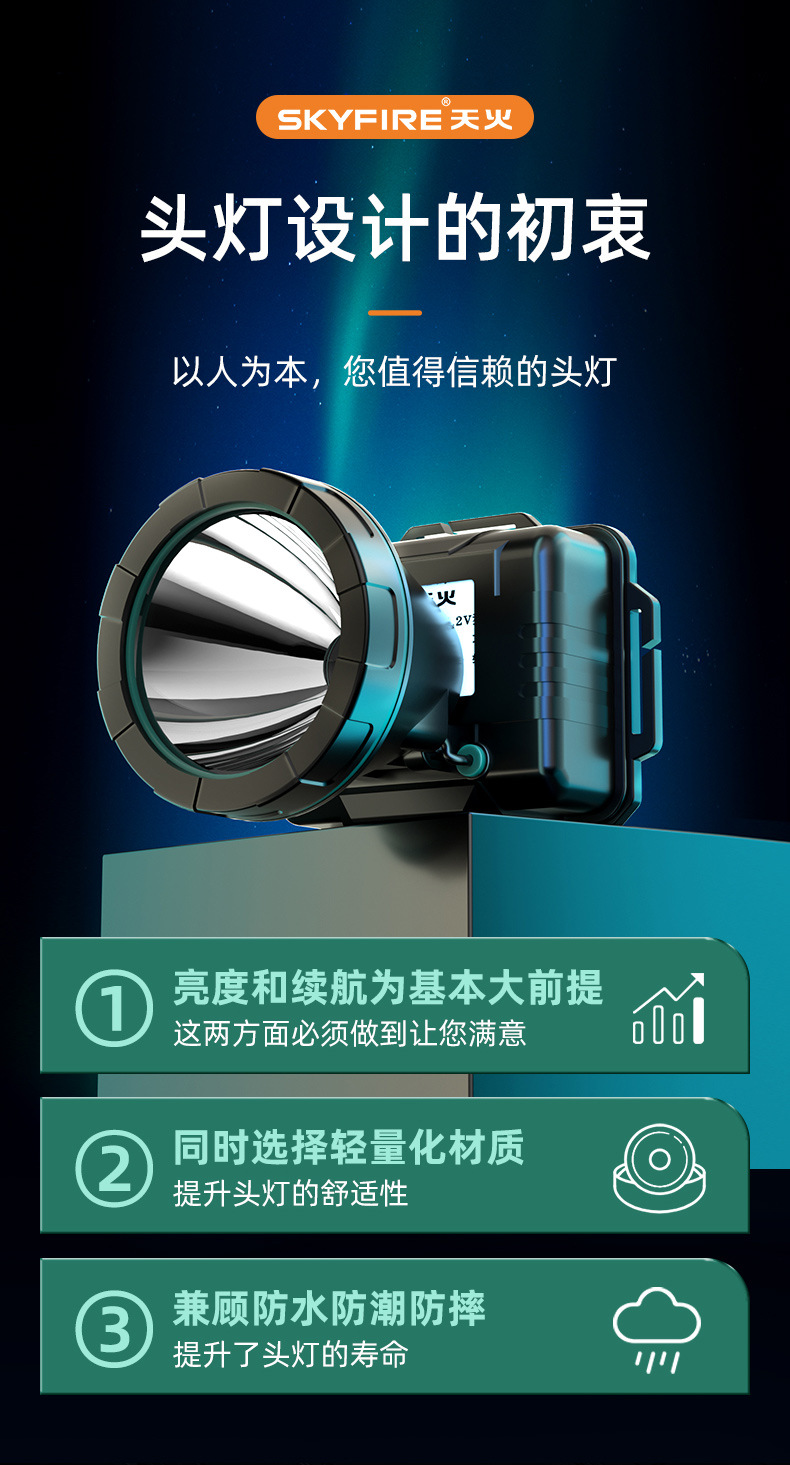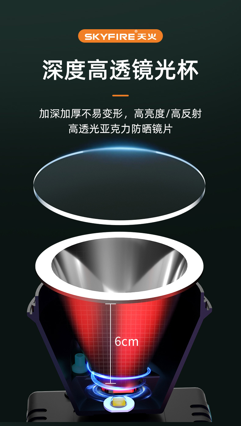 Sky fire lampu utama API, senter super terang dapat diisi ulang dipasang di kepala luar ruangan lampu malam khusus daya tahan lama