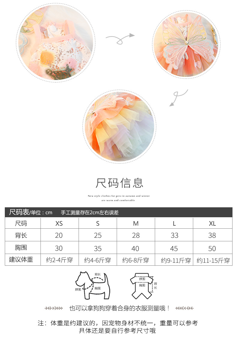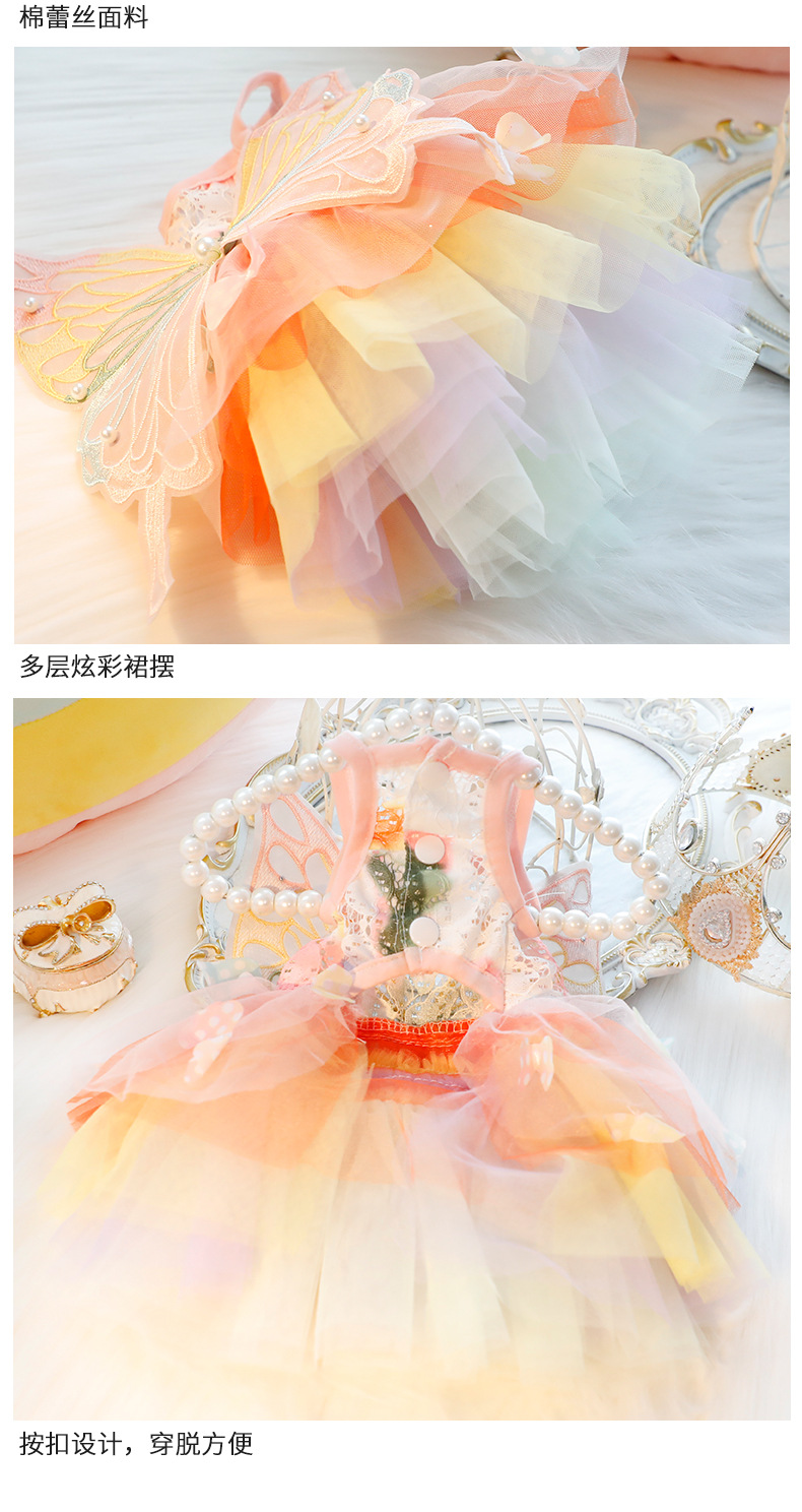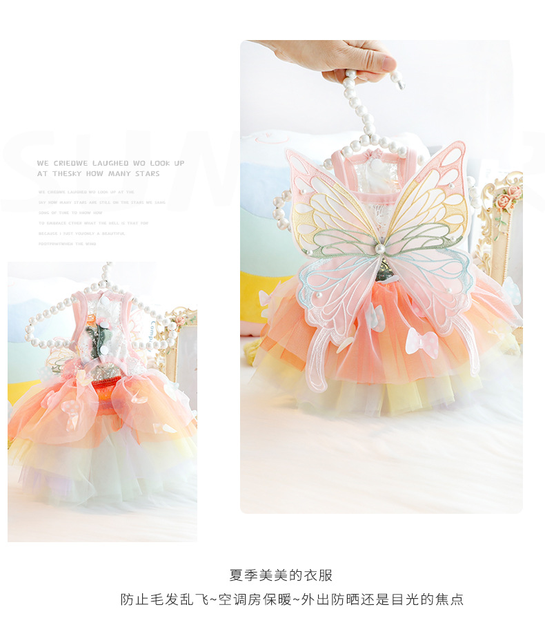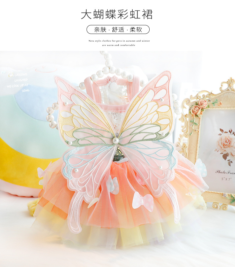 Baju anjing musim panas kucing tipis gaun putri pelangi kupu-kupu berbulu anjing kecil Teddy hewan peliharaan 4867 grosir