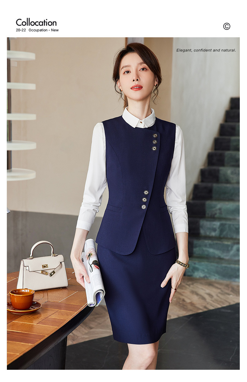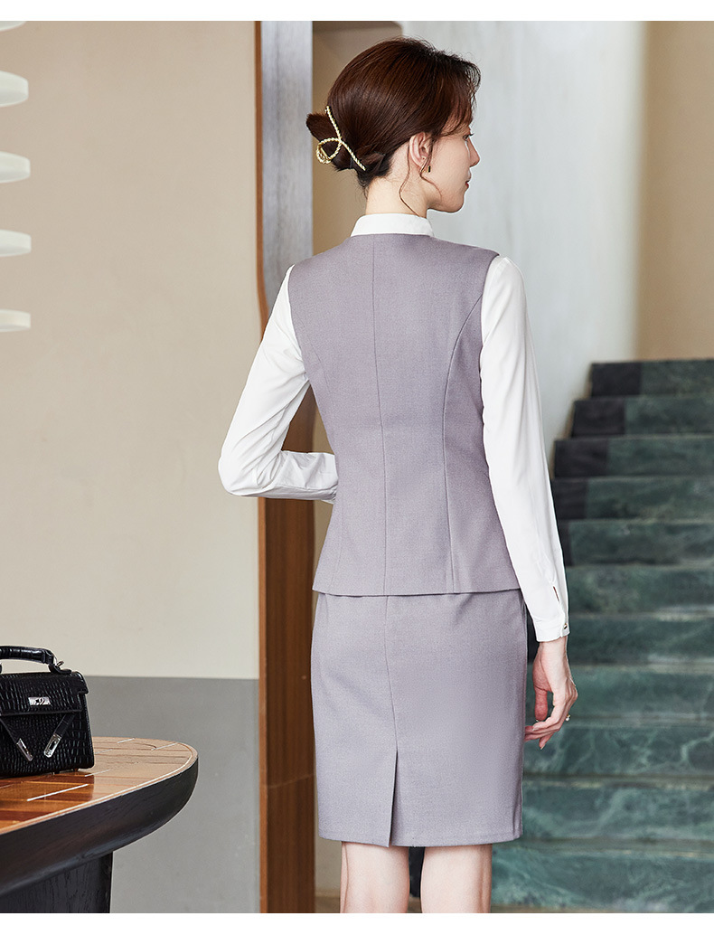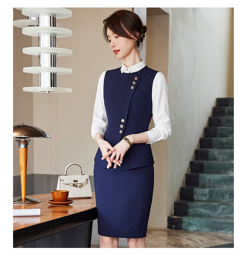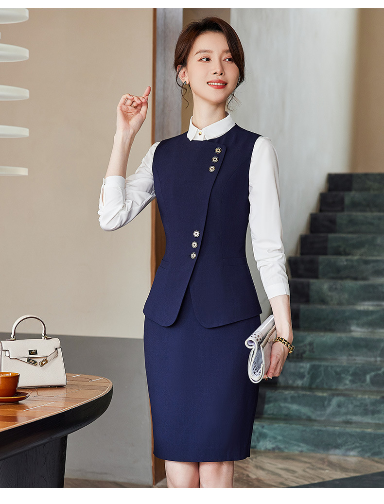 Pakaian kerja meja depan Hotel seragam pramugari penerima wanita setelan profesional rompi temperamen wanita setelan rok properti pakaian kerja