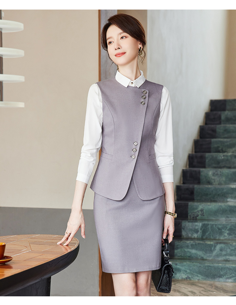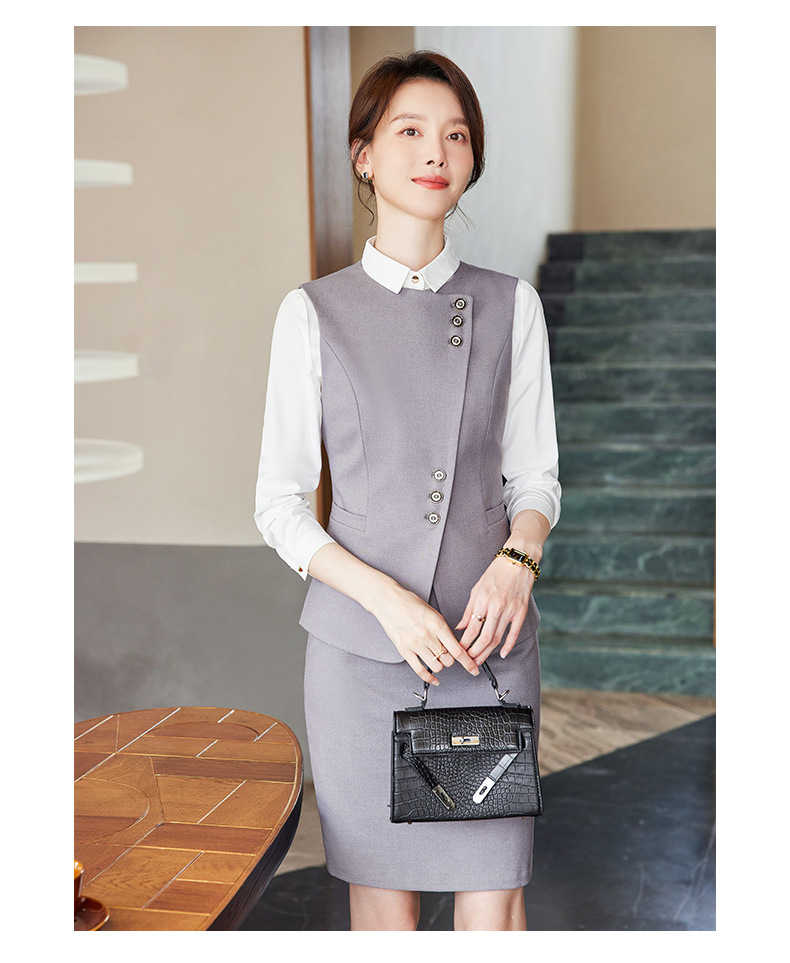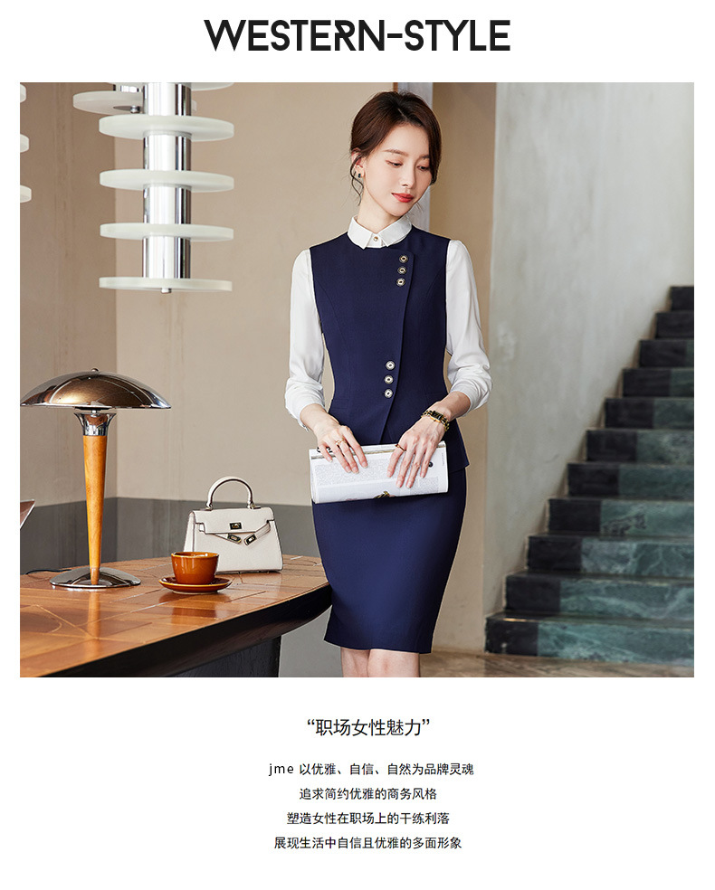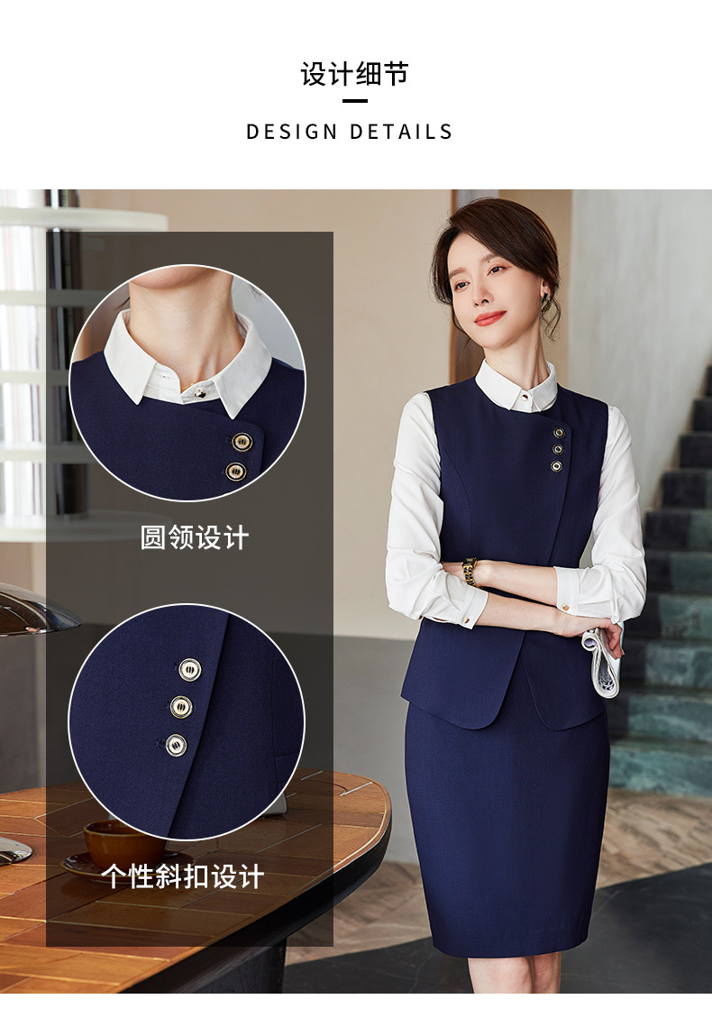 Pakaian kerja meja depan Hotel seragam pramugari penerima wanita setelan profesional rompi temperamen wanita setelan rok properti pakaian kerja