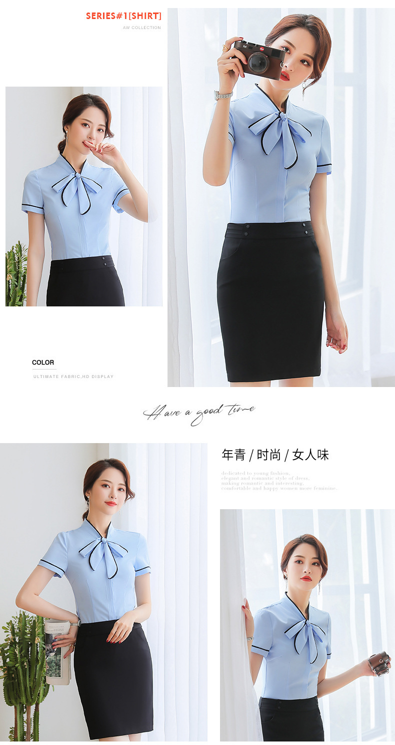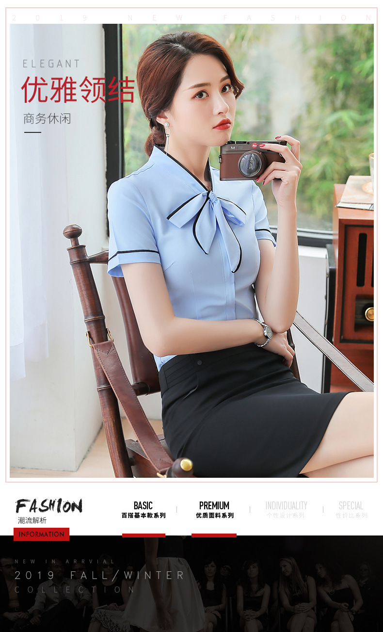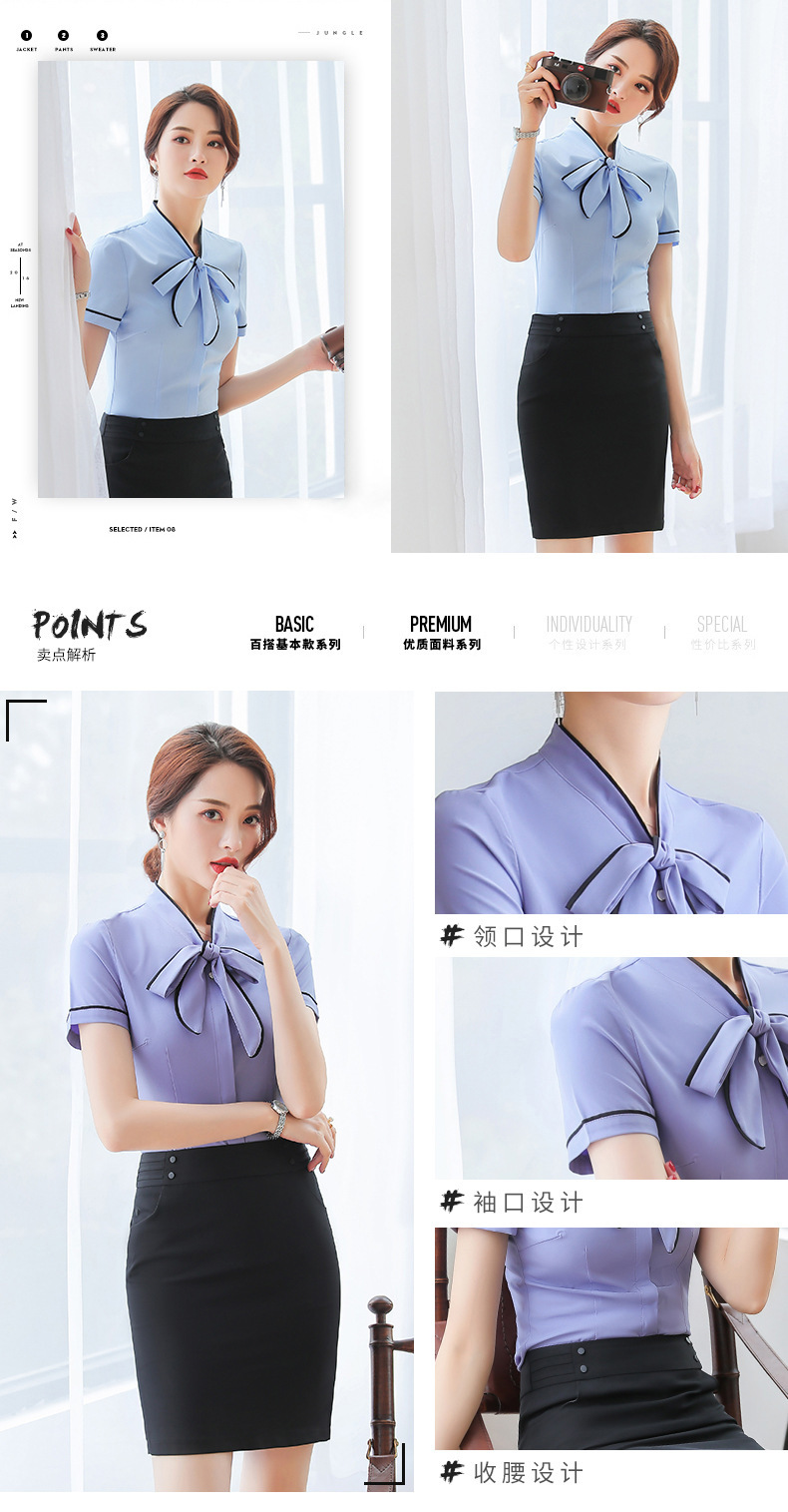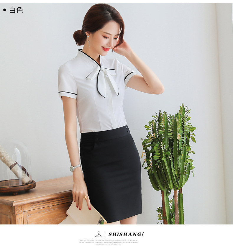 Kemeja lengan pendek wanita musim panas Hotel ktv meja depan kasir pelayan Mode Korea pakaian formal profesional kemeja overall