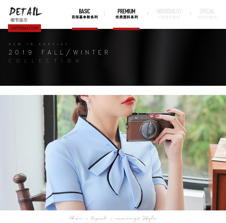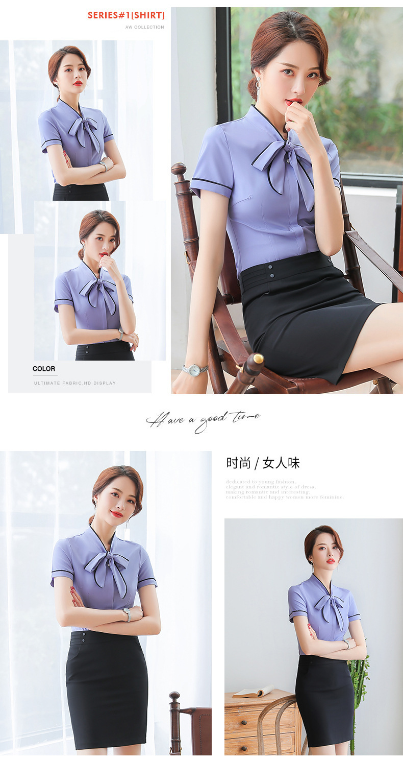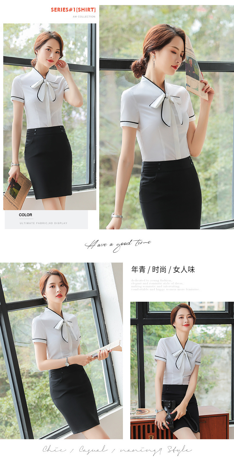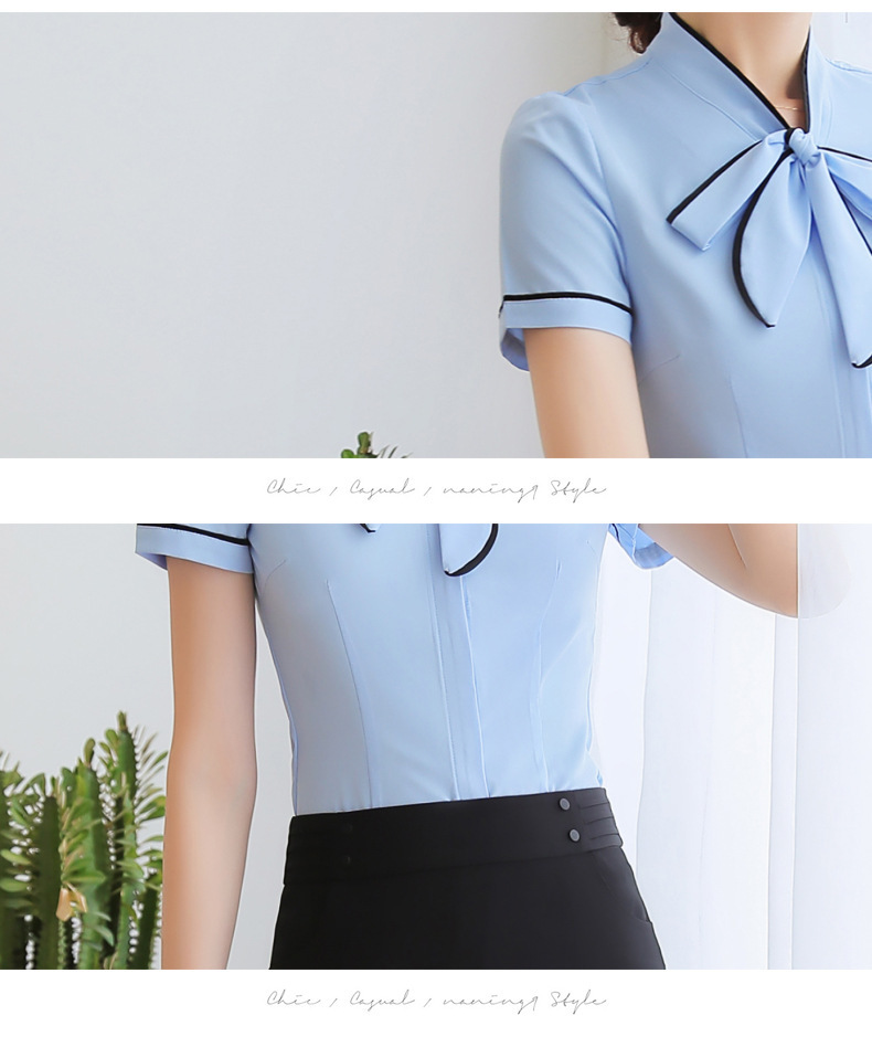 Kemeja lengan pendek wanita musim panas Hotel ktv meja depan kasir pelayan Mode Korea pakaian formal profesional kemeja overall