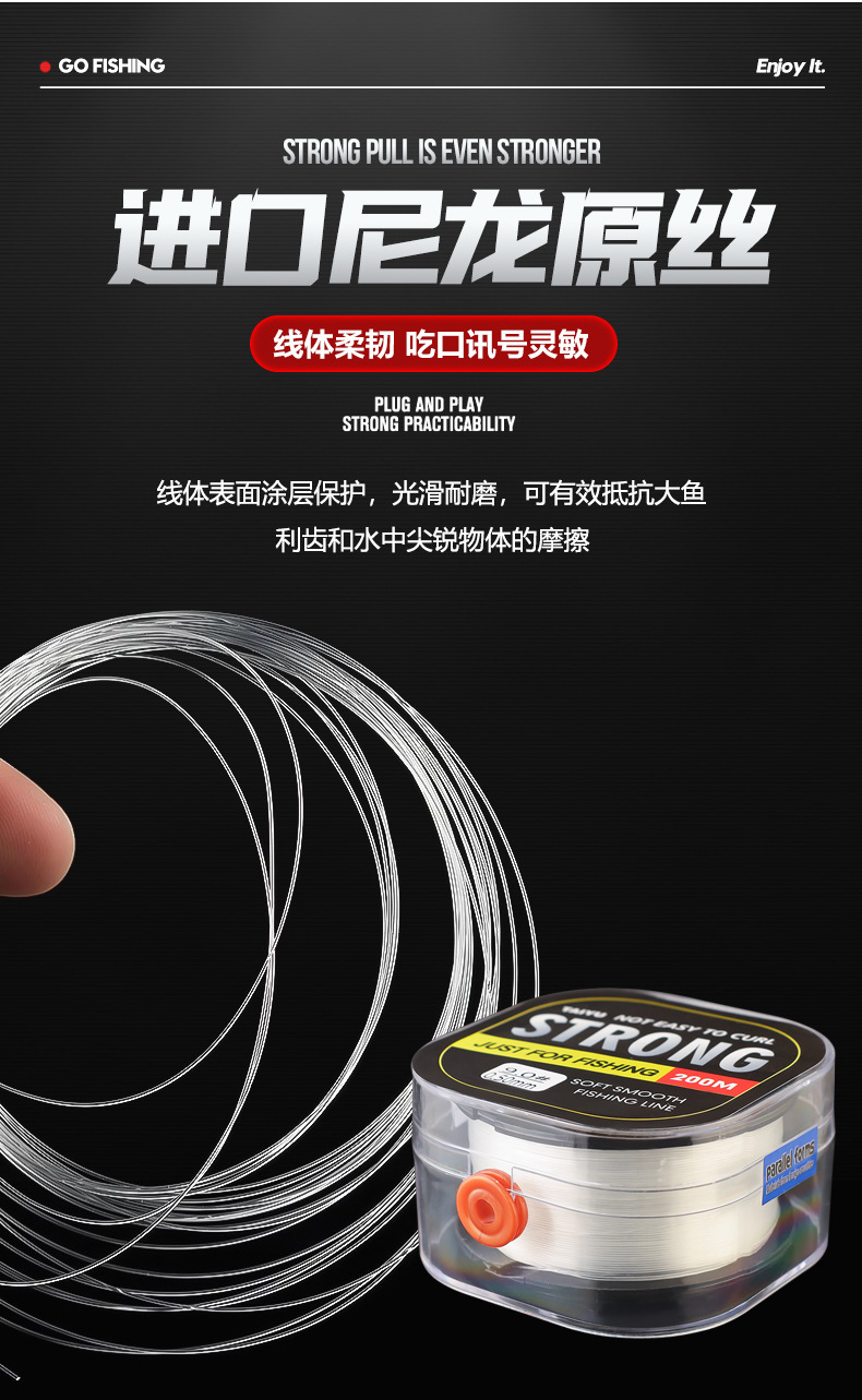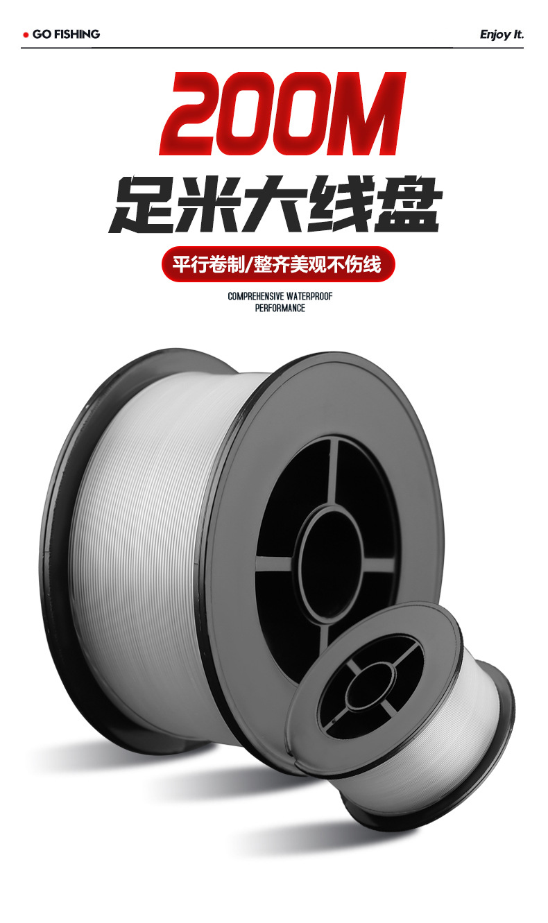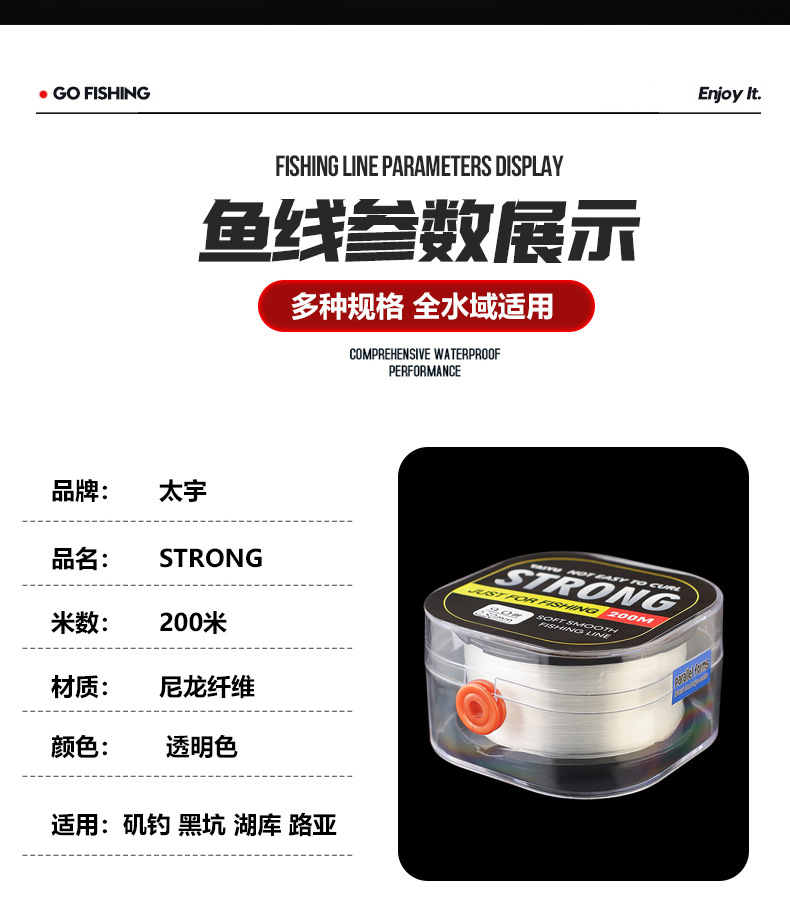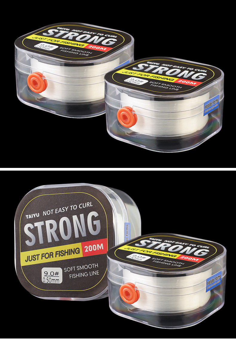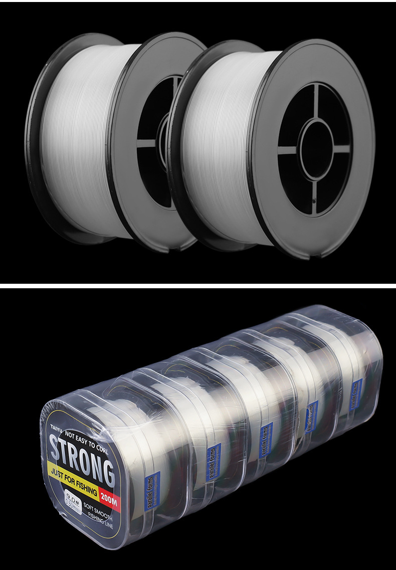 Senar pancing Taiyu 200 meter, senar utama nilon, senar sutra mentah, senar sub ultra-lembut panjang penuh untuk ikan Asia