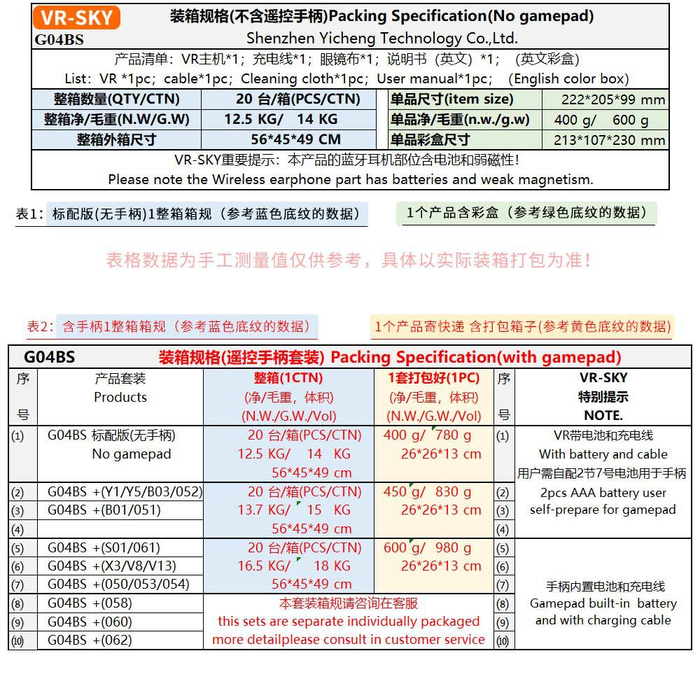 15.装箱标配:VR眼镜*1;说明书(中英文)*1;镜布*1;英文包装彩盒*1