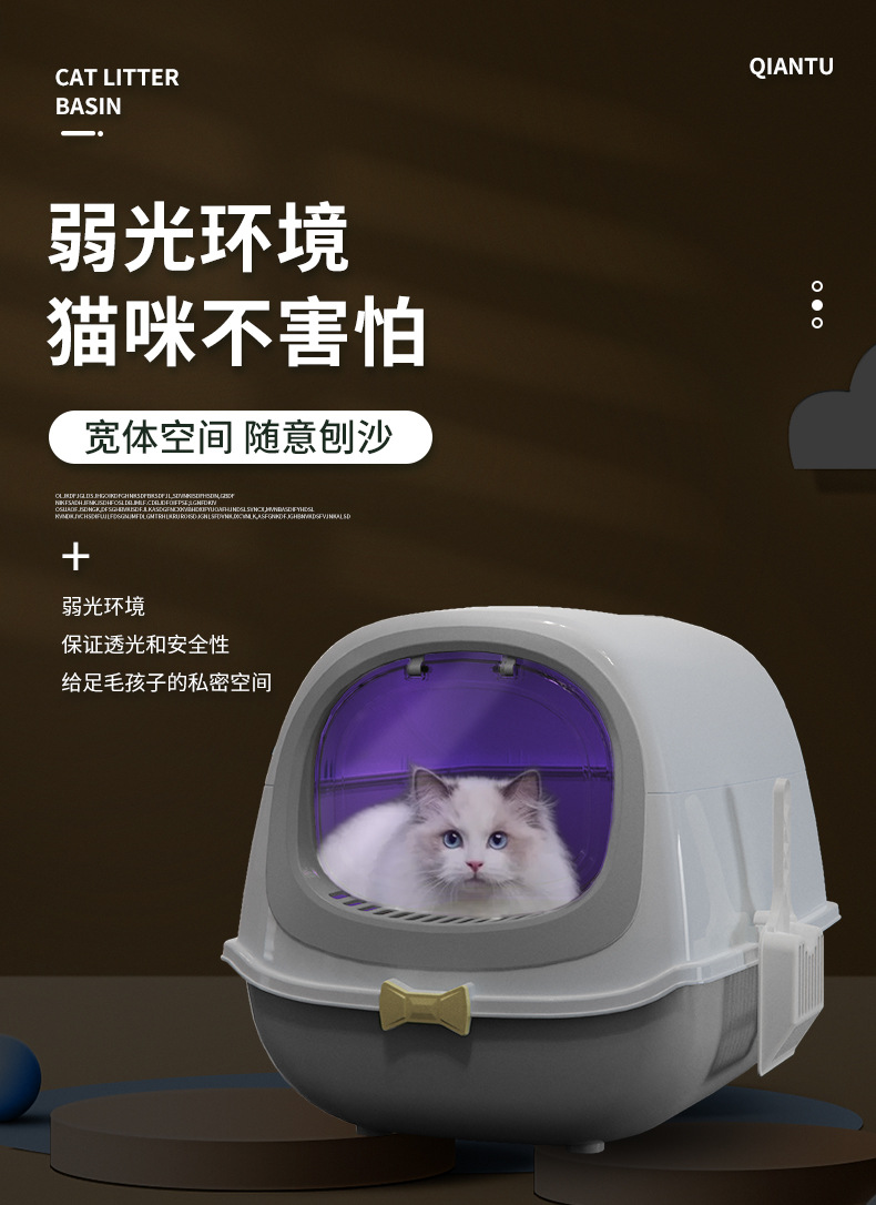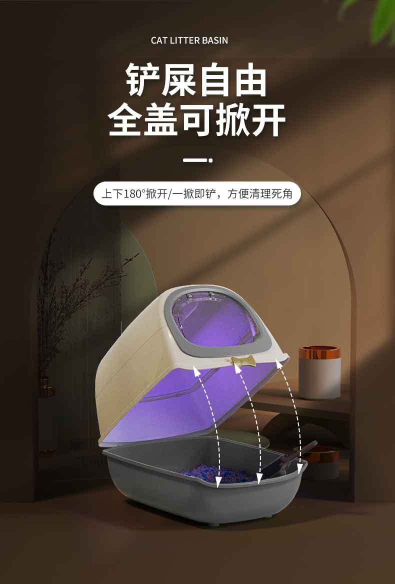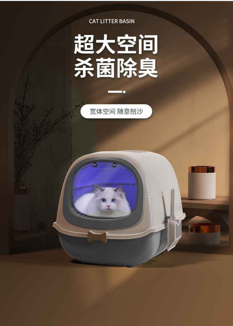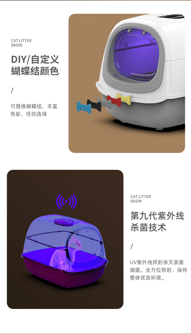 Kotak sampah kucing besar tertutup penuh, Sekop kotoran cerdas sterilisasi deodoran toilet kucing dengan kotak sampah kucing grosir pabrik