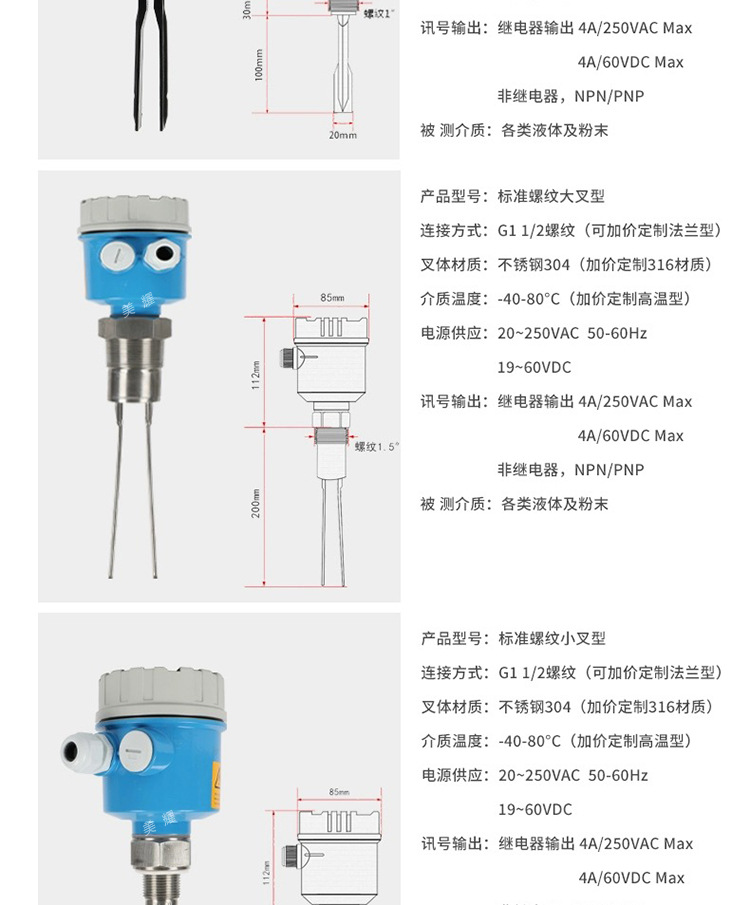 Saklar level cairan tipe tuning fork Saklar level air tipe tuning fork Saklar batas level tuning fork