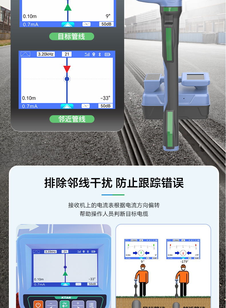 Probe detektor pipa bawah tanah, detektor pipa logam pemantau kesalahan kabel lokasi tren kedalaman