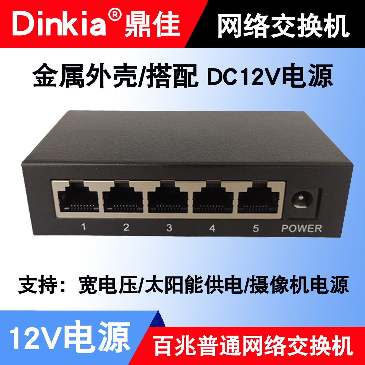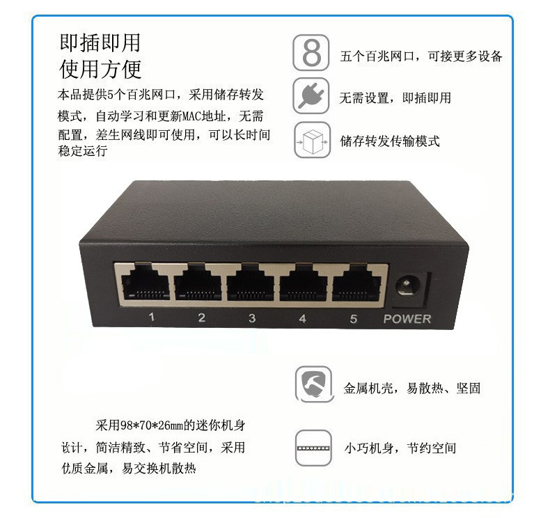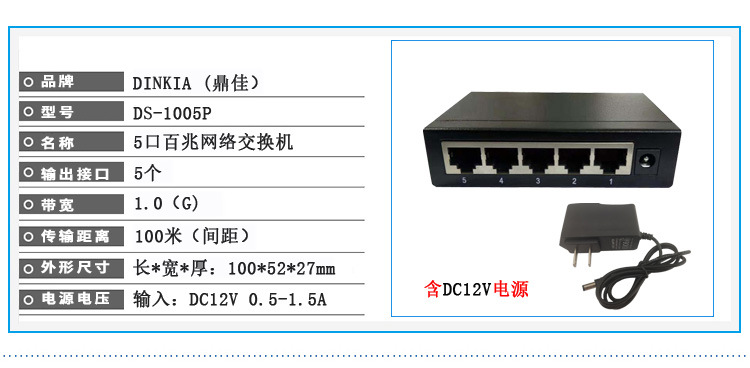 Produsen grosir switch Ethernet 5-port 100M 12V, switch jaringan 100/1000M