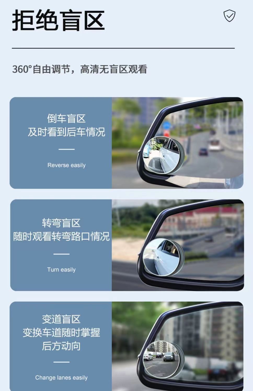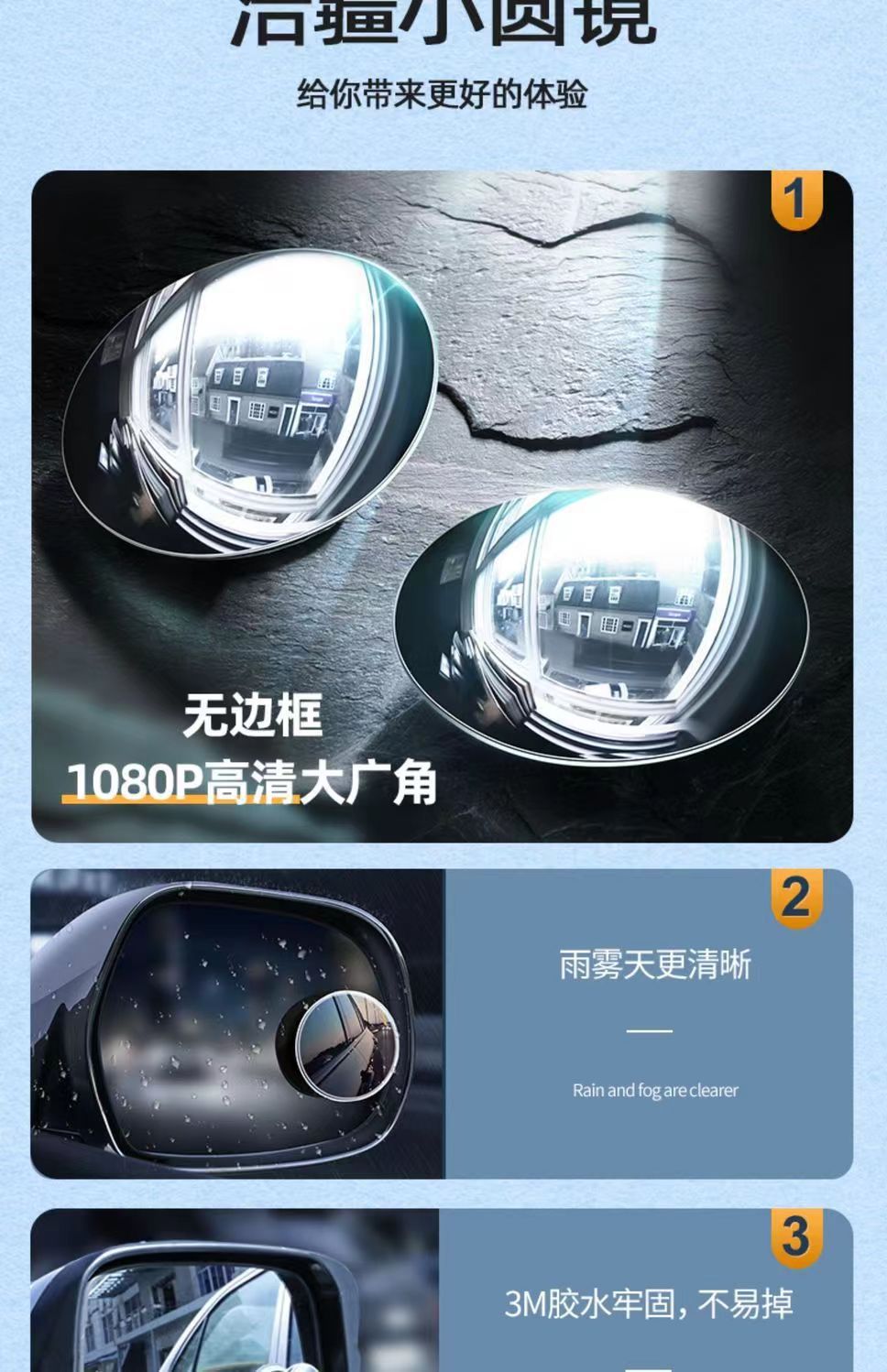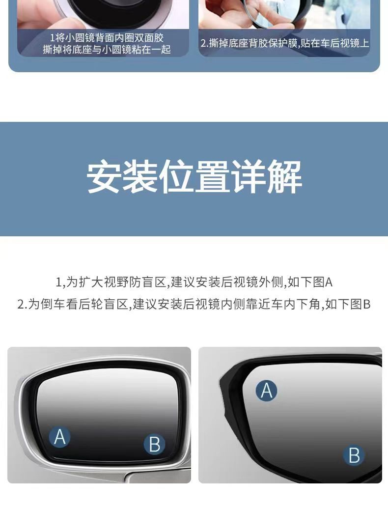 Kaca spion bantu tanpa bingkai 360 ° Cermin Titik Buta Mobil yang Dapat Disesuaikan, Sudut Lebar, Anti Hujan, Cermin Biru, Sudut Ultra Lebar