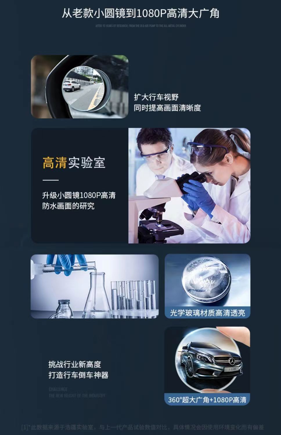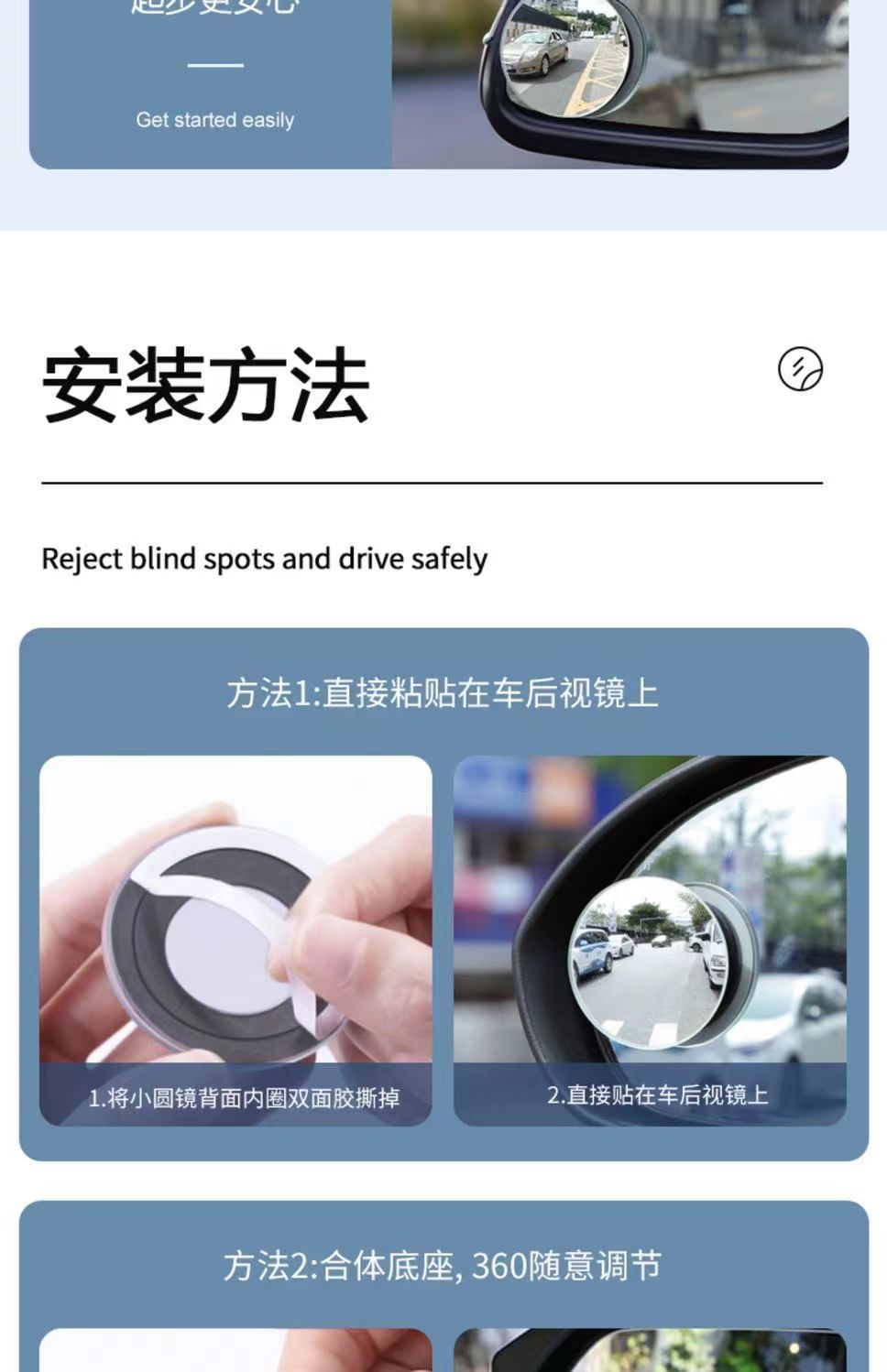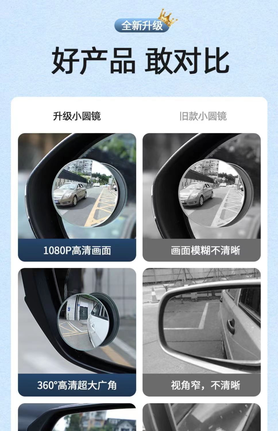 Kaca spion bantu tanpa bingkai 360 ° Cermin Titik Buta Mobil yang Dapat Disesuaikan, Sudut Lebar, Anti Hujan, Cermin Biru, Sudut Ultra Lebar