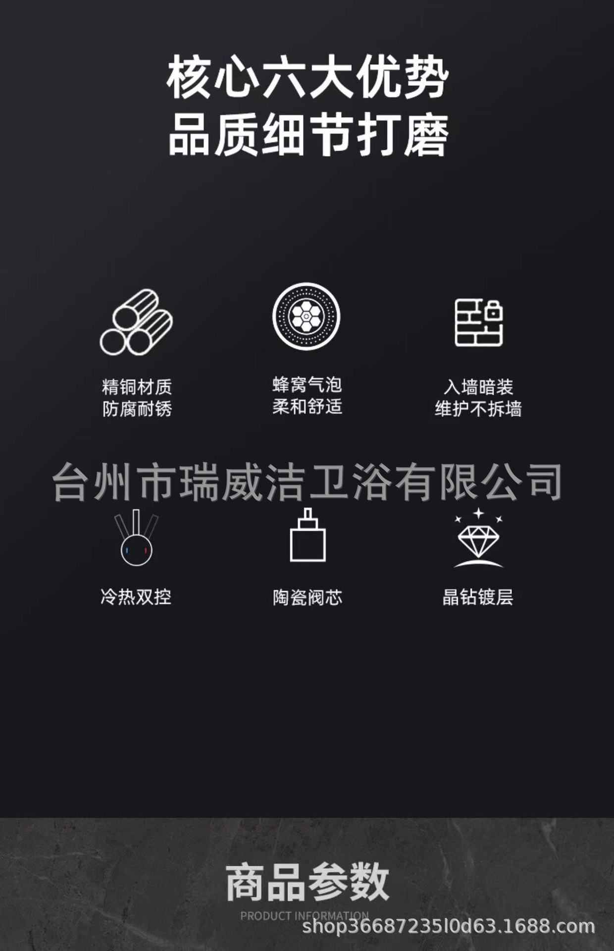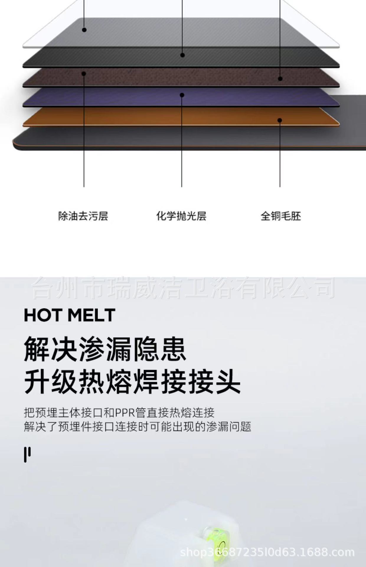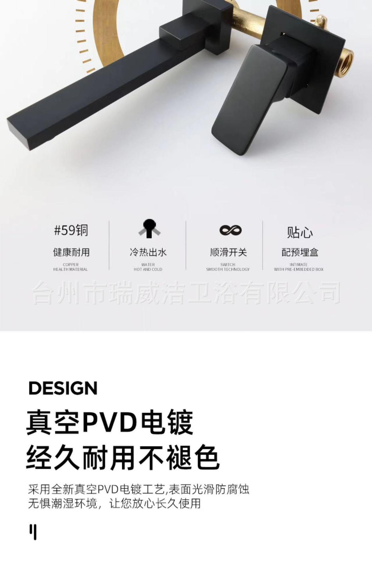 Keran drainase dinding tersembunyi berwarna emas, terbuat dari tembaga penuh dan baja tahan karat 304, dapat diputar, dengan air panas dan dingin terintegrasi.