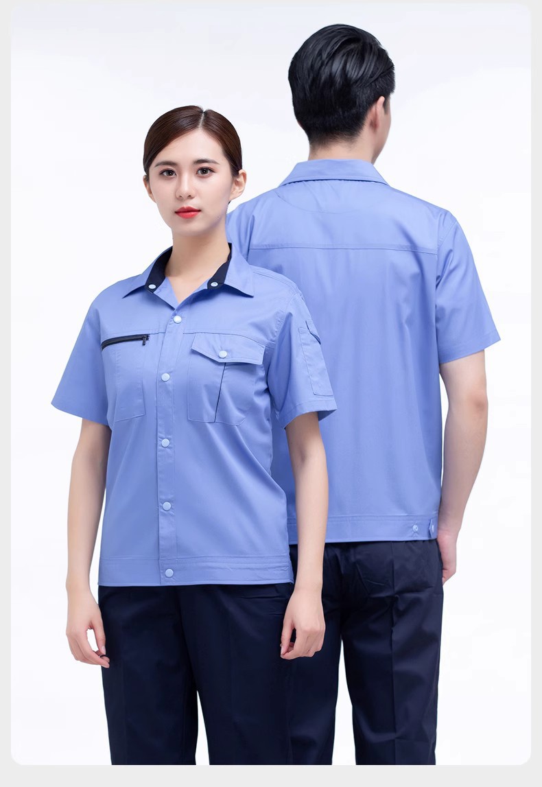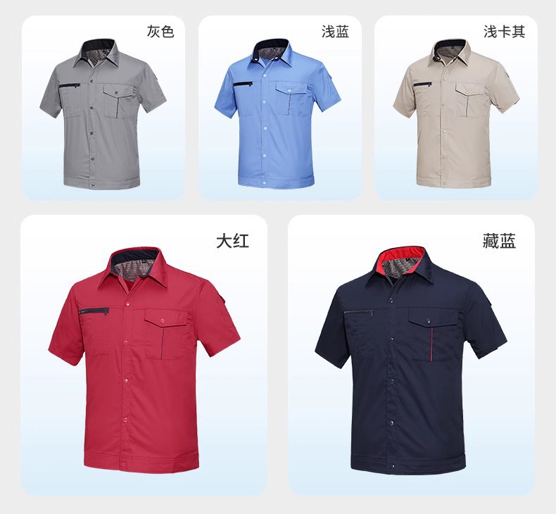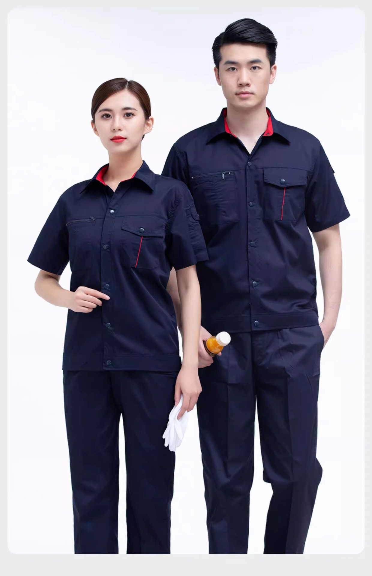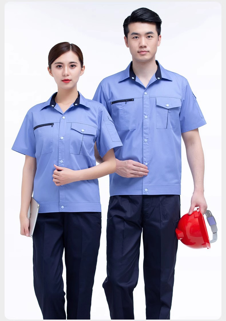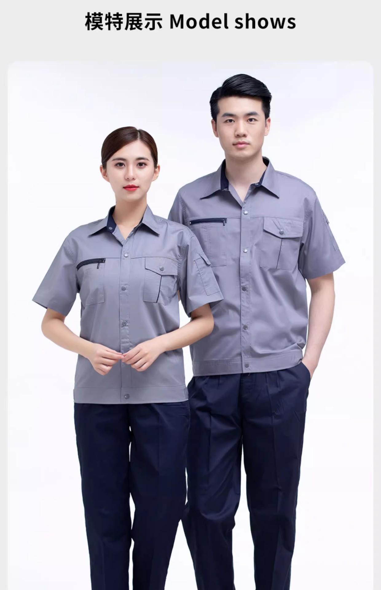 Setelan pakaian kerja pria lengan pendek, pakaian pelindung tenaga kerja pria, lengan pendek, bersirkulasi, pembersih pekerja, properti pakaian kerja, motif bordir