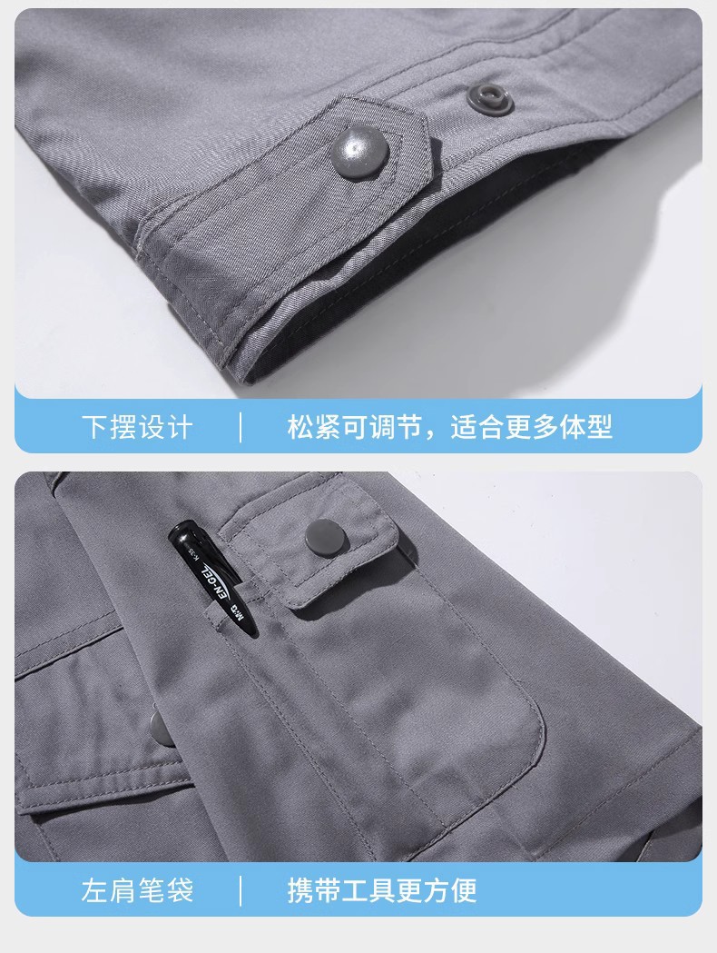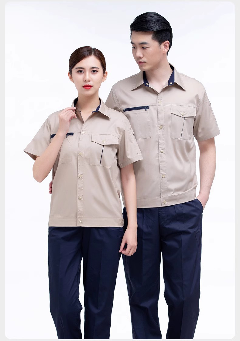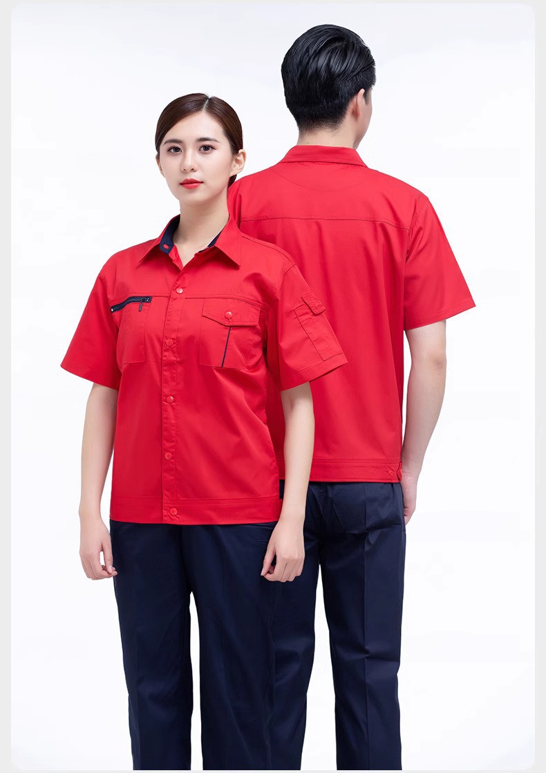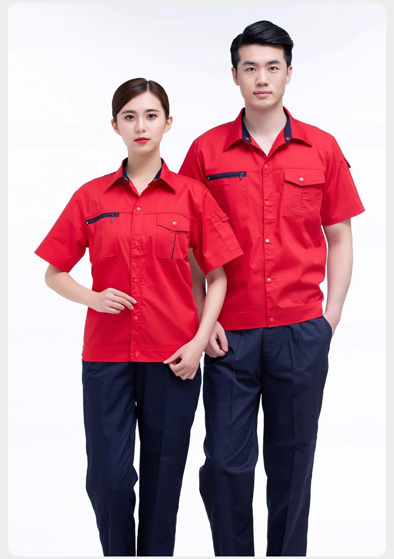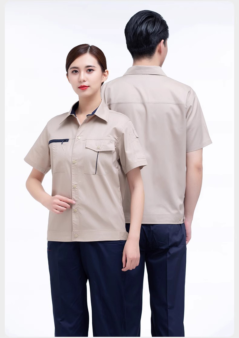 Setelan pakaian kerja pria lengan pendek, pakaian pelindung tenaga kerja pria, lengan pendek, bersirkulasi, pembersih pekerja, properti pakaian kerja, motif bordir