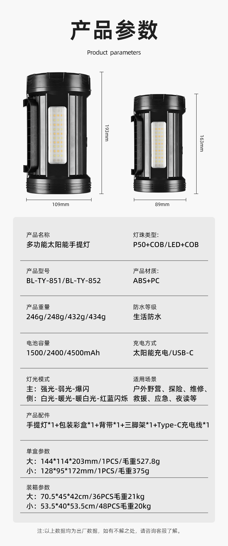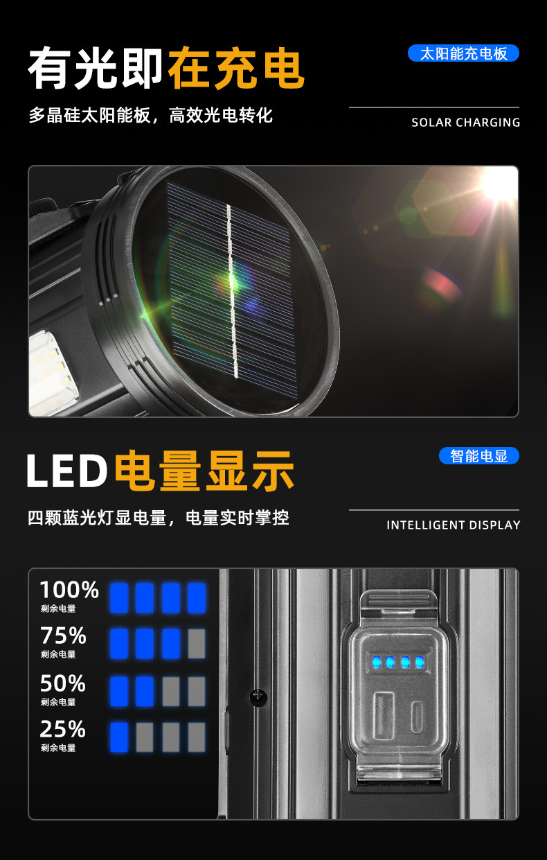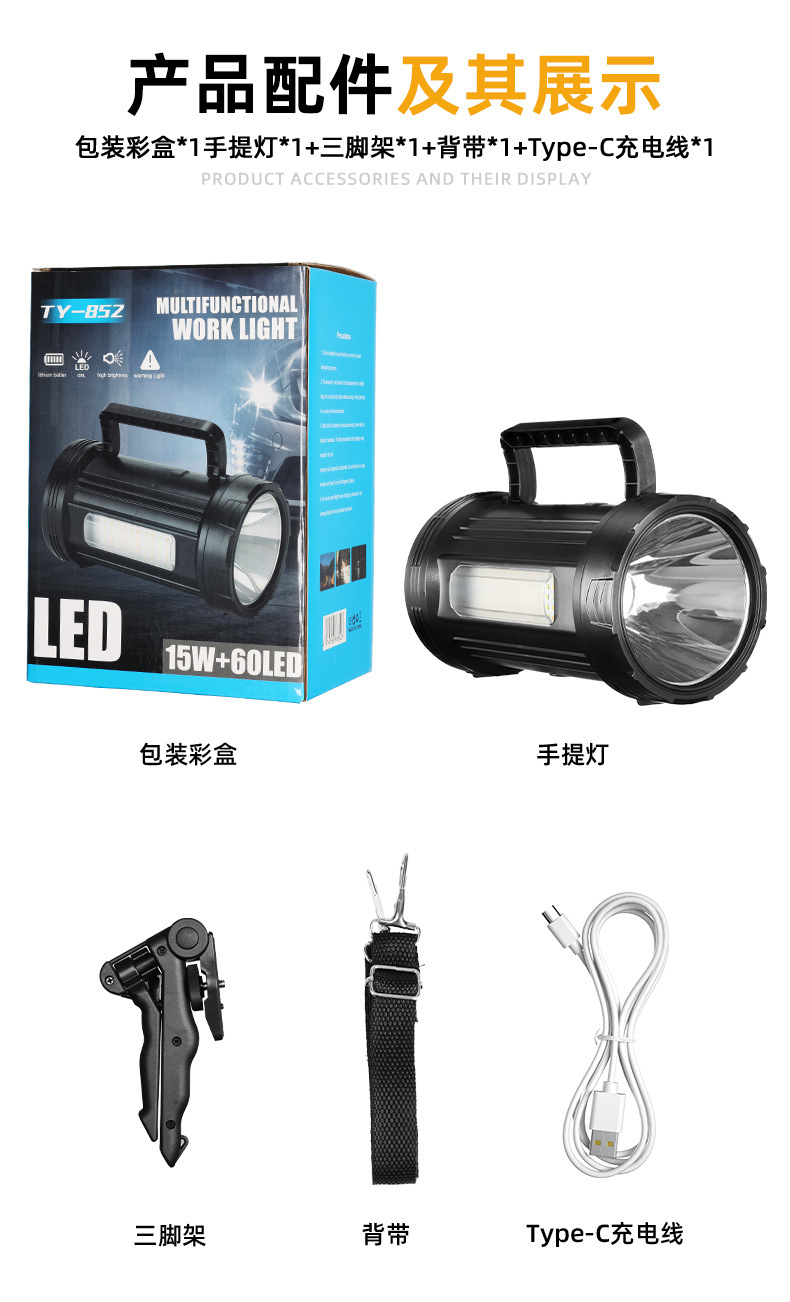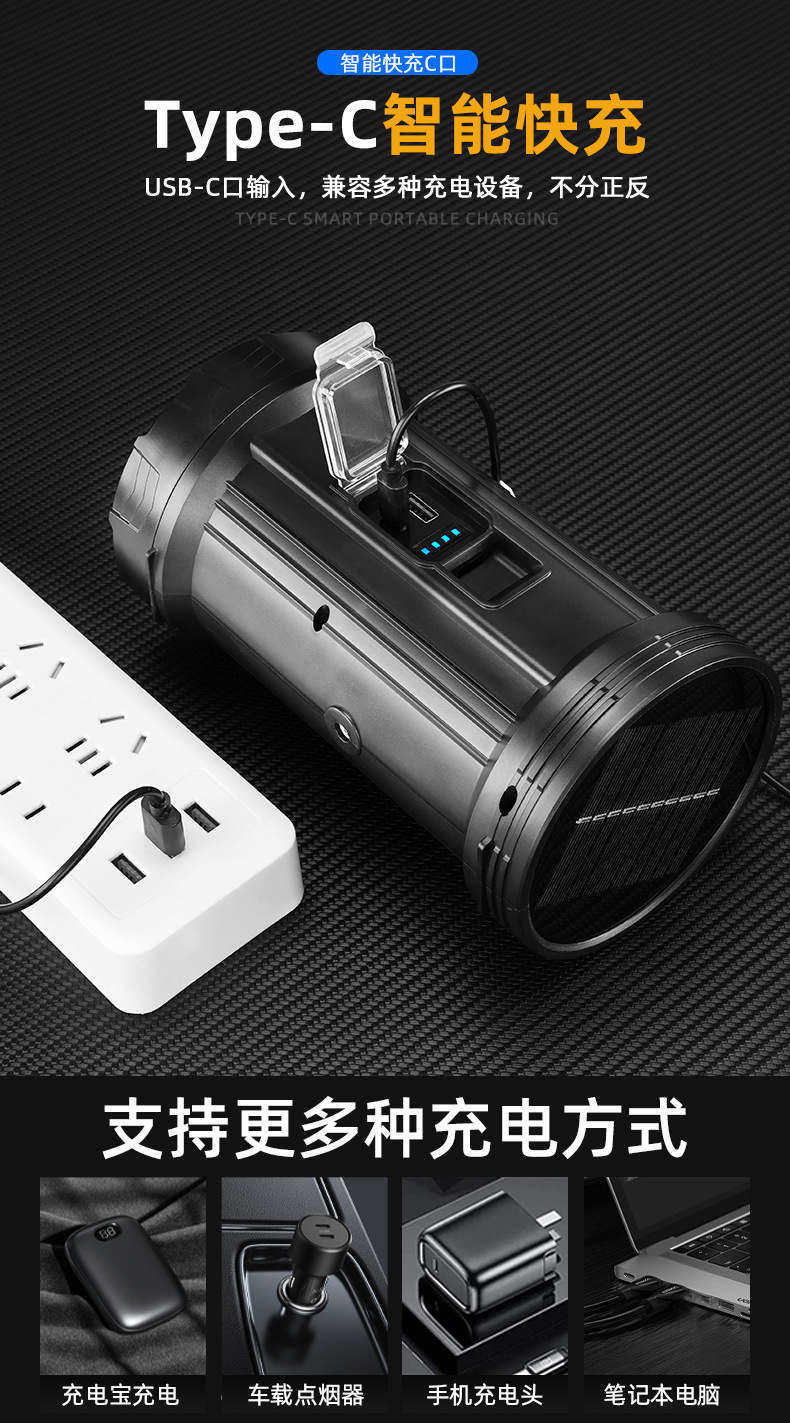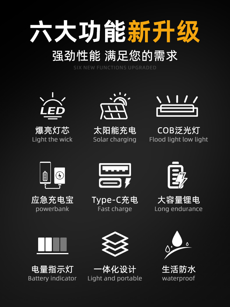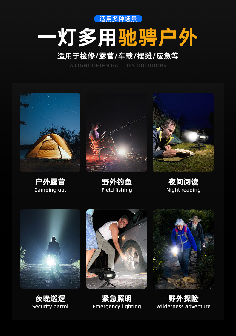 Lampu portabel tenaga surya multifungsi lintas batas lampu luar ruangan portabel senter cahaya kuat cobled