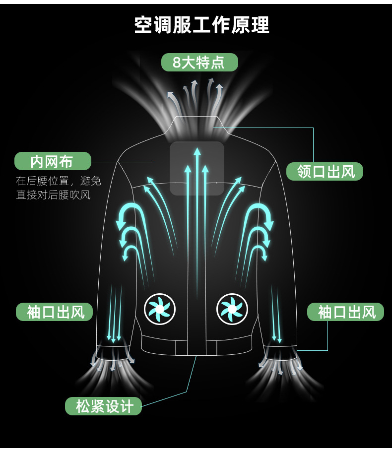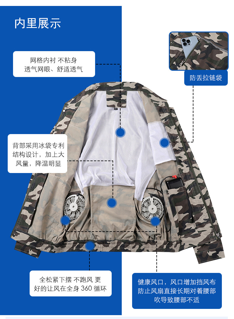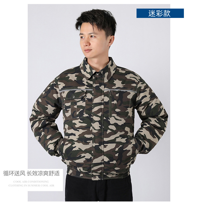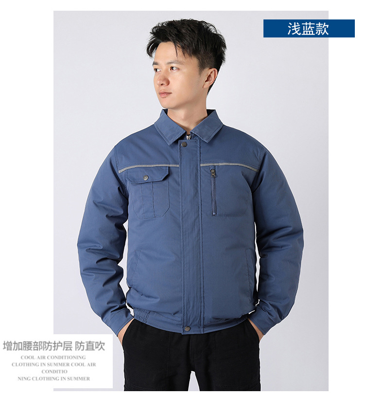 Pakaian kerja ber-AC, pakaian kerja dengan kipas pendingin dan pelindung panas, seragam kerja, pakaian pelindung las untuk lokasi konstruksi, pakaian kerja lengan panjang.