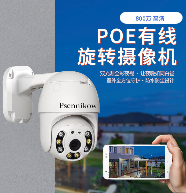 Kamera dome PTZ berputar berkabel lintas batas 8 juta 8MP 4K bertenaga POE dengan interkom dua arah terhubung ke NVR.