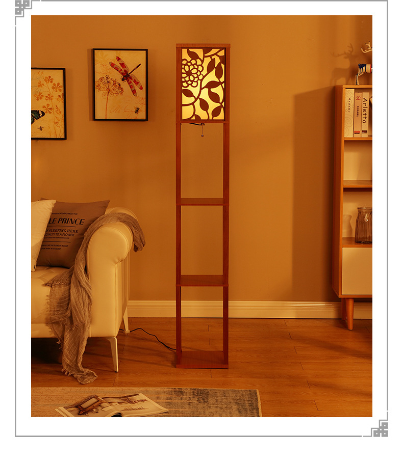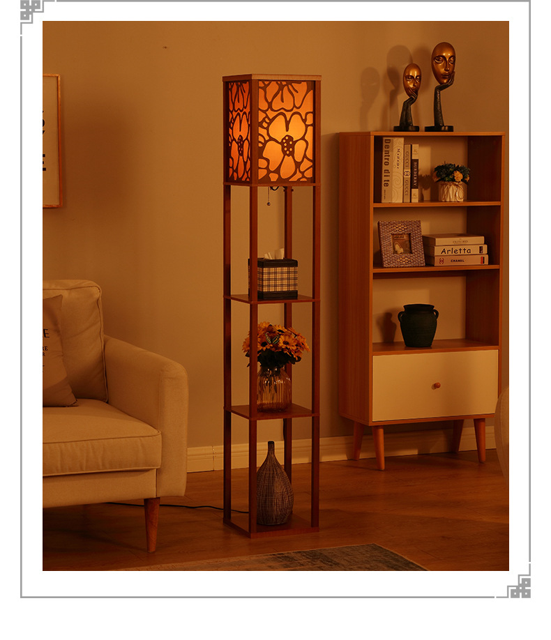 Lampu lantai Cina lintas batas Amazon baru lampu ruang tamu minimalis modern kayu kamar tidur lampu meja vertikal lampu rak