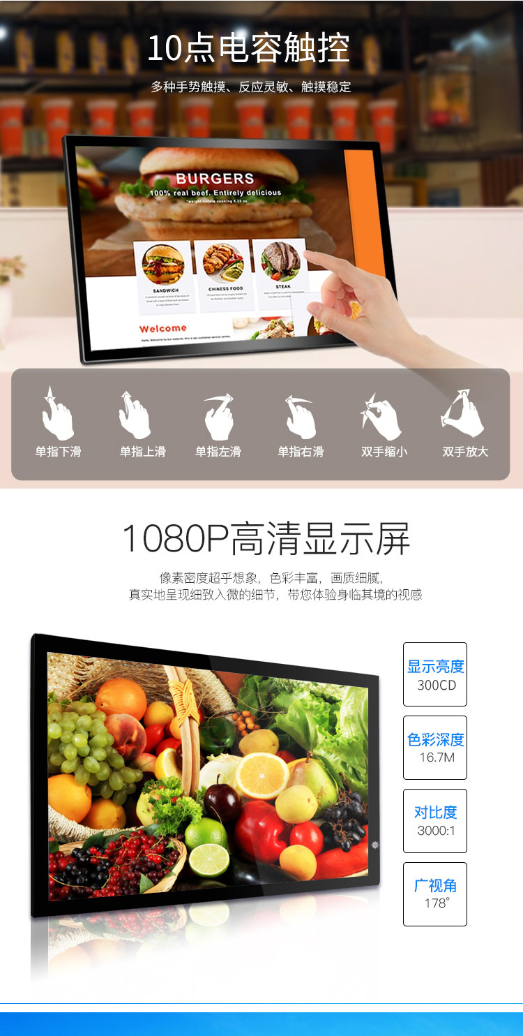 Mesin iklan layar sentuh kapasitif IPS Android all-in-one 10,1 inci, tablet sentuh komersial
