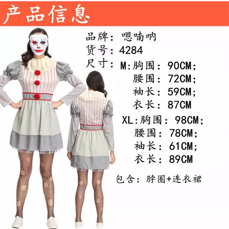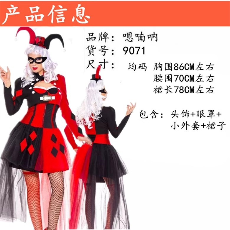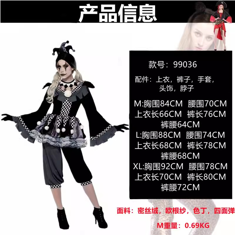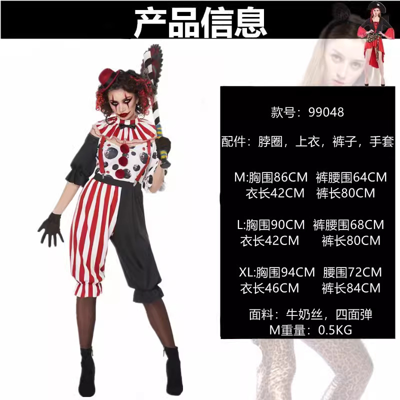 Kostum panggung badut untuk wanita, kostum pertunjukan panggung badut, kostum festival hantu, kostum sirkus badut untuk wanita dewasa