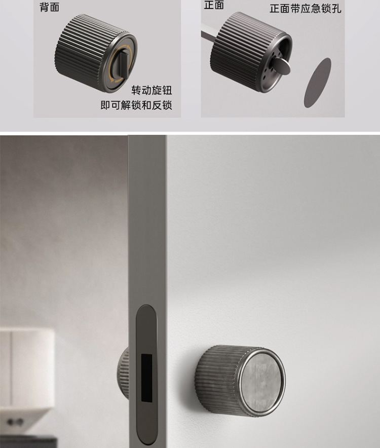 Kunci pintu kamar tidur dengan pegangan terintegrasi, gaya minimalis, universal untuk kamar mandi, kunci pegangan gaya minimalis, kunci bulat.