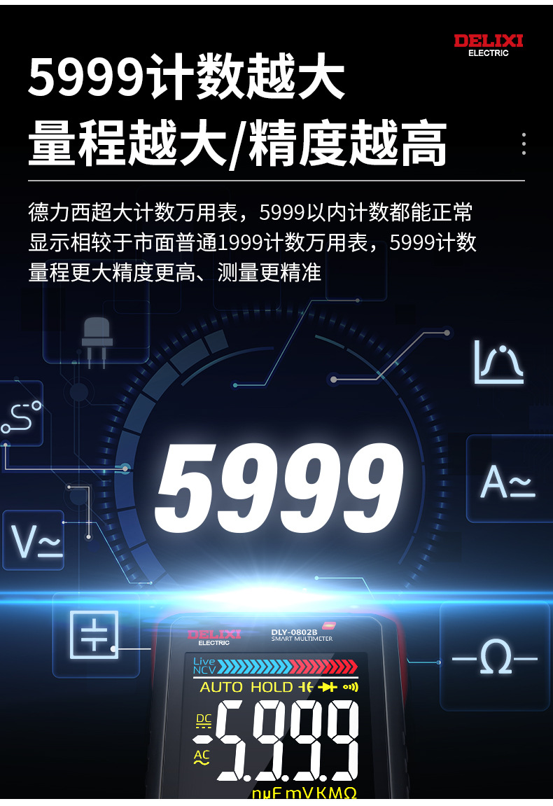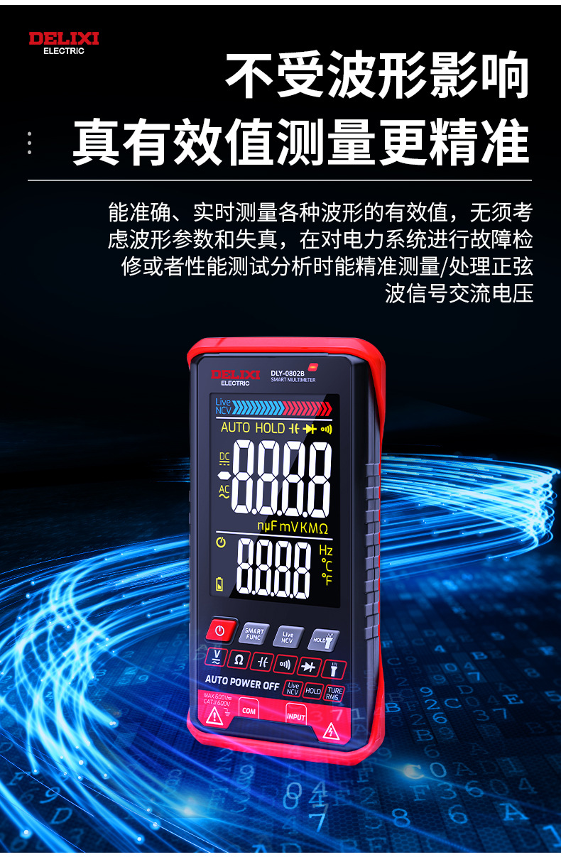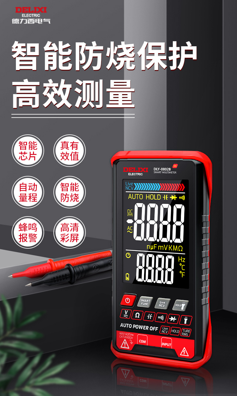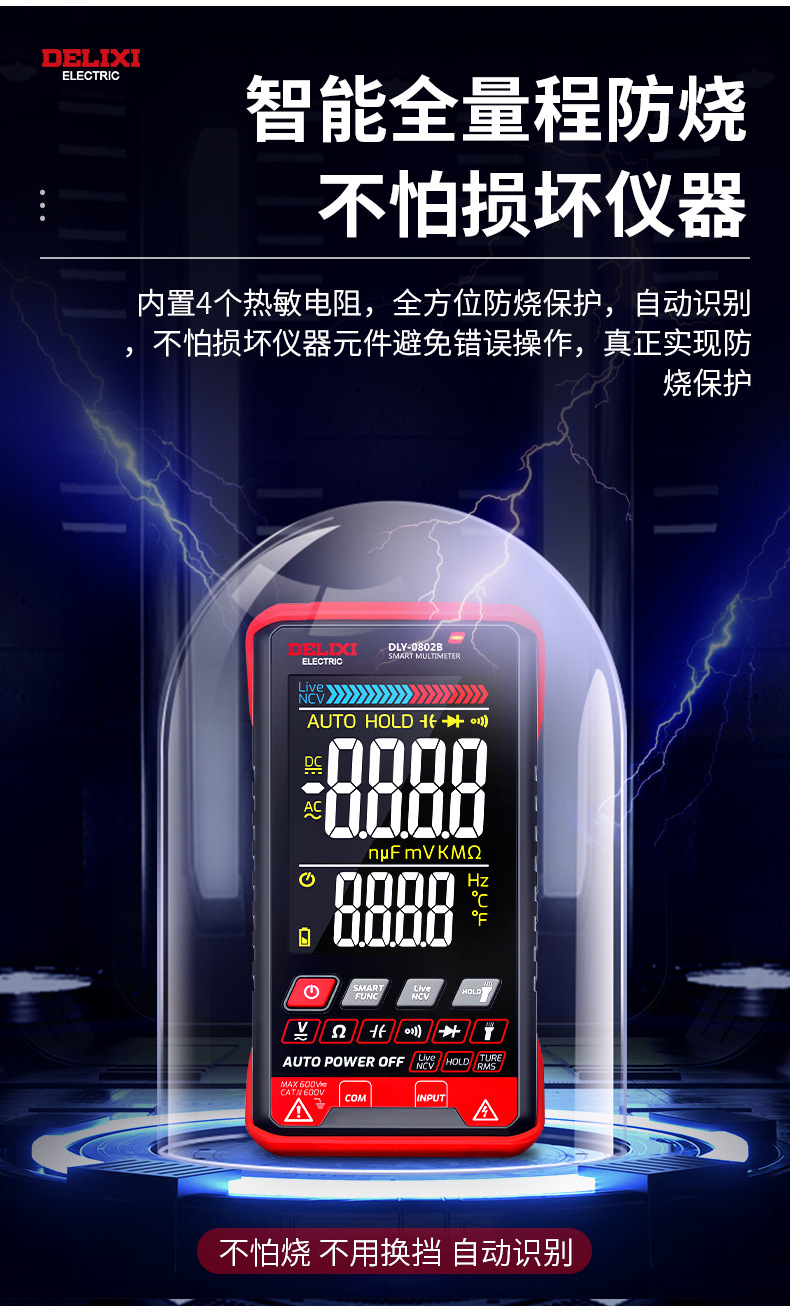 Delixi multimeter digital 0802b baru otomatis tinggi presisi listrik tampilan digital Multimeter universal