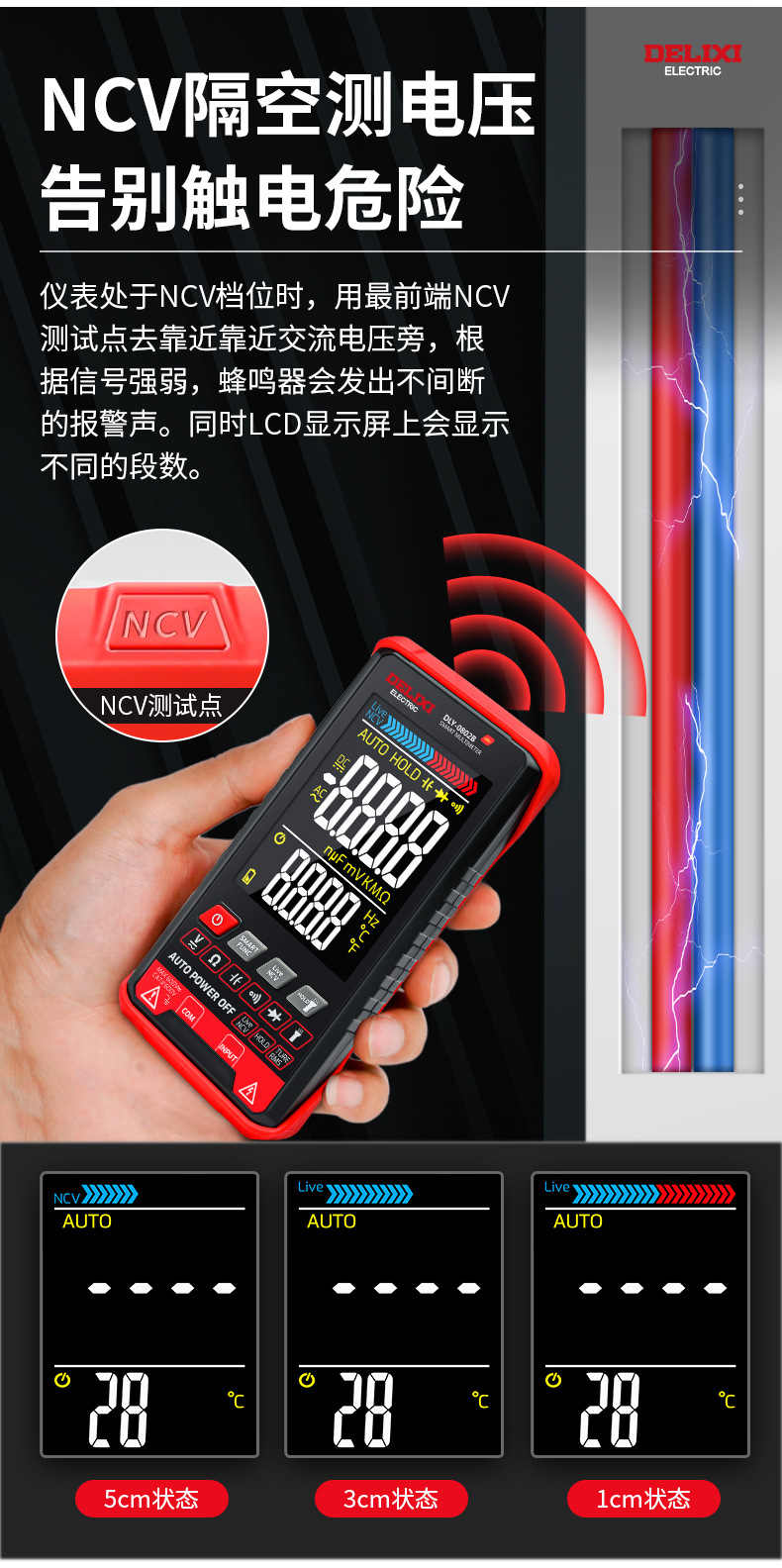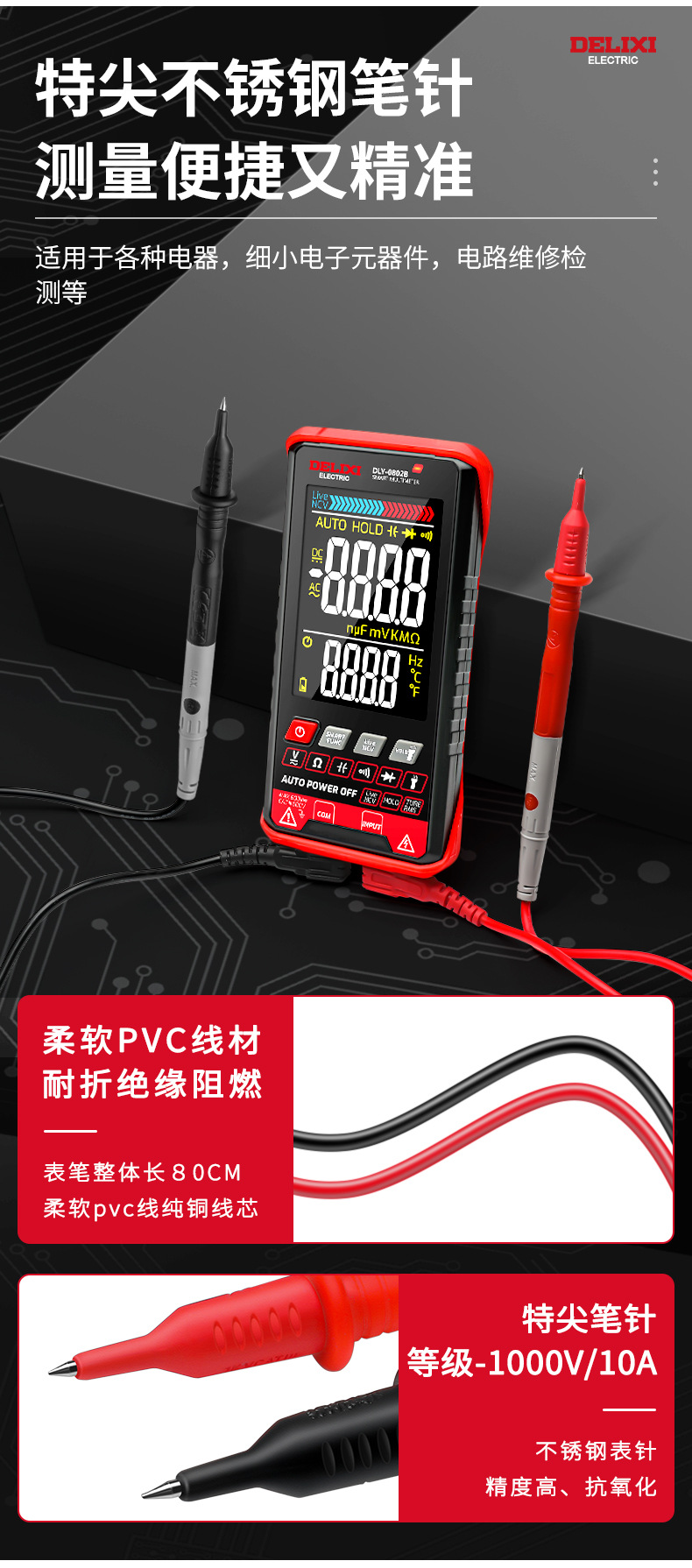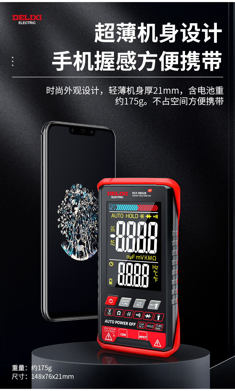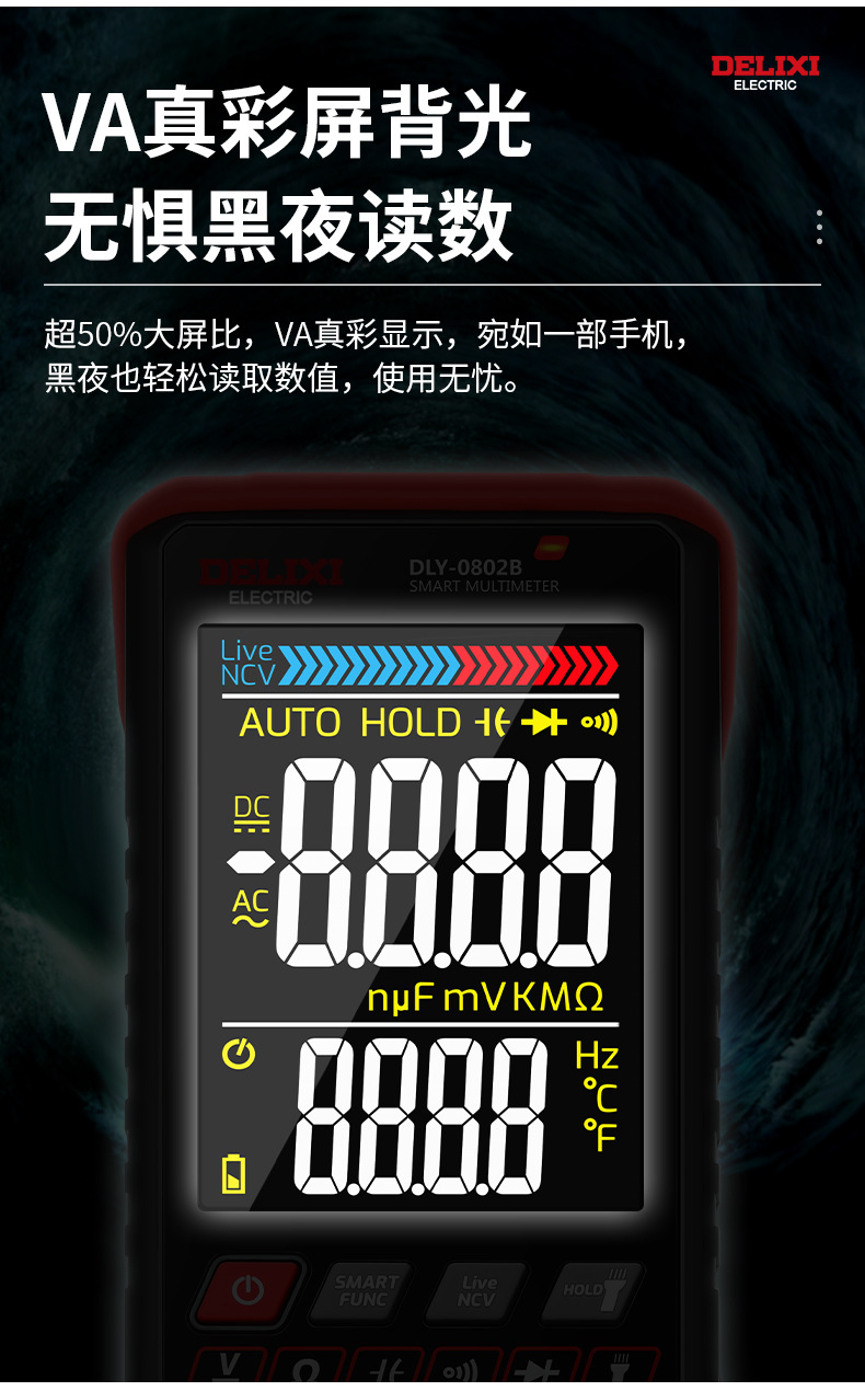 Delixi multimeter digital 0802b baru otomatis tinggi presisi listrik tampilan digital Multimeter universal
