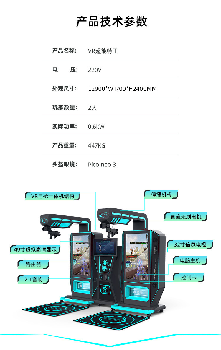 Shadow power vr mesin game komersial double shooting vr peralatan hiburan virtual body sense vr pengalaman hall all-in-one mesin